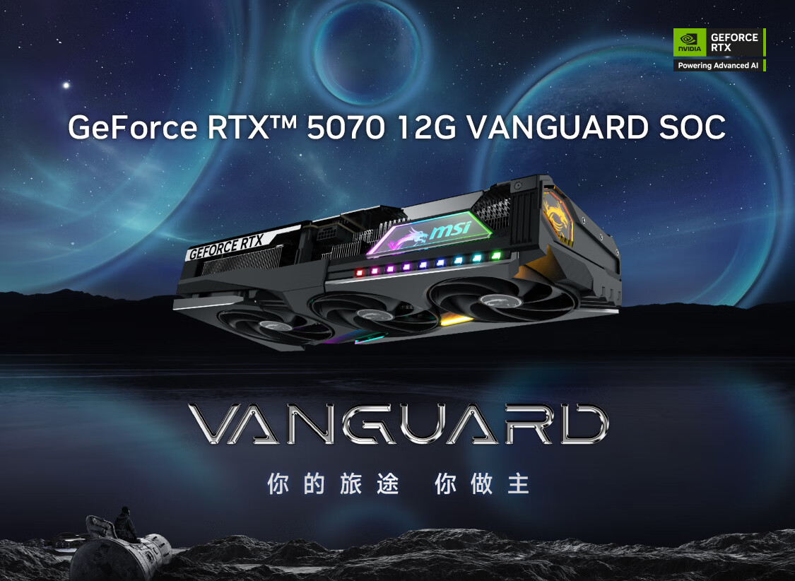 微星(MSI)神龙 GeForce RTX 5070 12G VANGUARD SOC AI游戏设计剪辑OpenClaw本地部署显卡