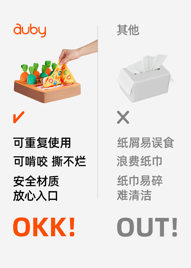 澳贝(auby)拔萝卜玩具婴儿抽纸可啃咬抽抽乐撕不烂宝宝0-1岁周岁生日礼物