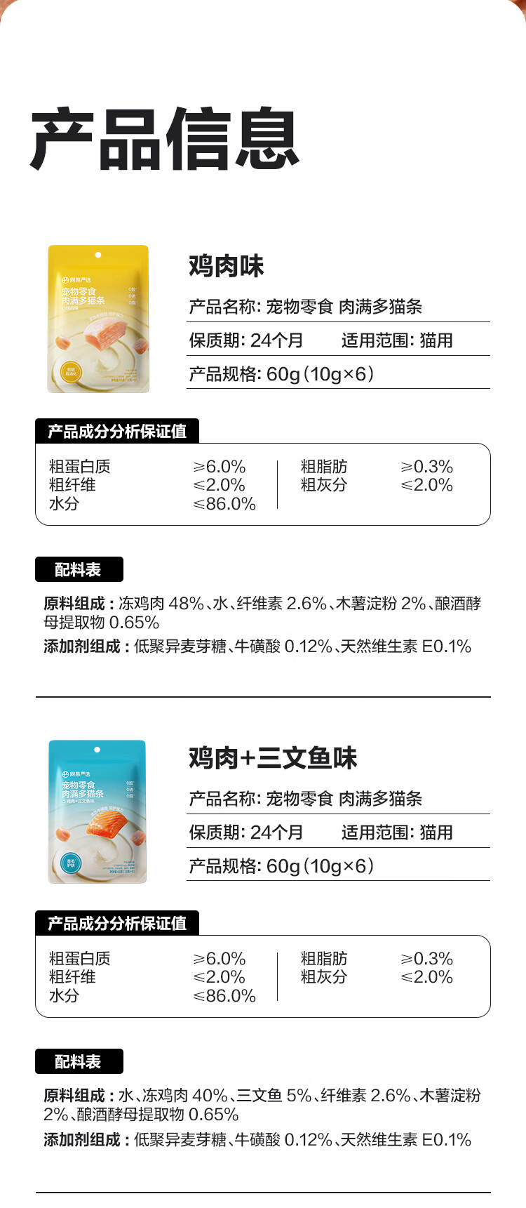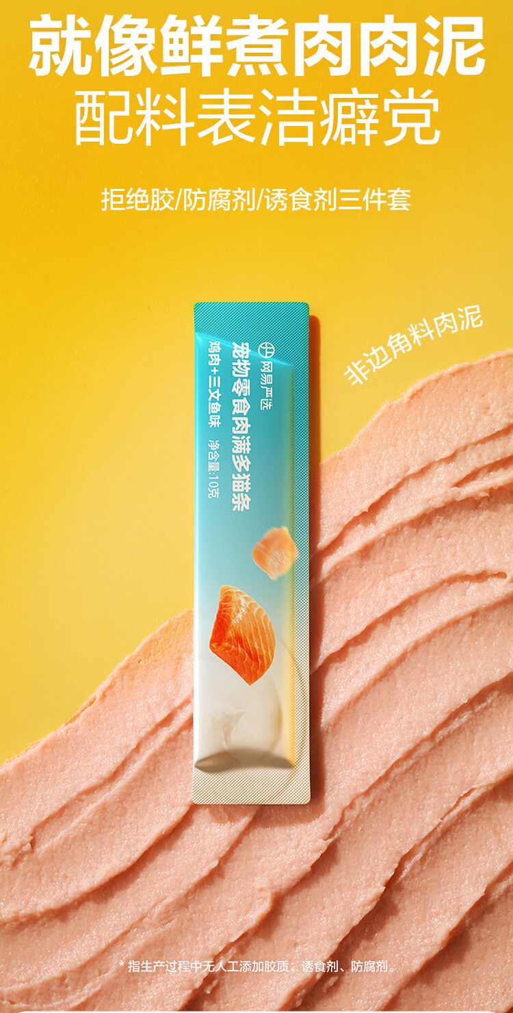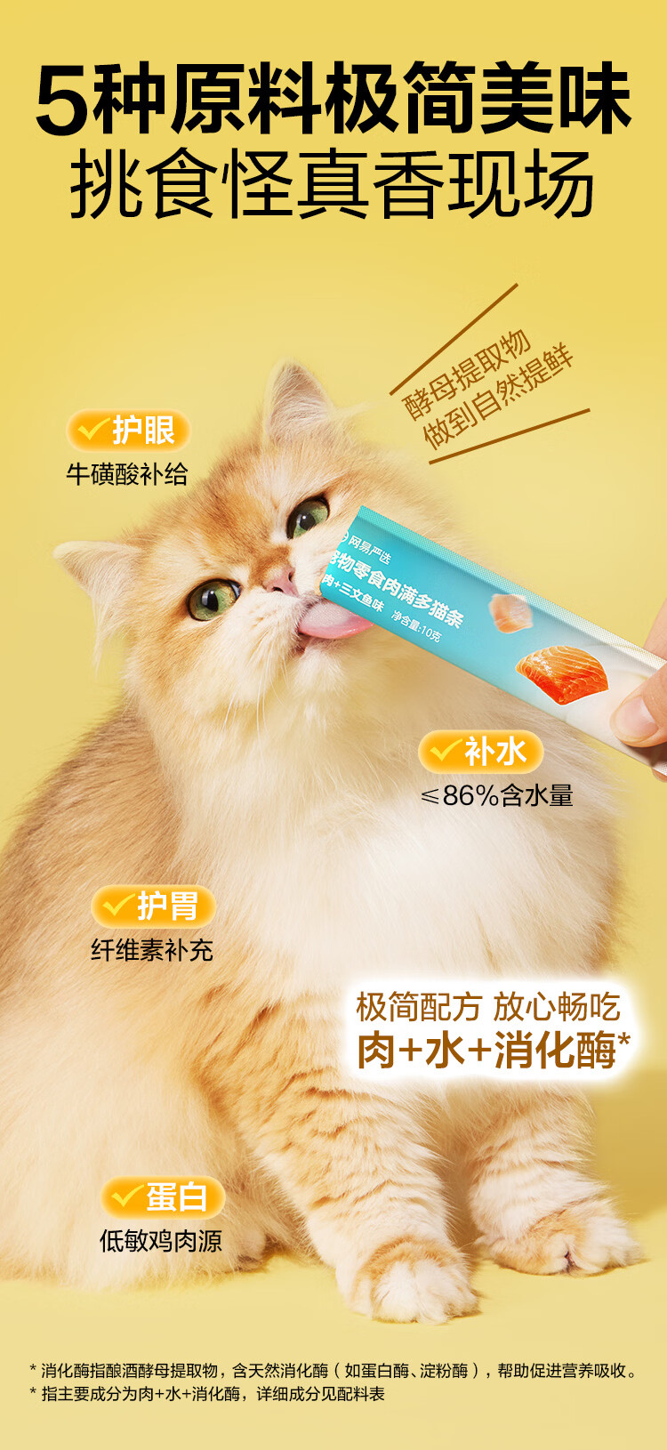 网易严选肉满多猫条成猫幼猫通用猫咪零食湿粮猫条鸡肉+三文鱼味 10g*6条