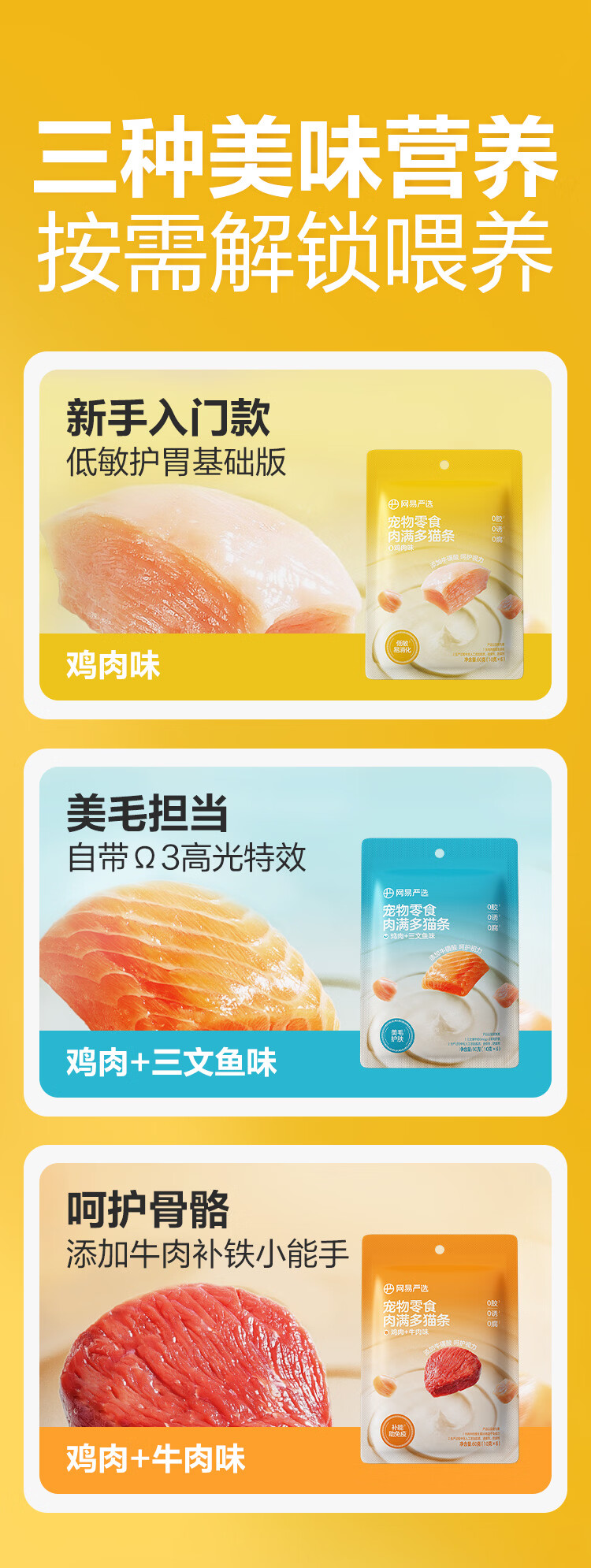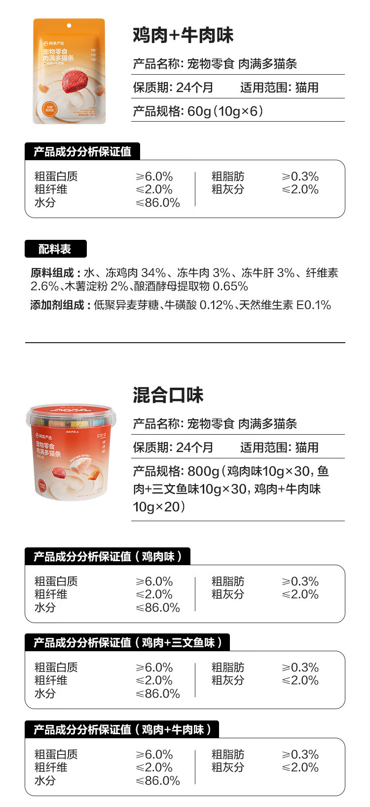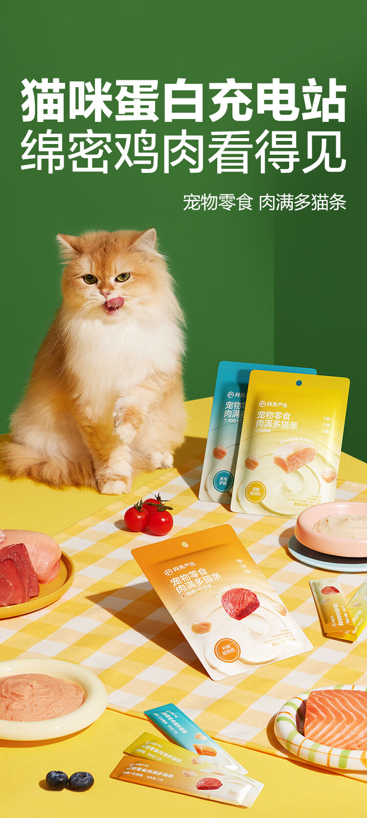 网易严选肉满多猫条成猫幼猫通用猫咪零食湿粮猫条鸡肉+三文鱼味 10g*6条