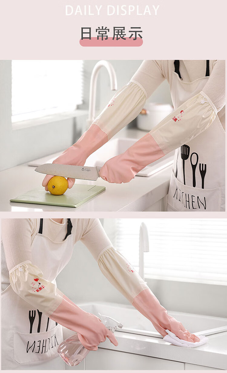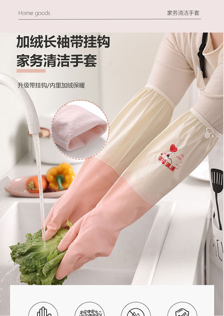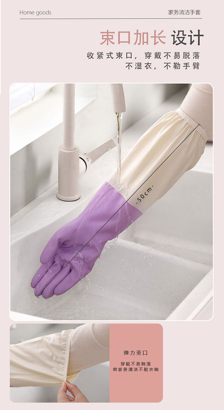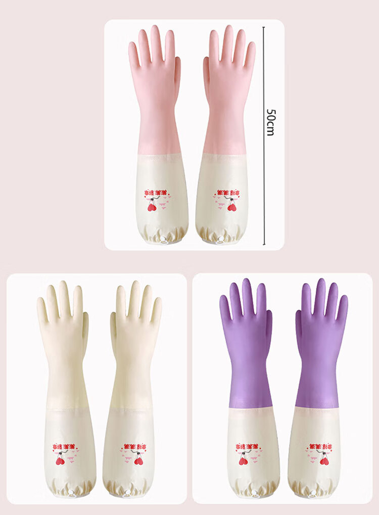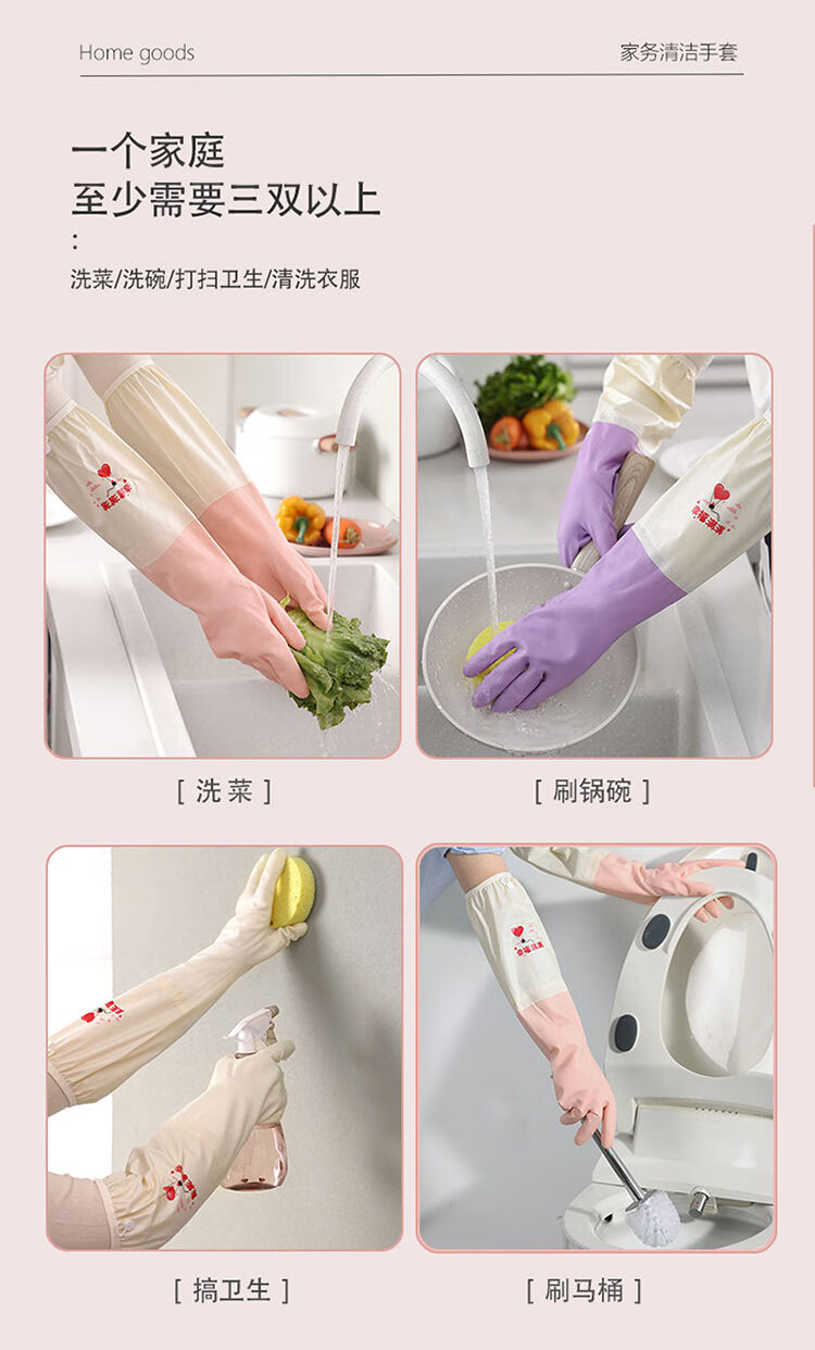 COODORA手套洗碗加绒乳胶2双均码50cm加长冬季保暖耐磨家务厨房洗衣服