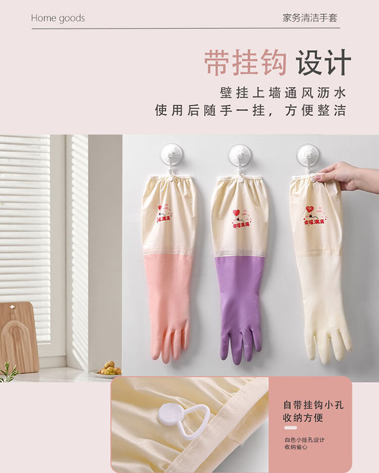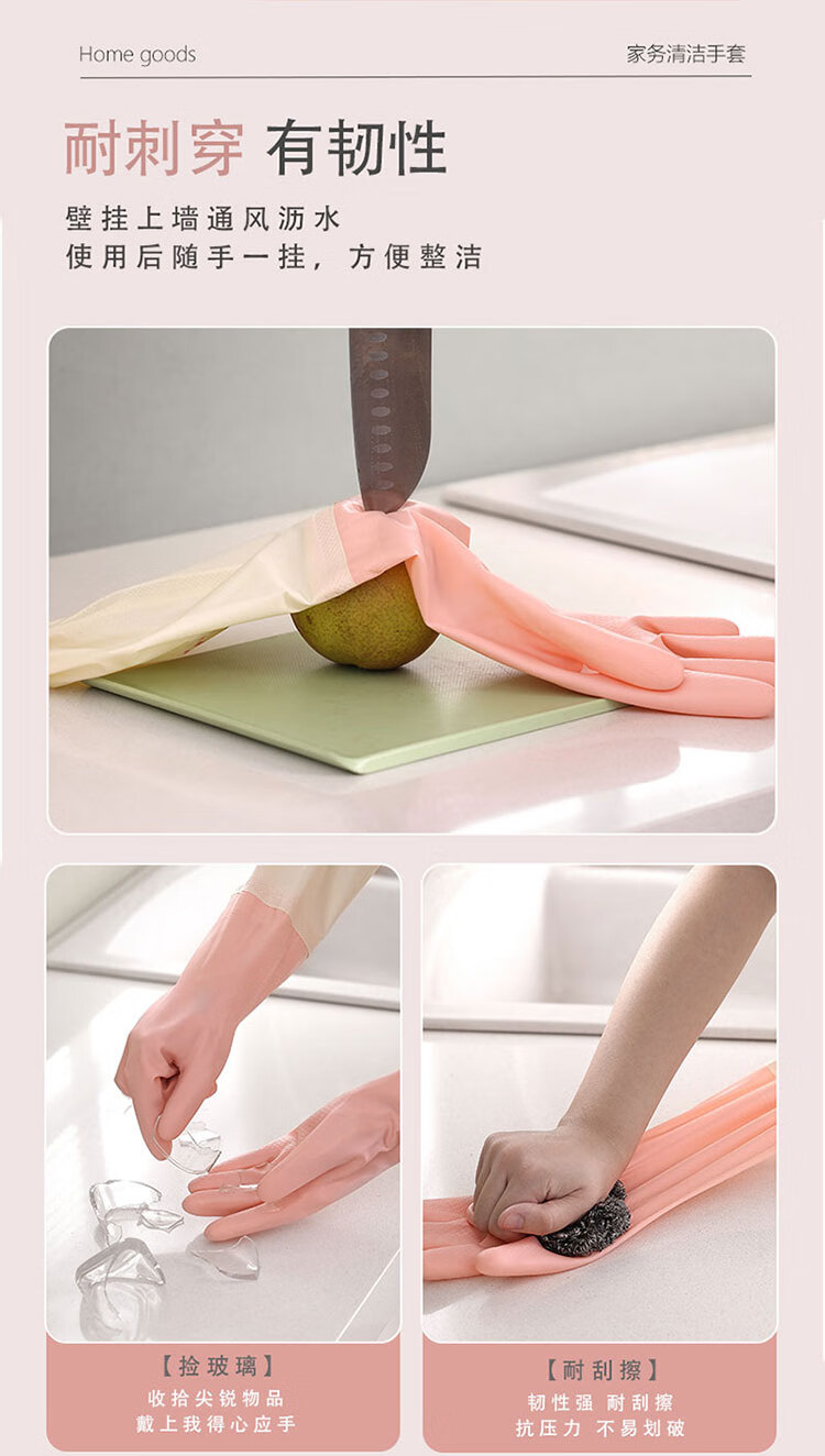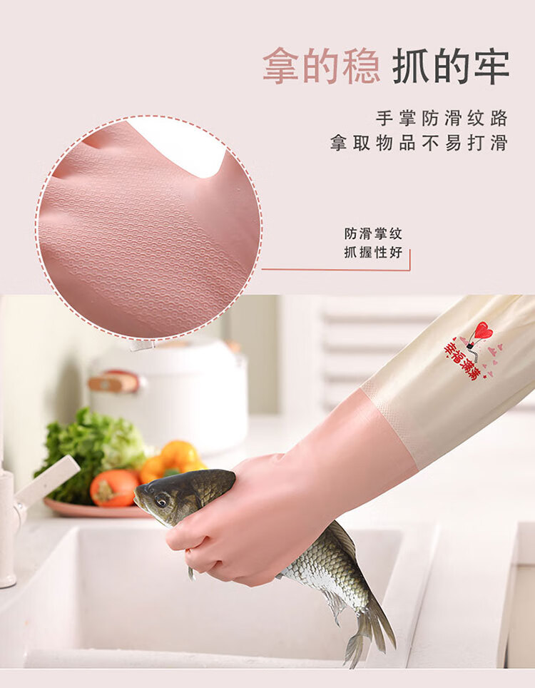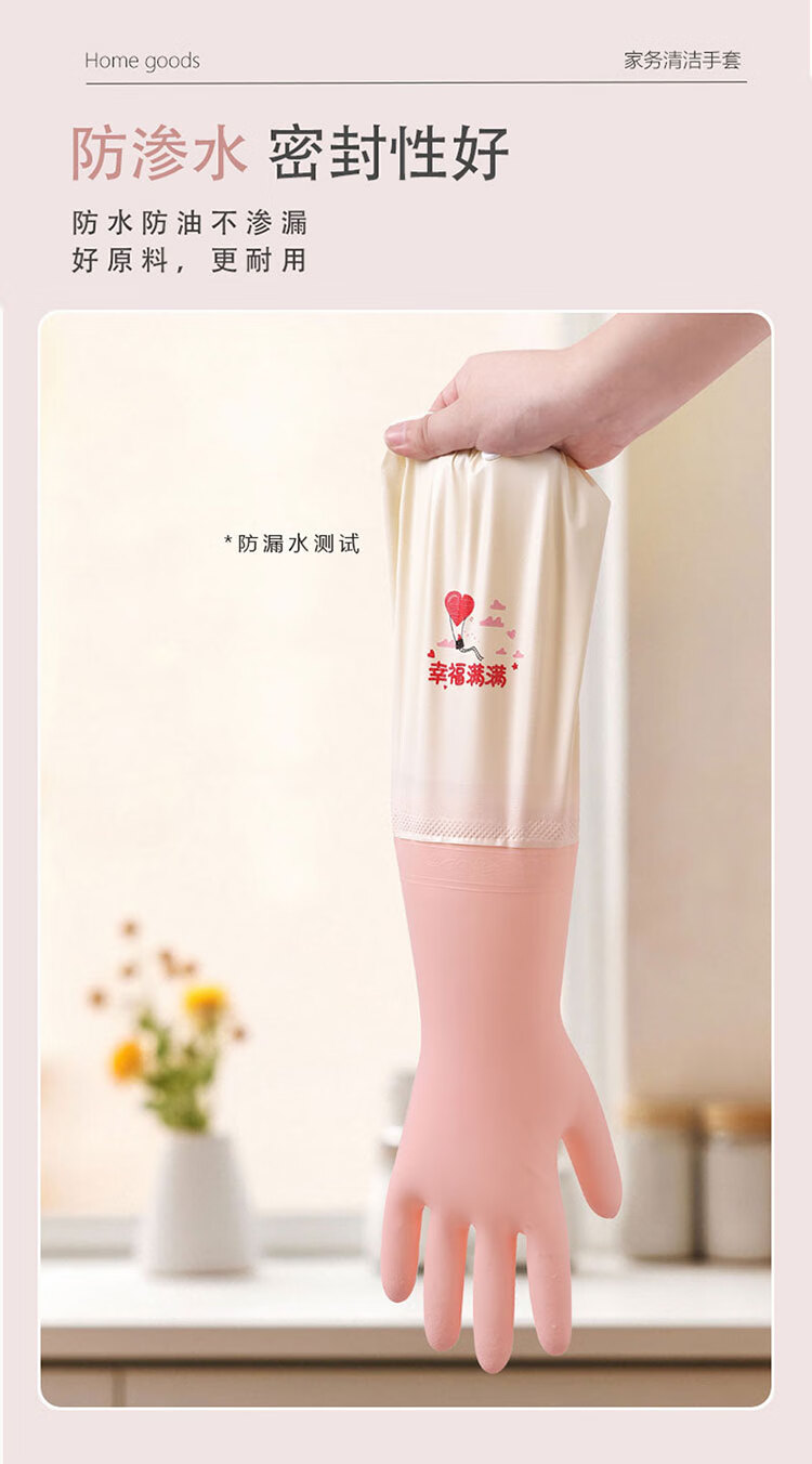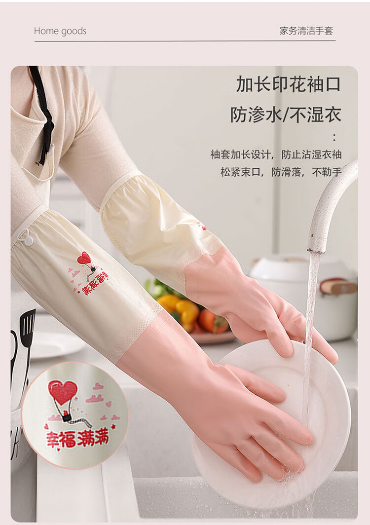 COODORA手套洗碗加绒乳胶2双均码50cm加长冬季保暖耐磨家务厨房洗衣服
