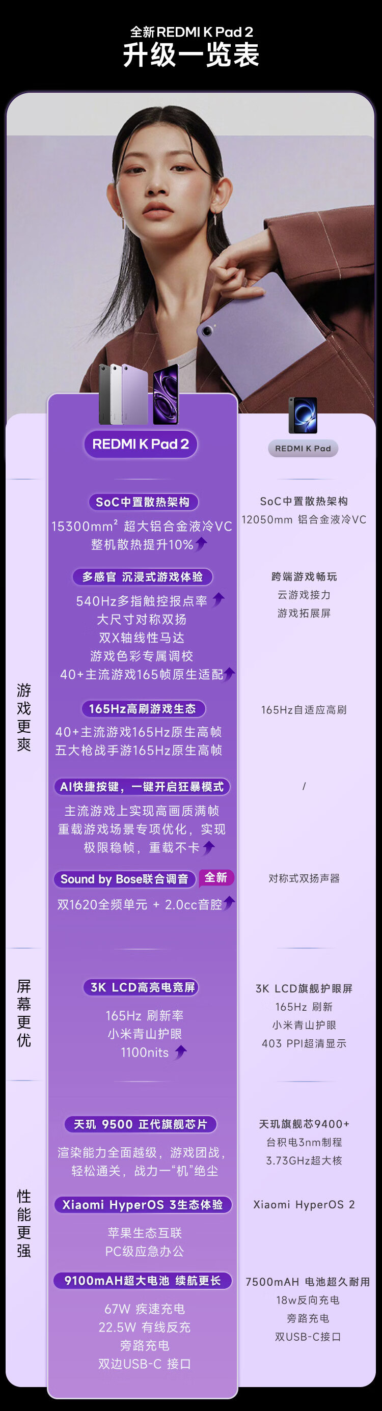 小米(MI)红米平板 REDMI K Pad 2 【国家补贴】8.8英寸小平板 3K屏 天玑9500 电竞游戏平板 8+256 深邃黑