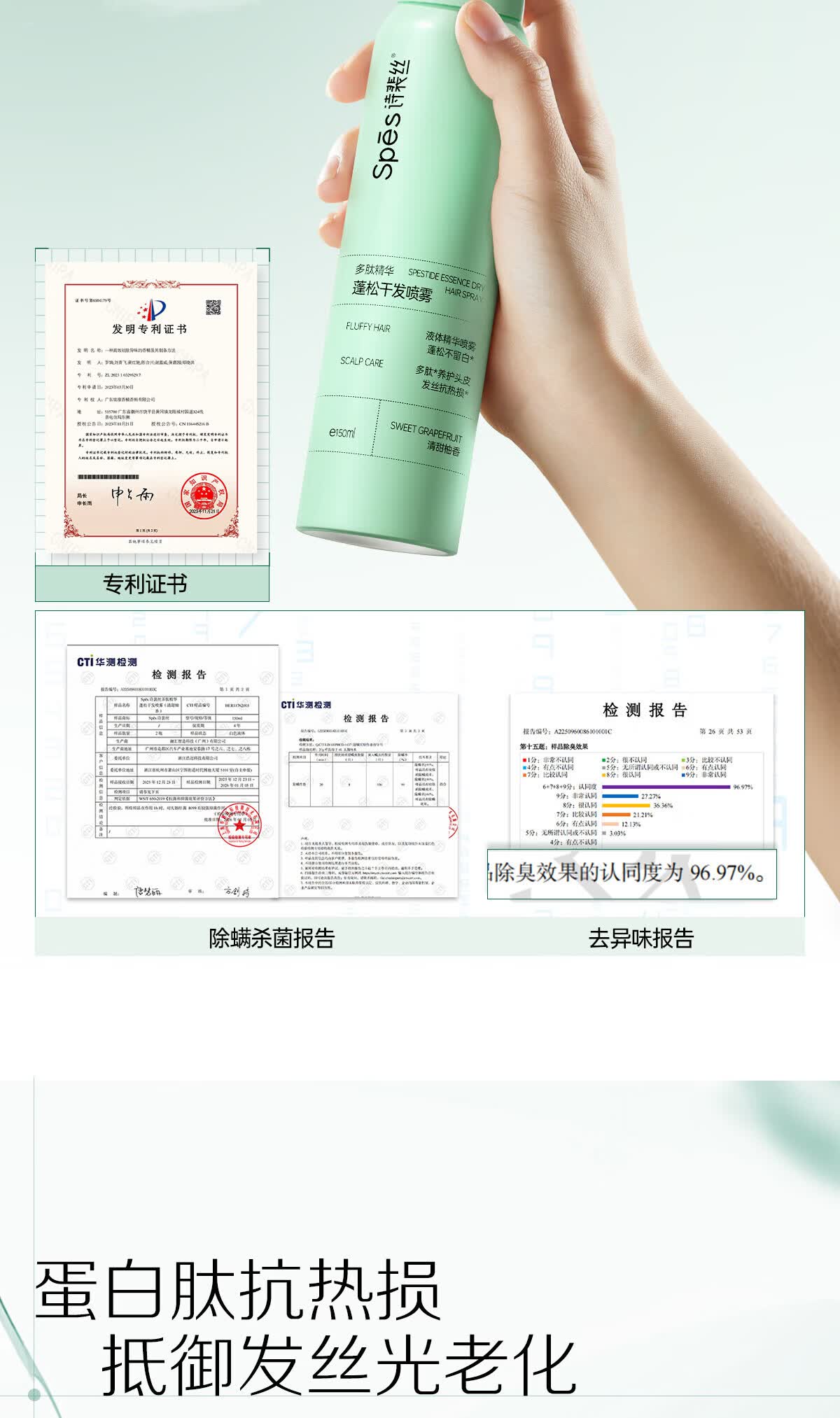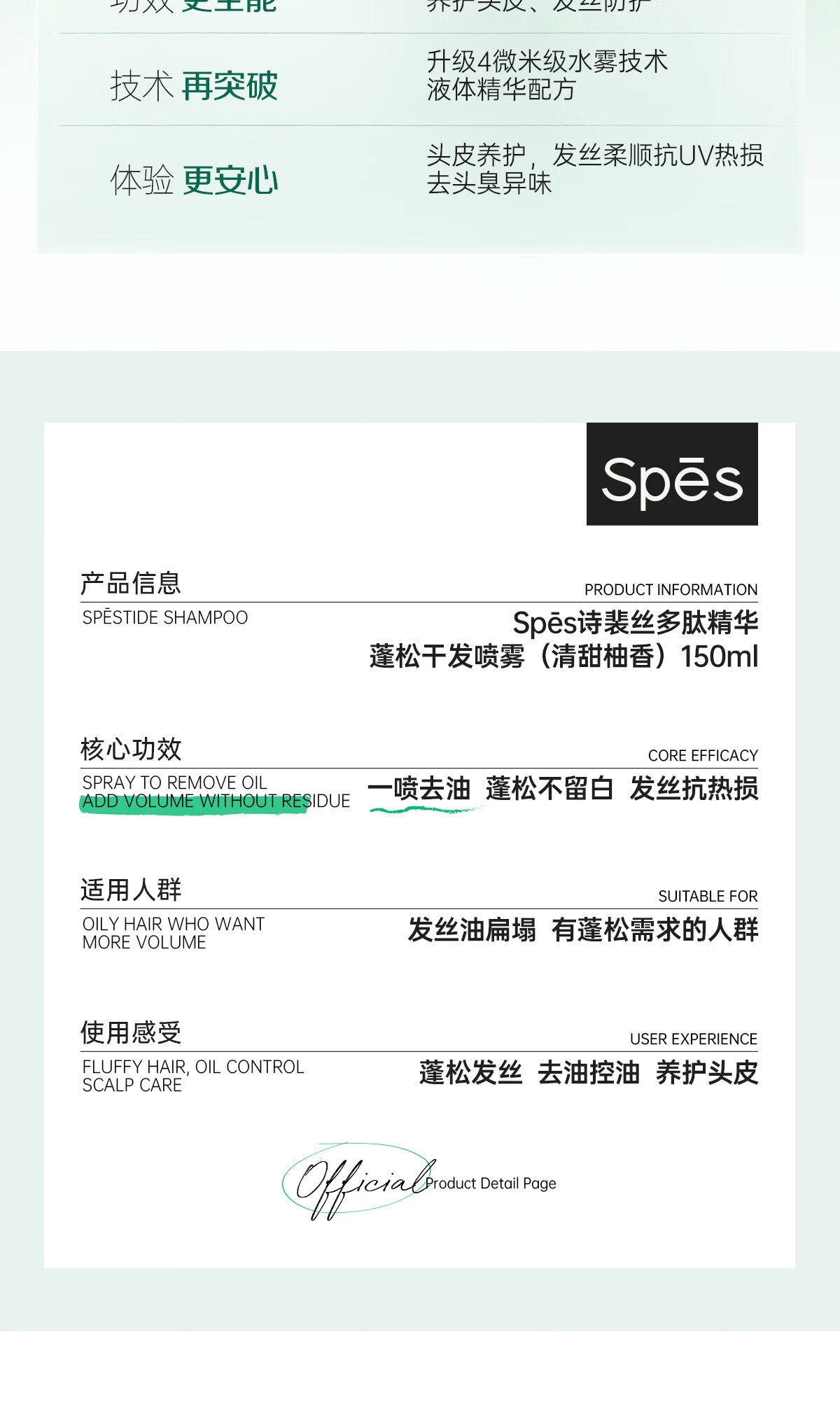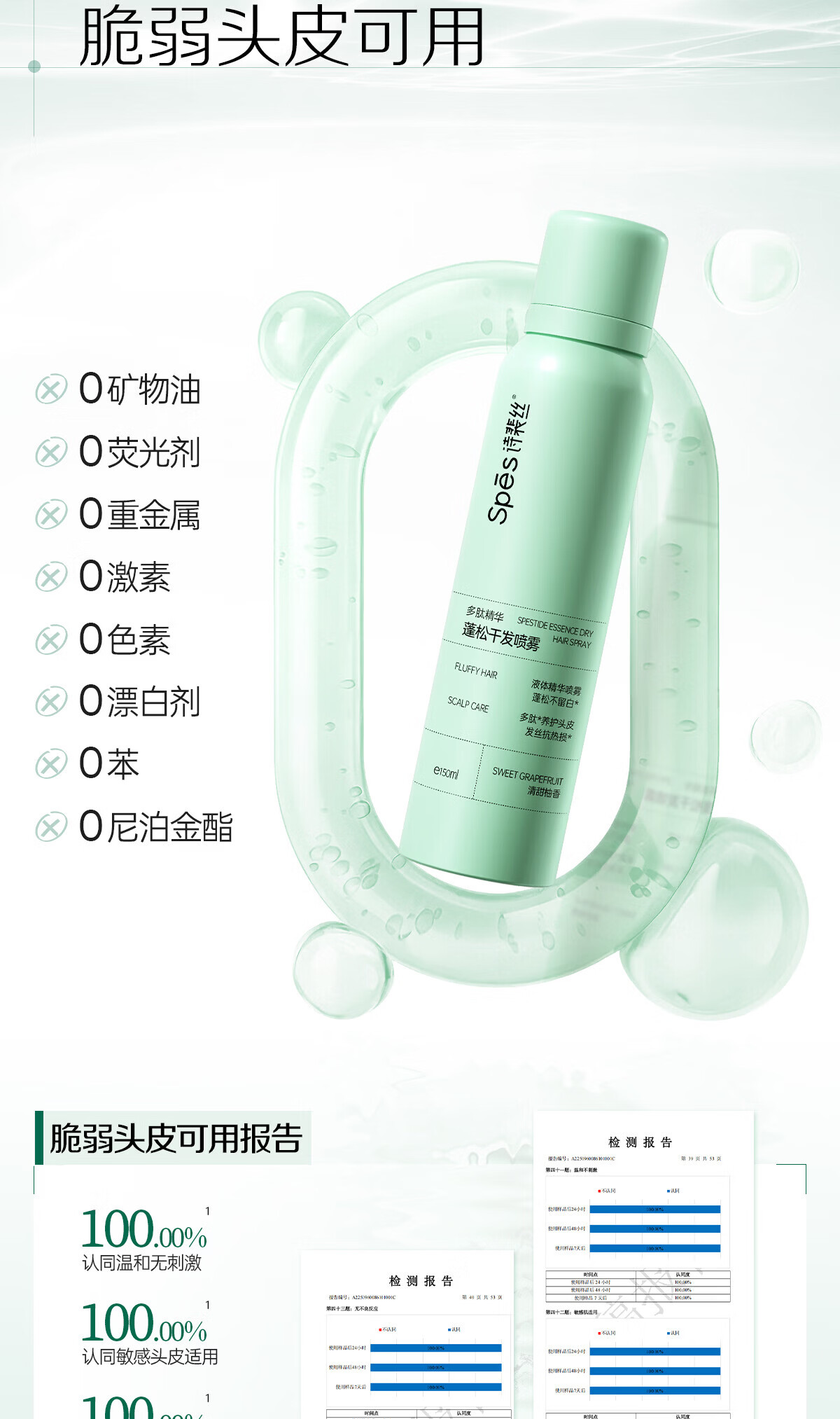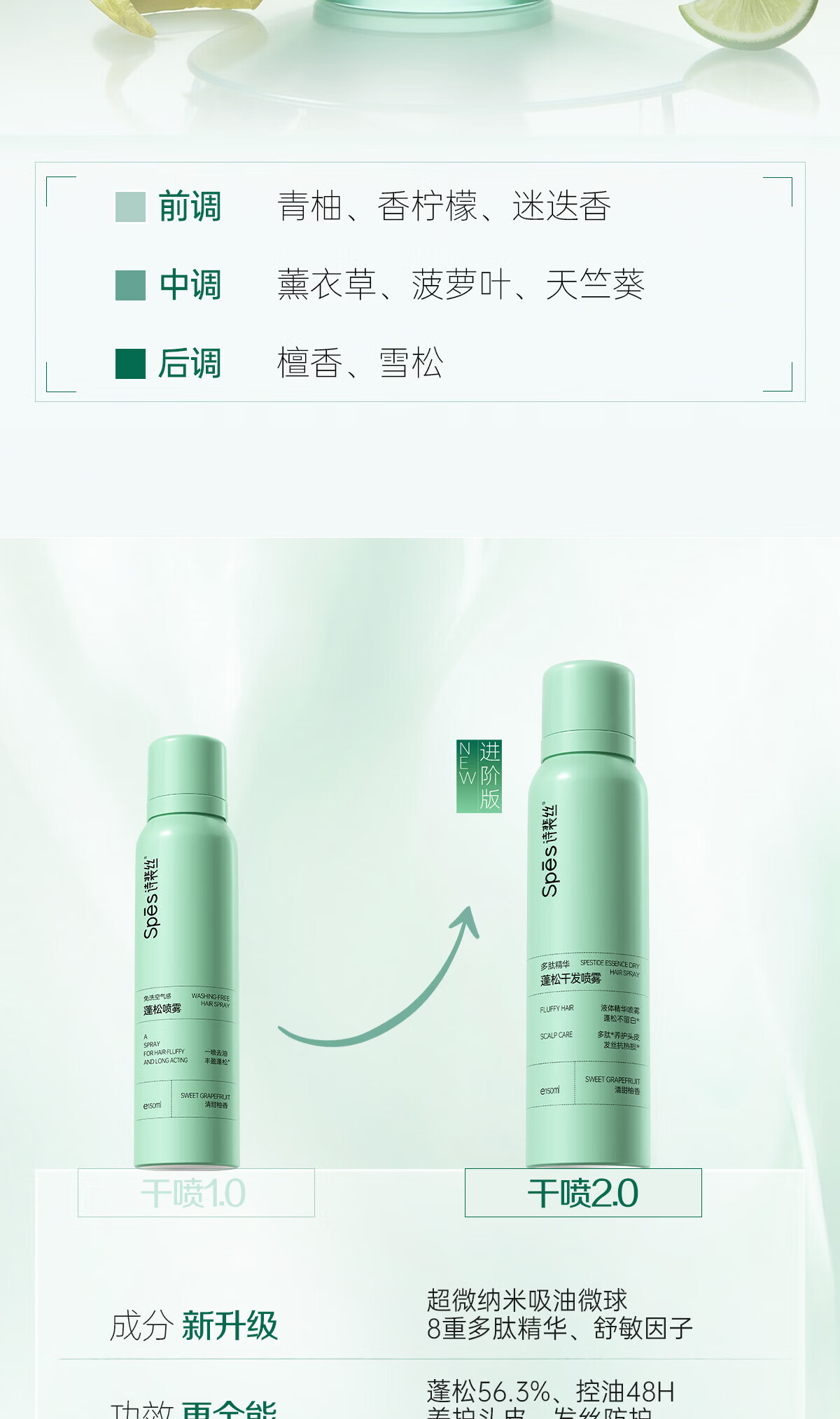 Spes诗裴丝免洗干发喷雾头发蓬松持久定型去油神器无香喷雾200ml*2支