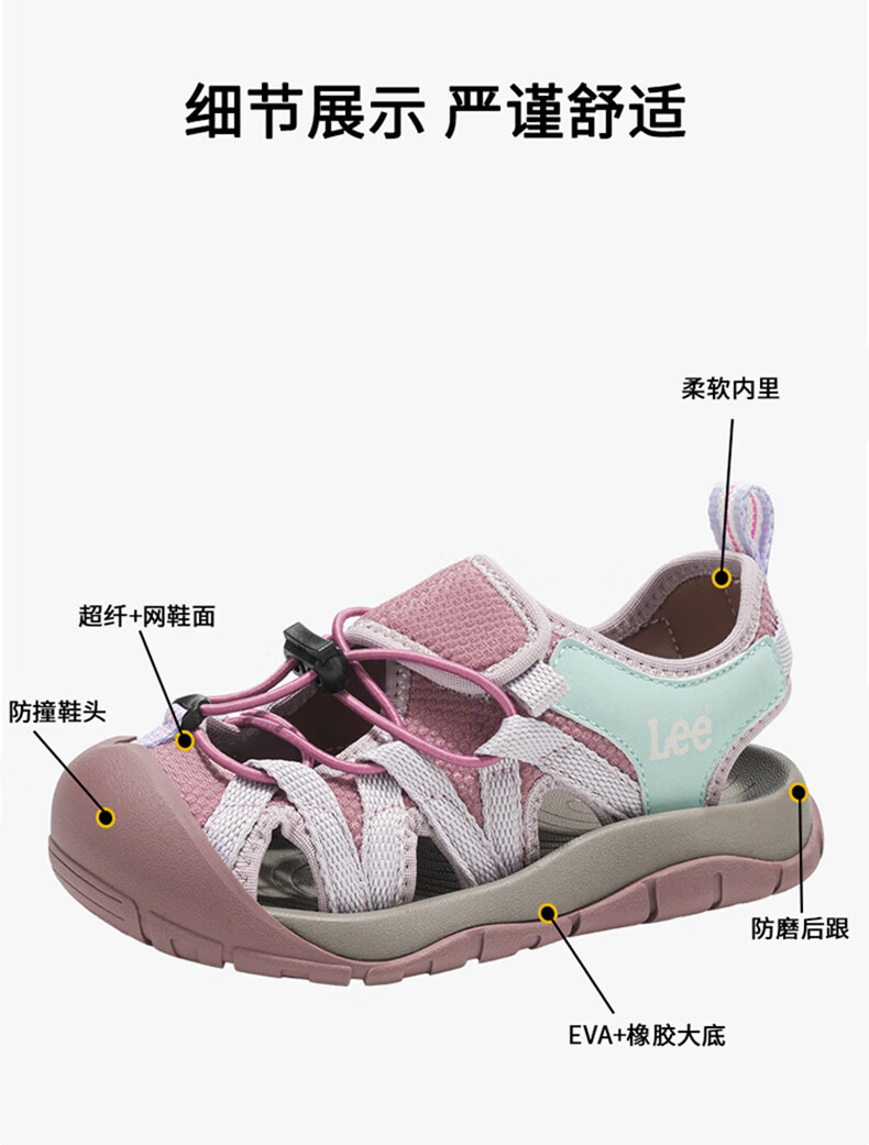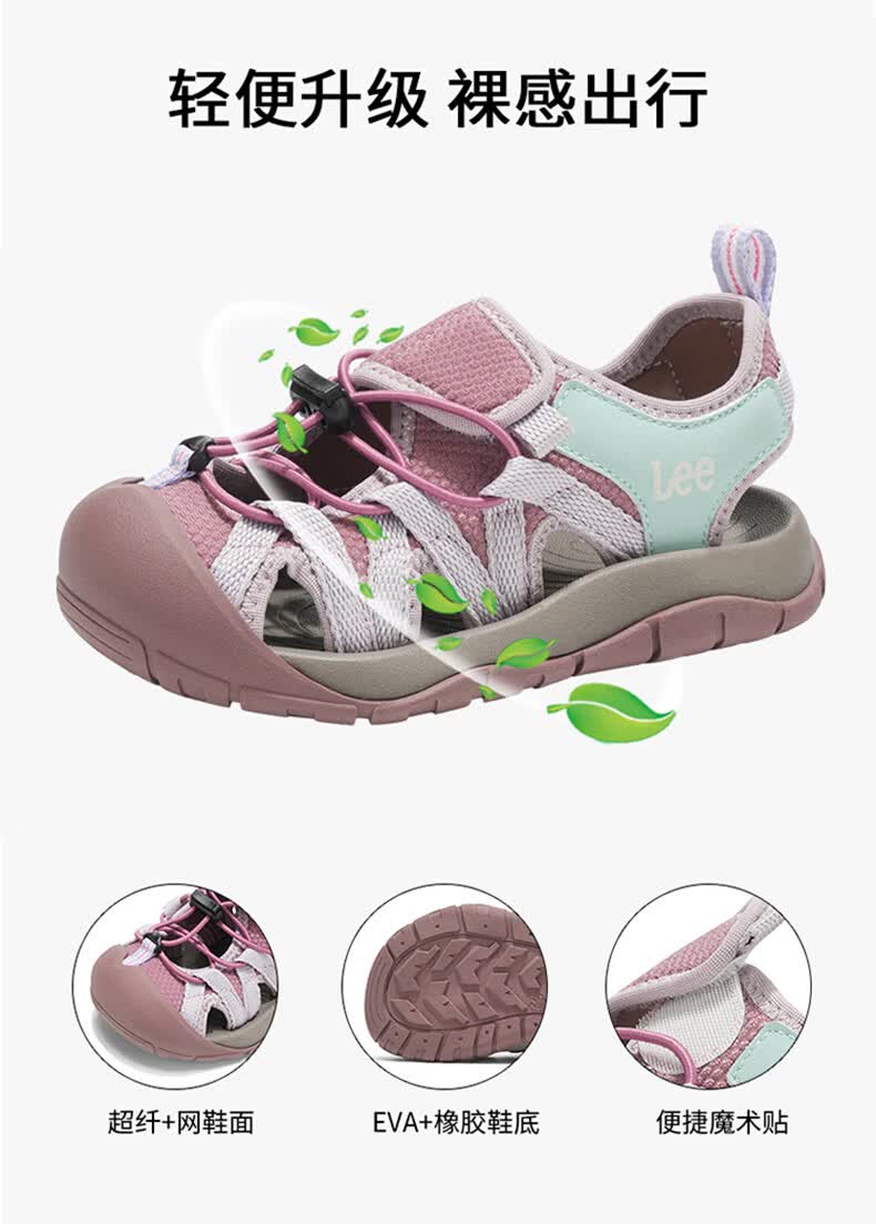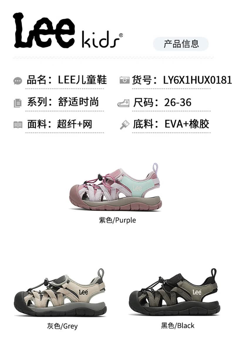 Lee童鞋夏季新款儿童包头凉鞋女童镂空沙滩鞋男大童 X0181 黑色 36 【建议脚长225mm】