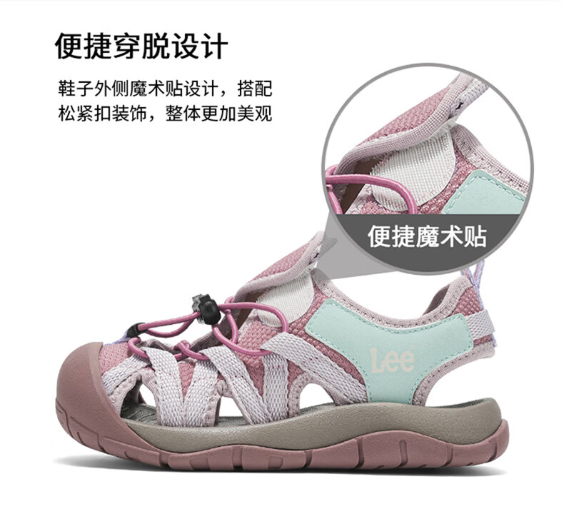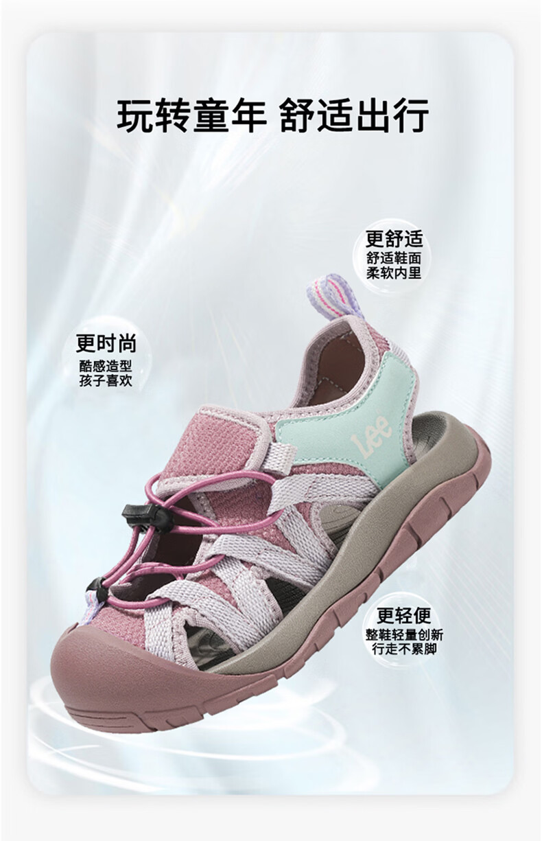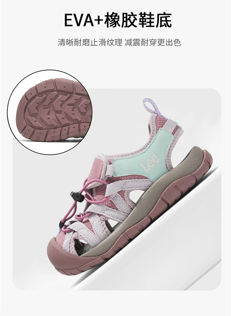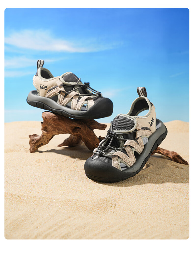 Lee童鞋夏季新款儿童沙滩凉鞋女童包头防滑涉水鞋男童 黑米 36 【建议脚长222mm】
