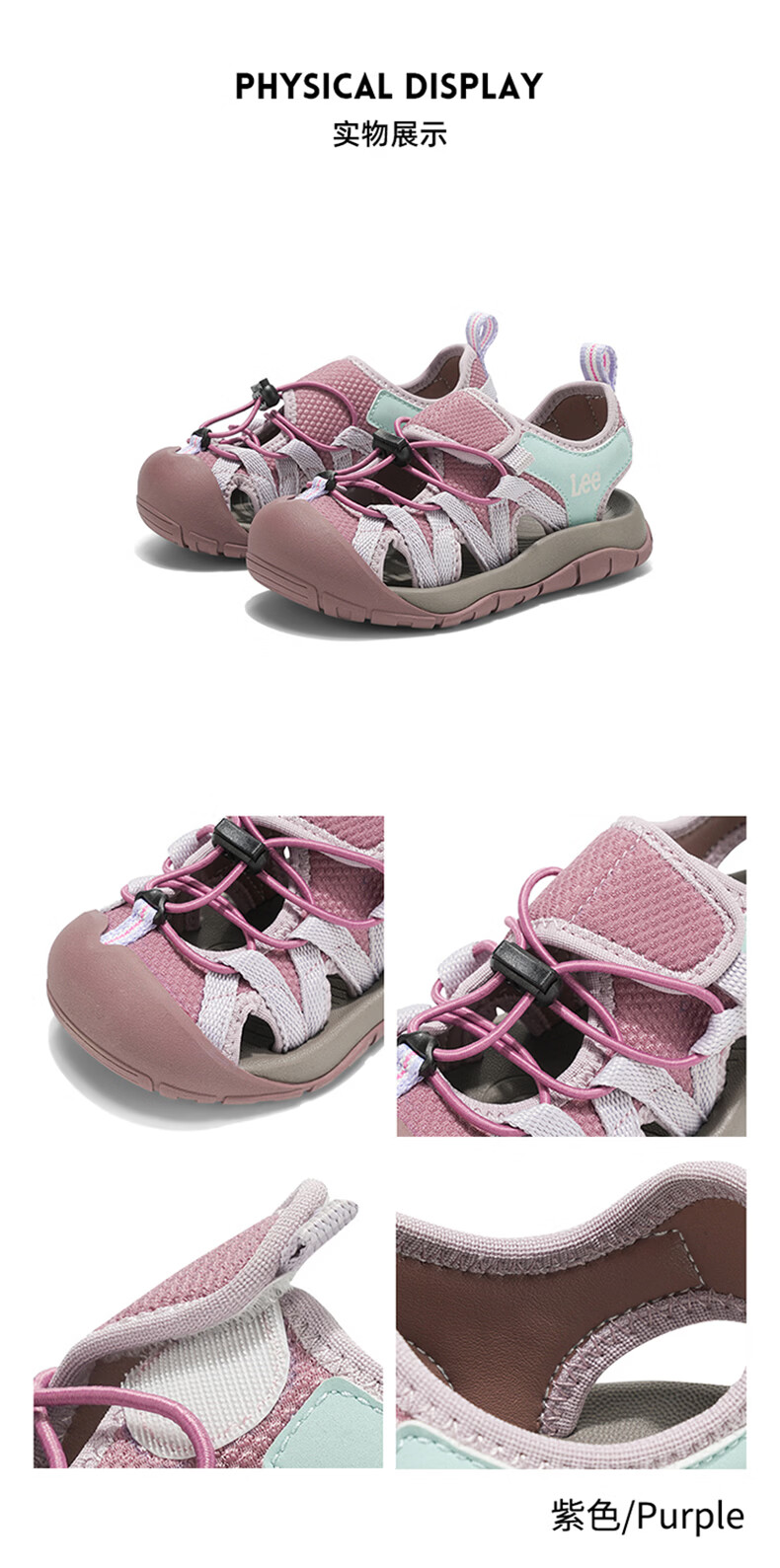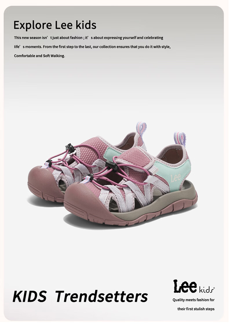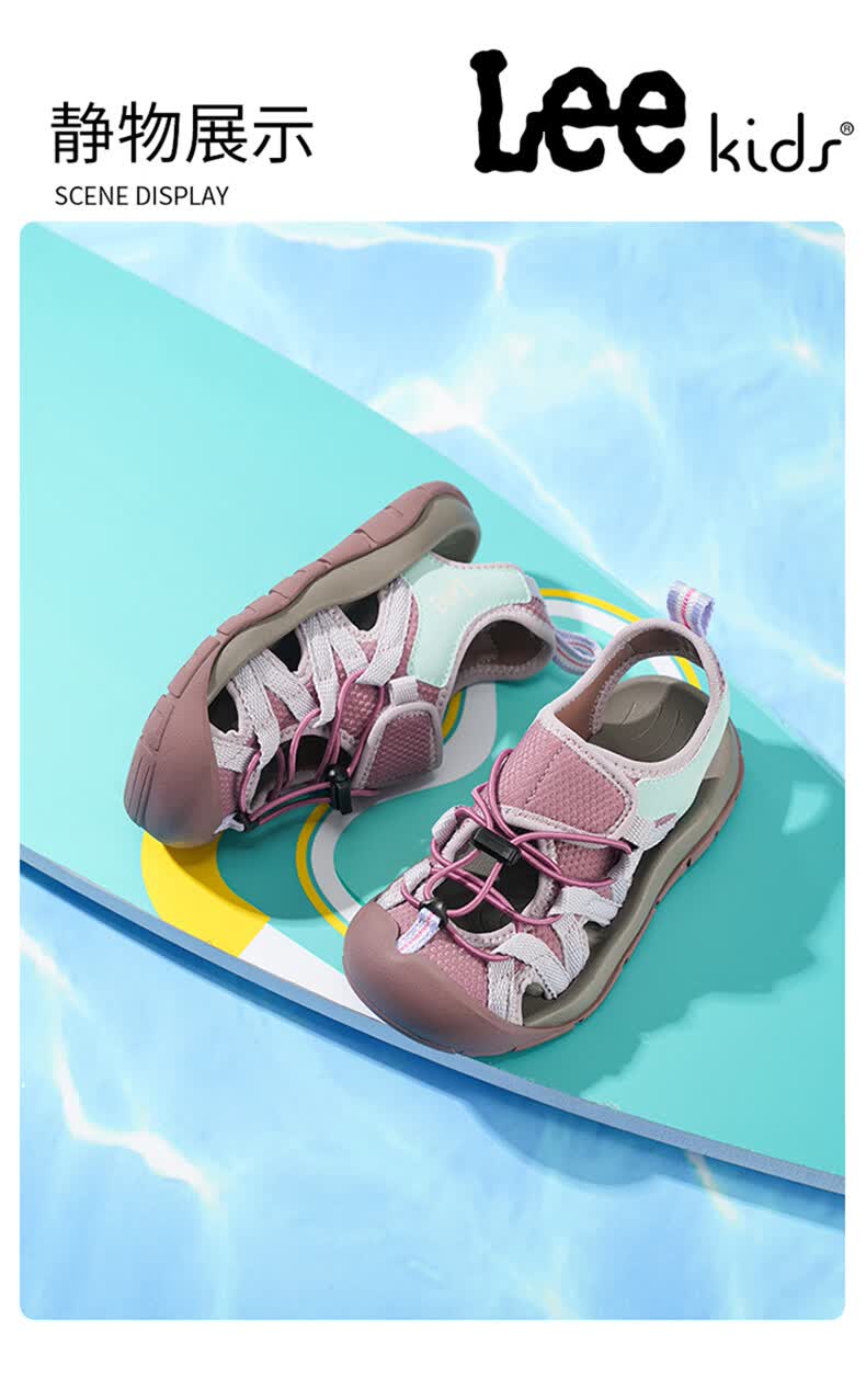 Lee童鞋夏季新款儿童沙滩凉鞋女童包头防滑涉水鞋男童 黑米 36 【建议脚长222mm】