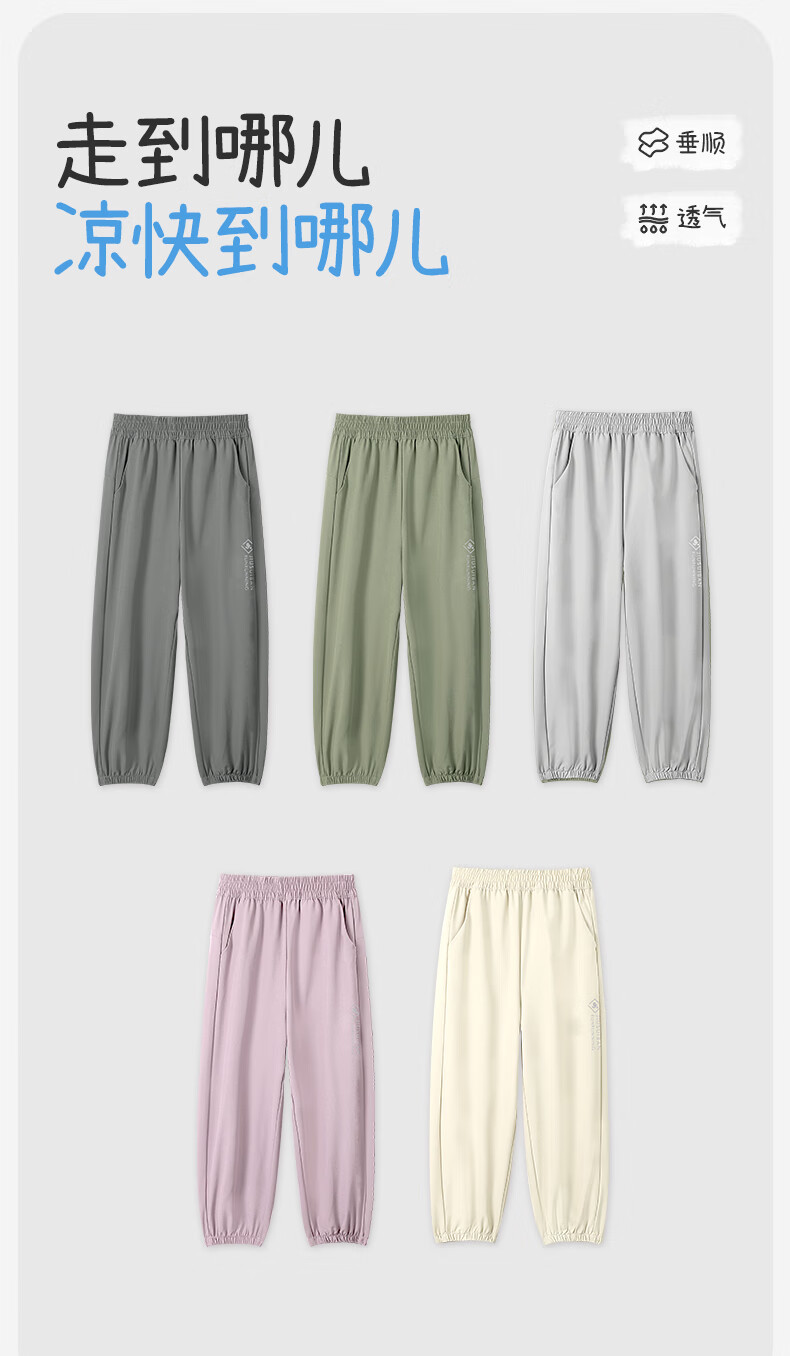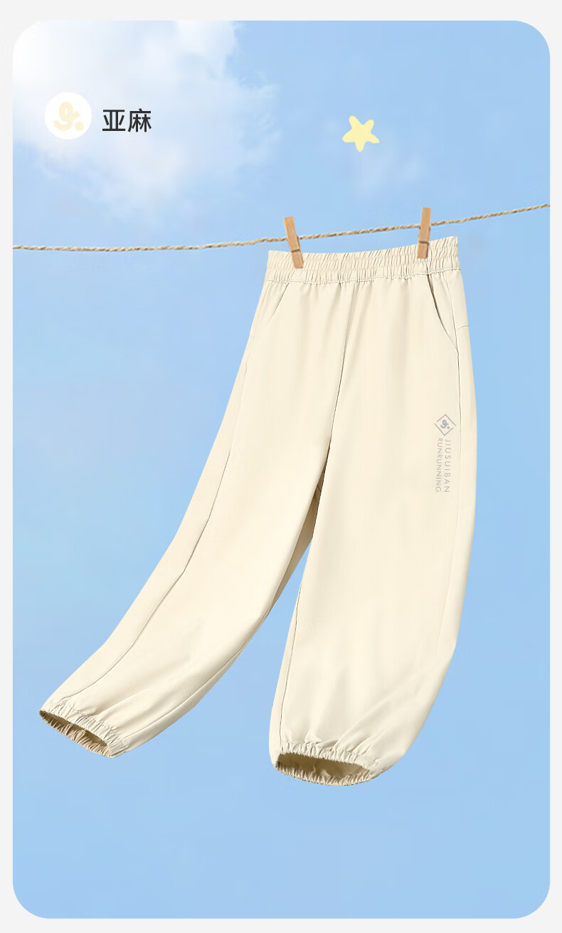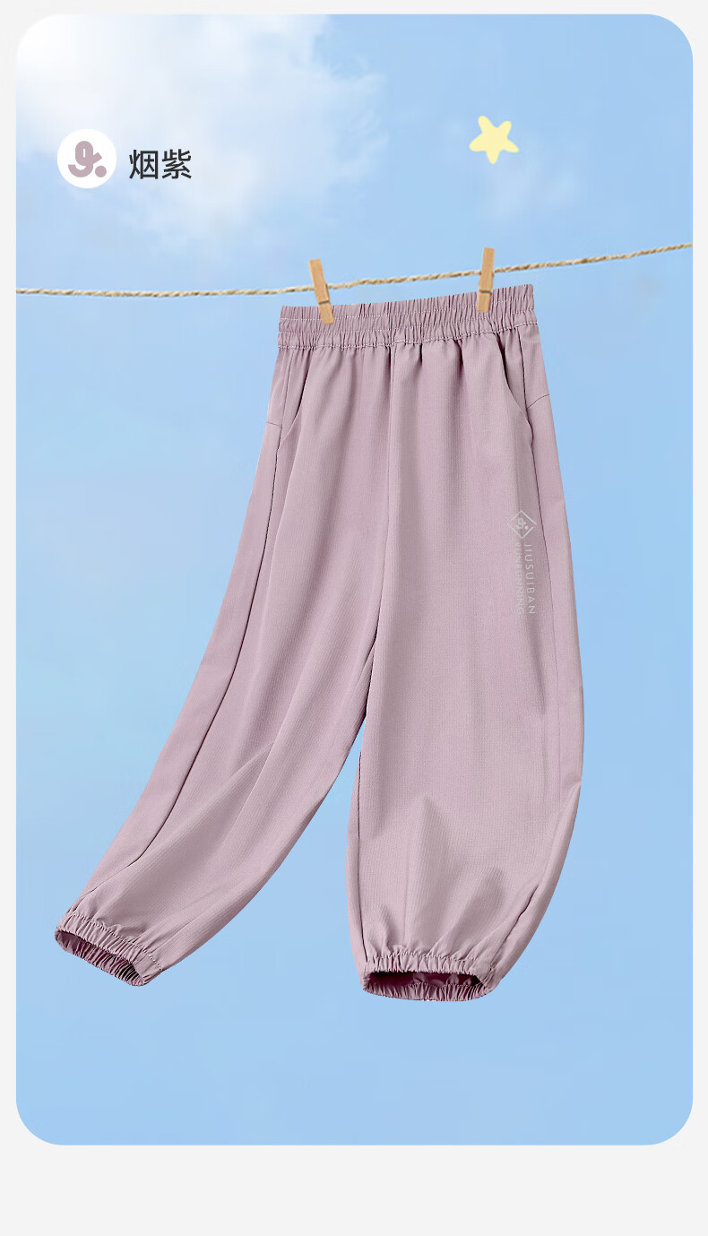 久岁伴【小轻风防蚊裤】儿童裤子男女童春夏季薄款透气大童6-12岁休闲裤 烟紫 /1条 160 /身高150-162体重90-105斤