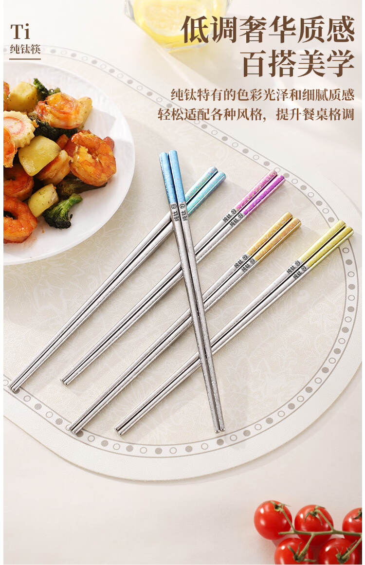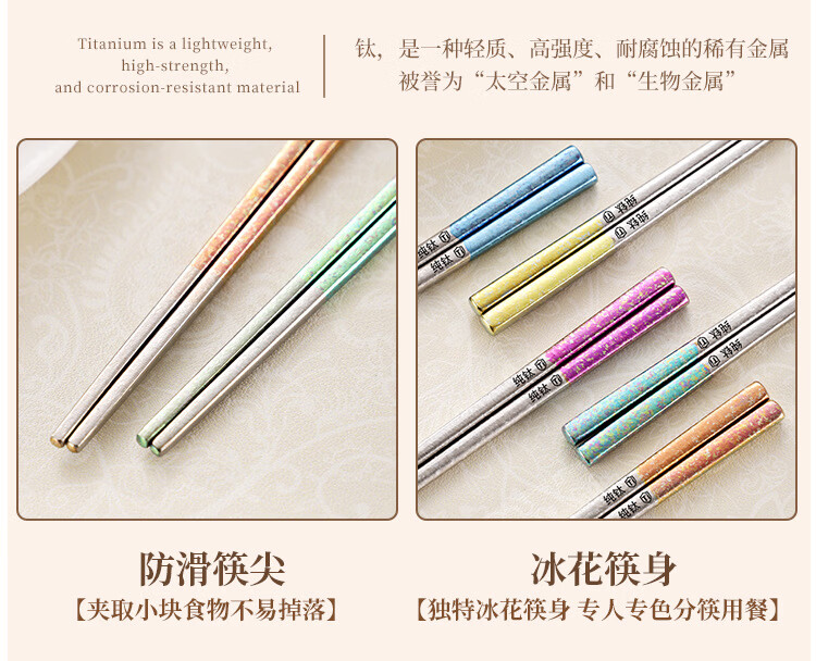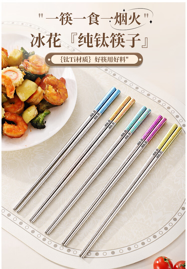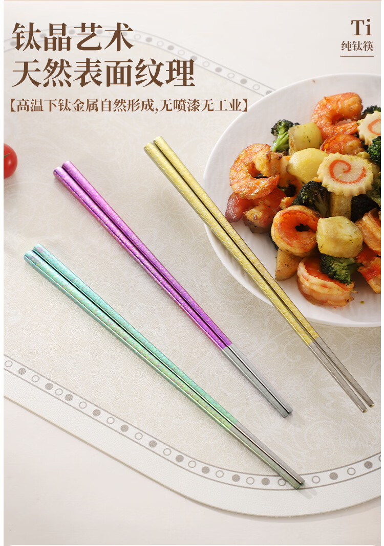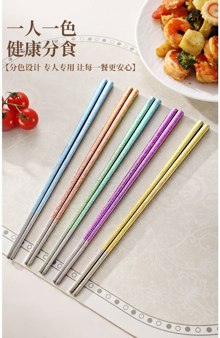 纯钛筷子家用抗菌防霉耐高温分餐筷一人一筷礼盒装结晶彩色 B款纯钛方筷【去防滑五色盒装】 25cm
