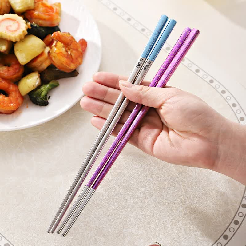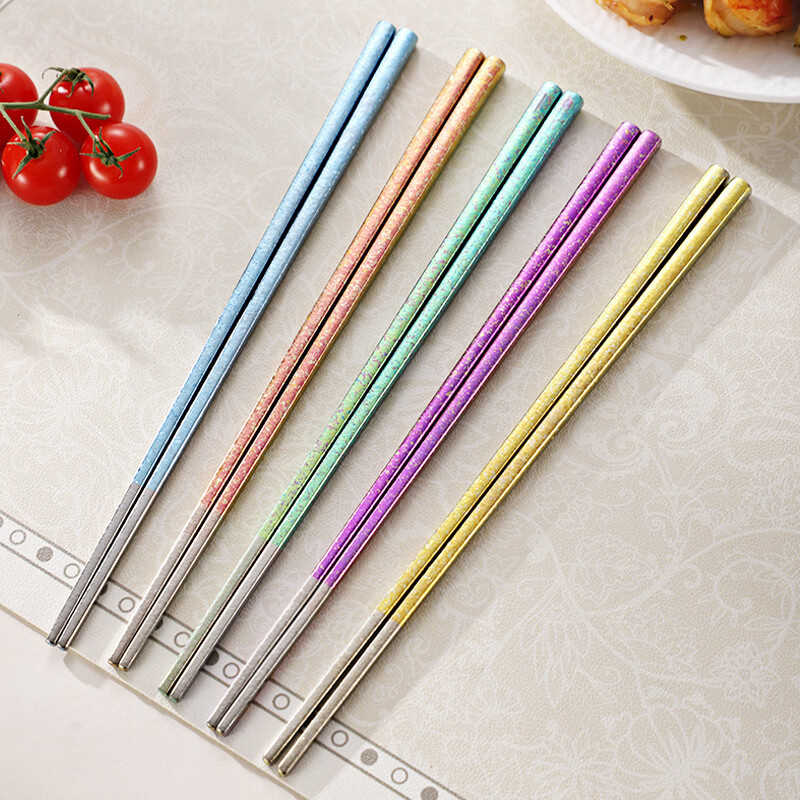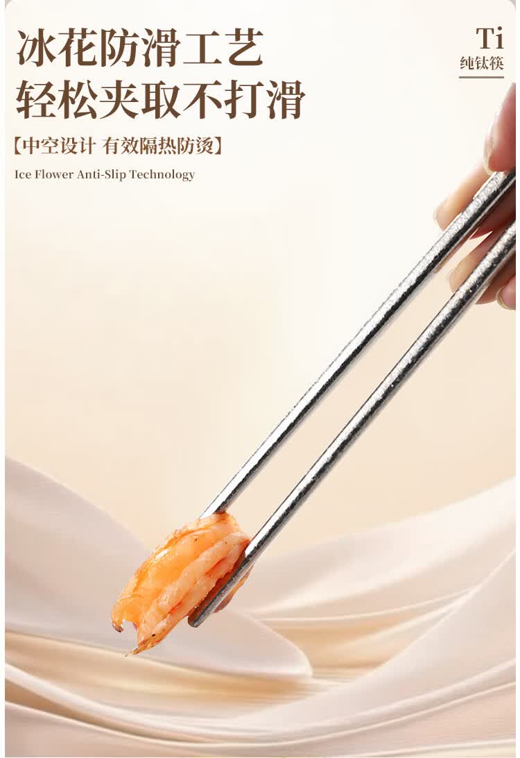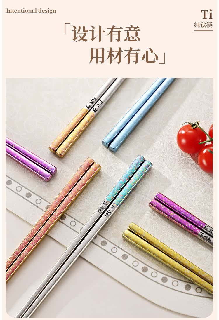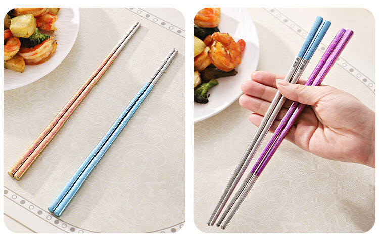 纯钛筷子家用抗菌防霉耐高温分餐筷一人一筷礼盒装结晶彩色 B款纯钛方筷【去防滑五色盒装】 25cm