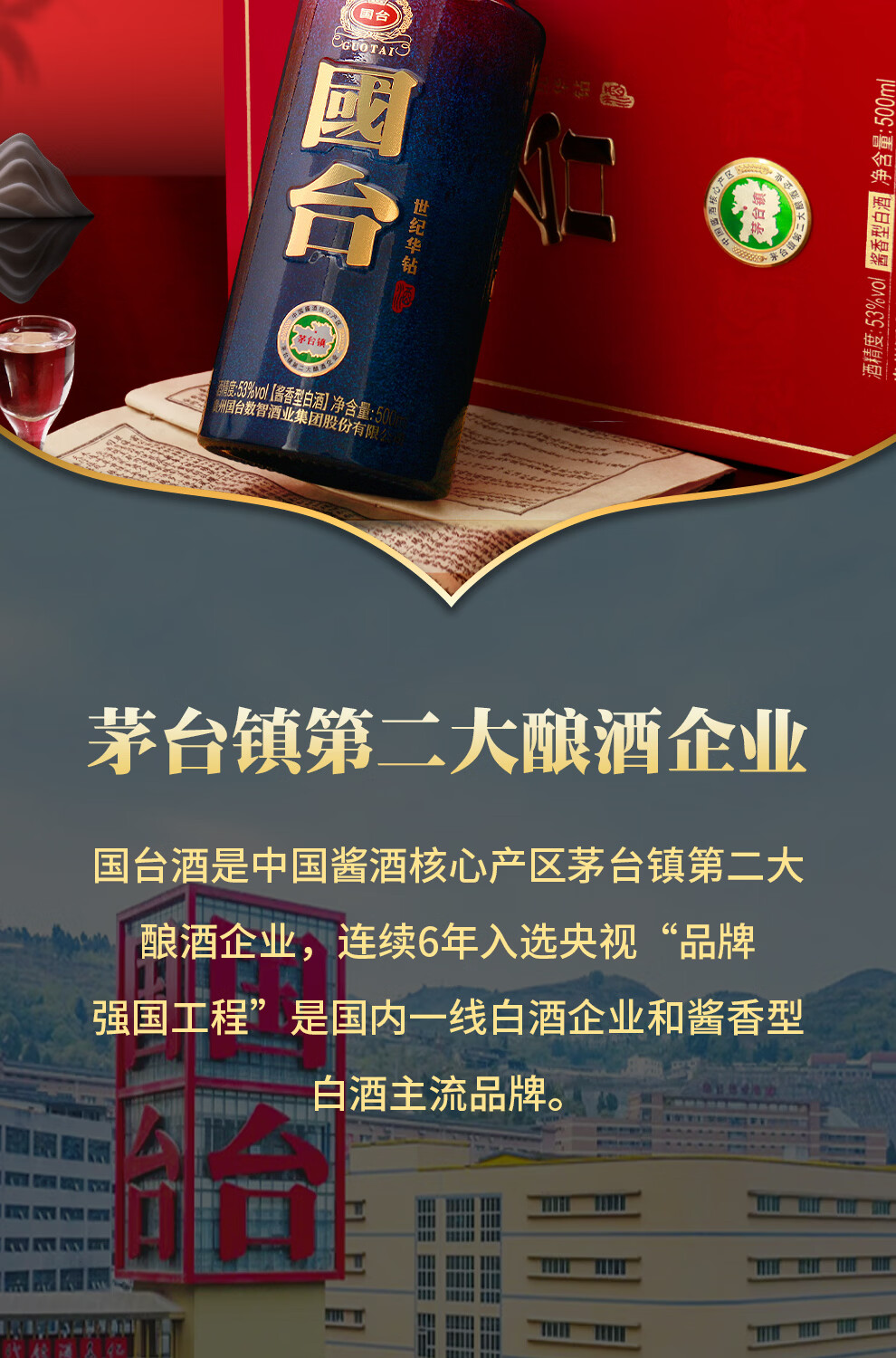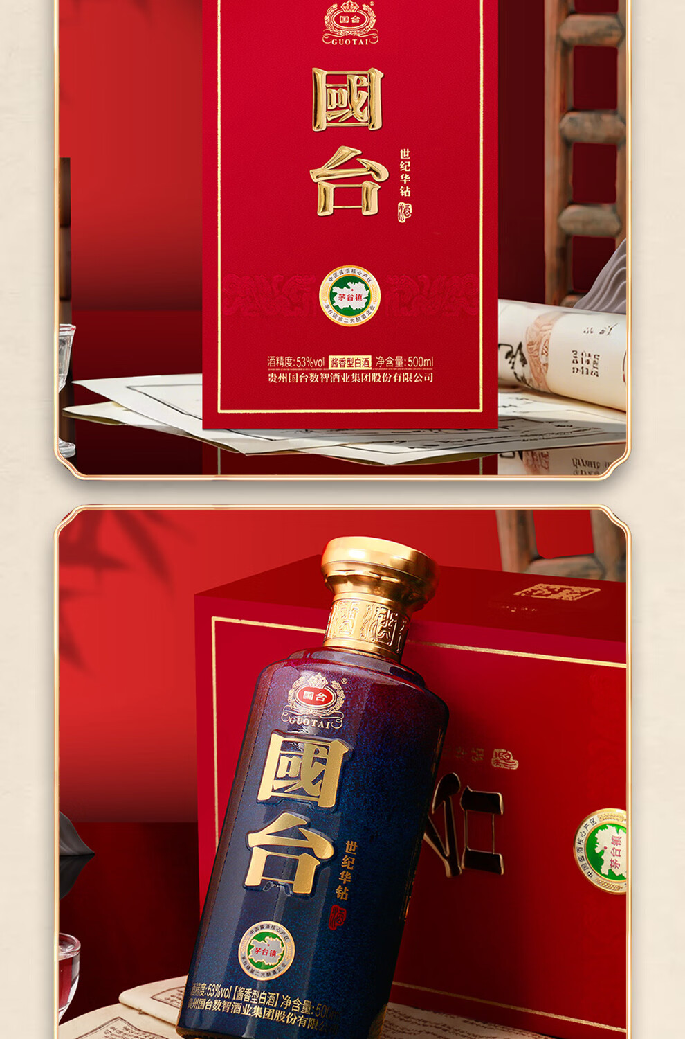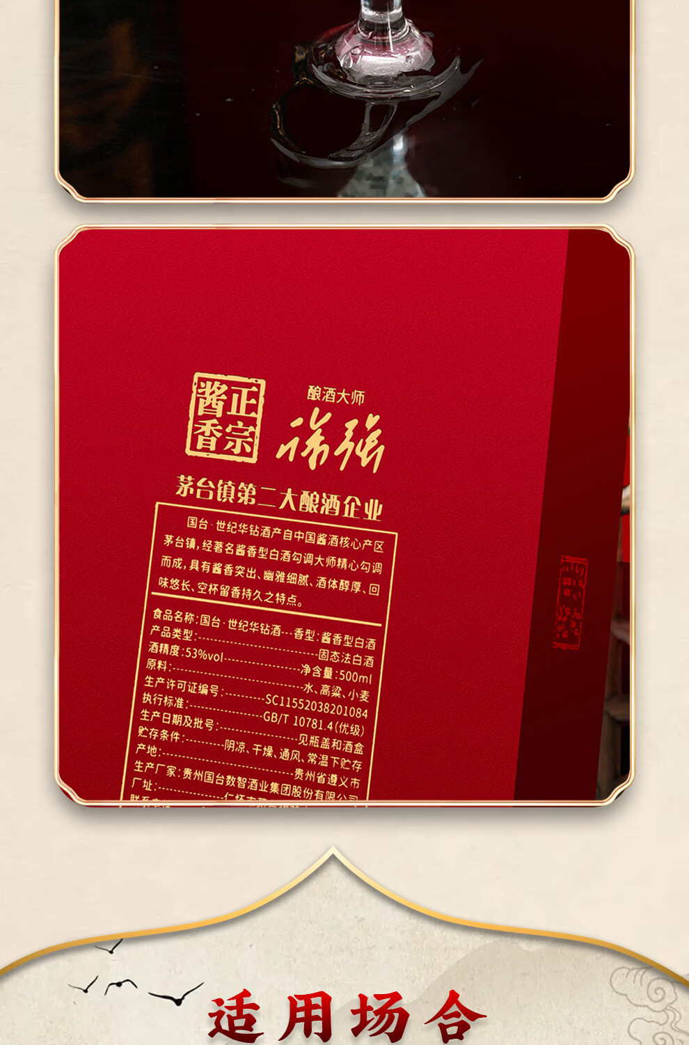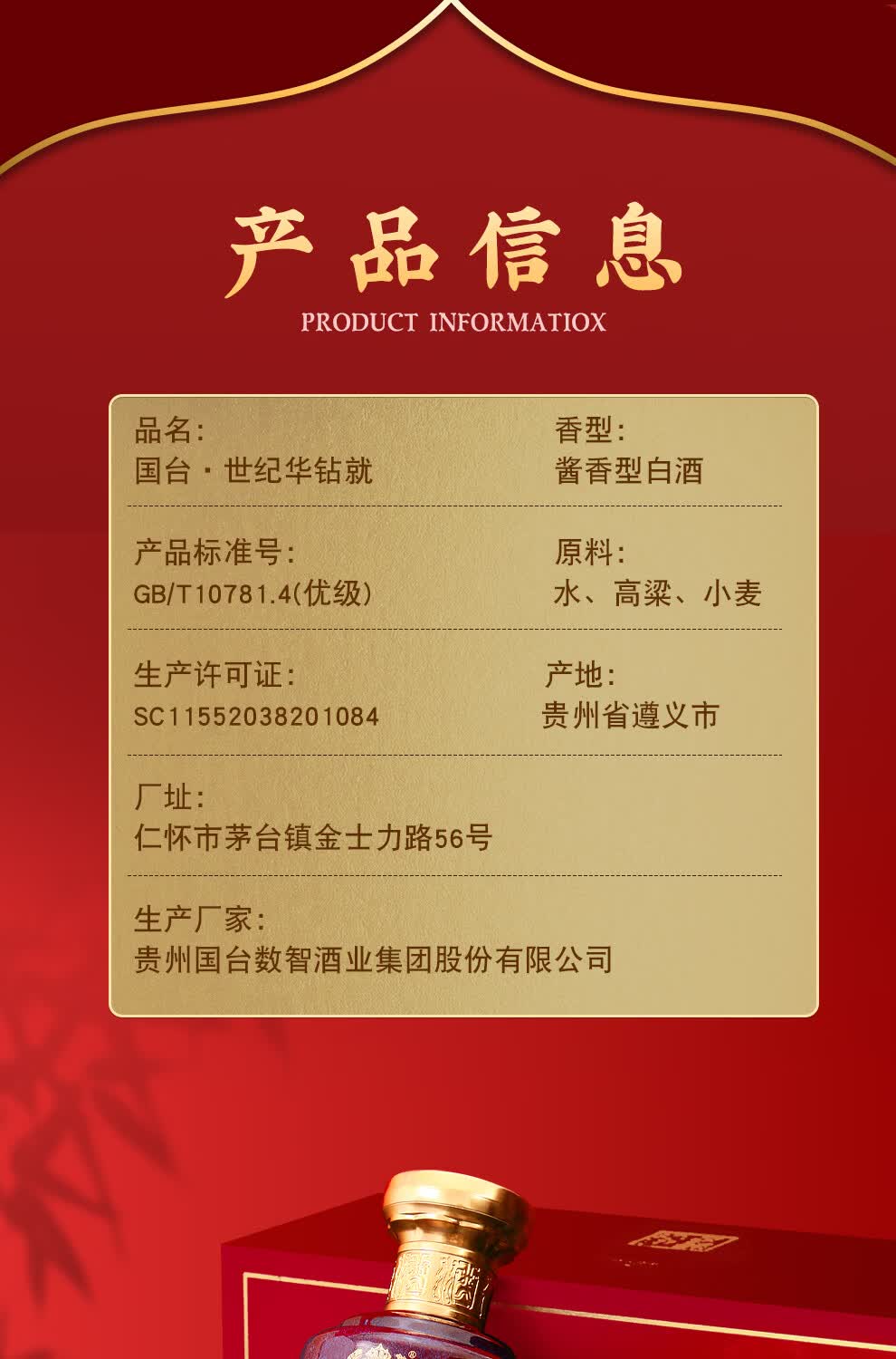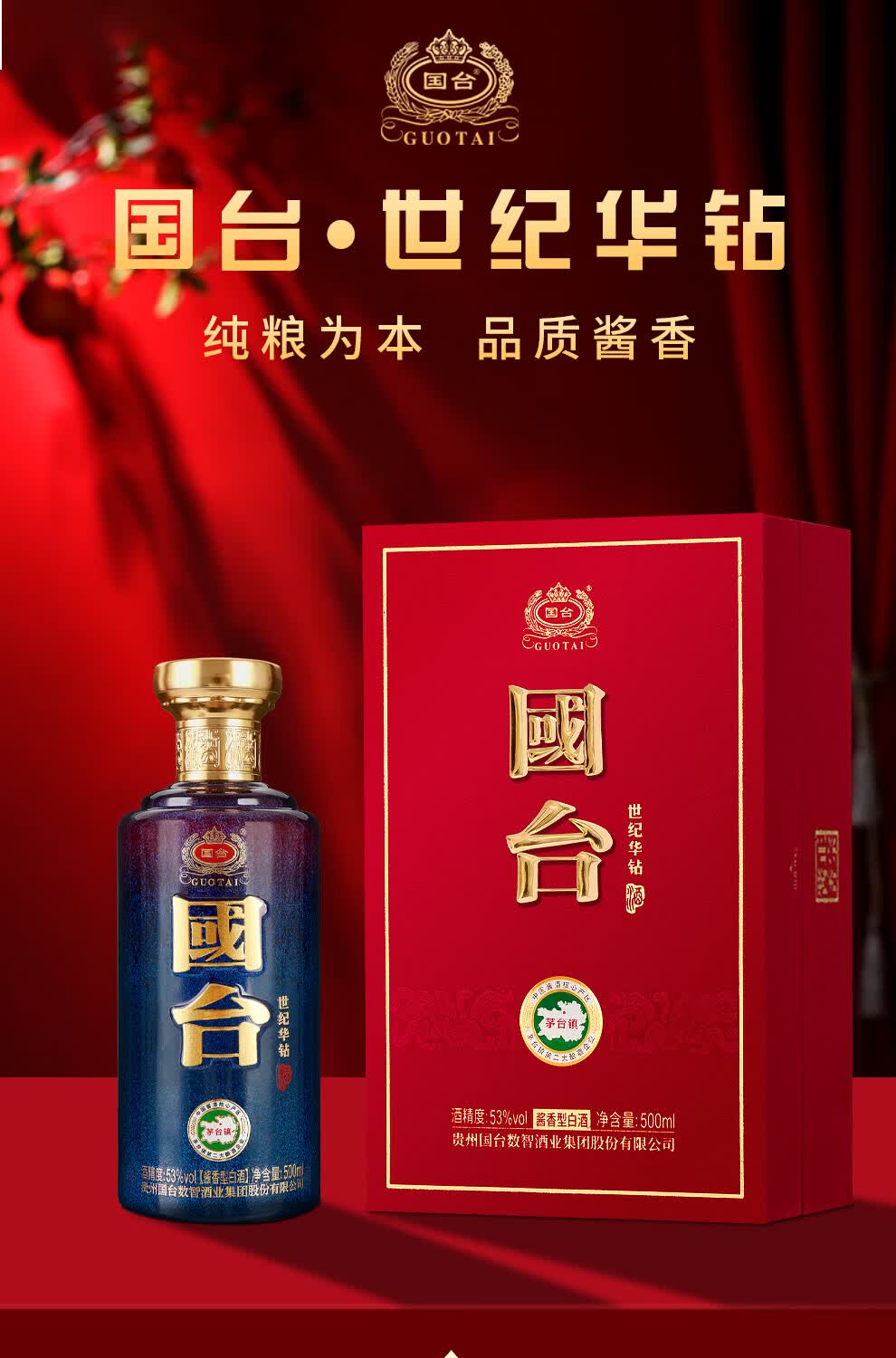 国台贵州国台酒业酱香型纯粮白酒整箱商务宴请 53度500ML国台世纪华钻 53度 500mL 1瓶 国台世纪华钻