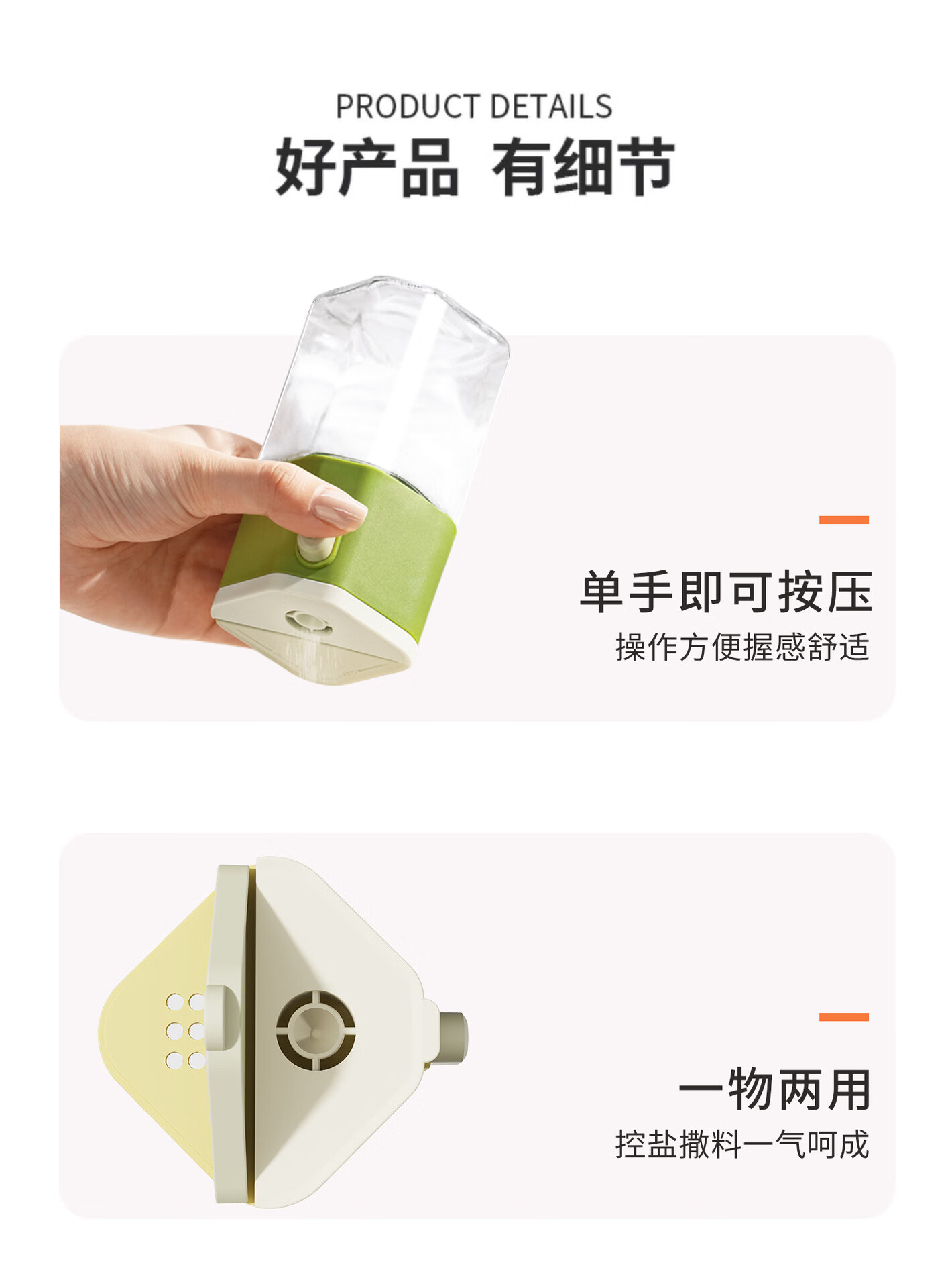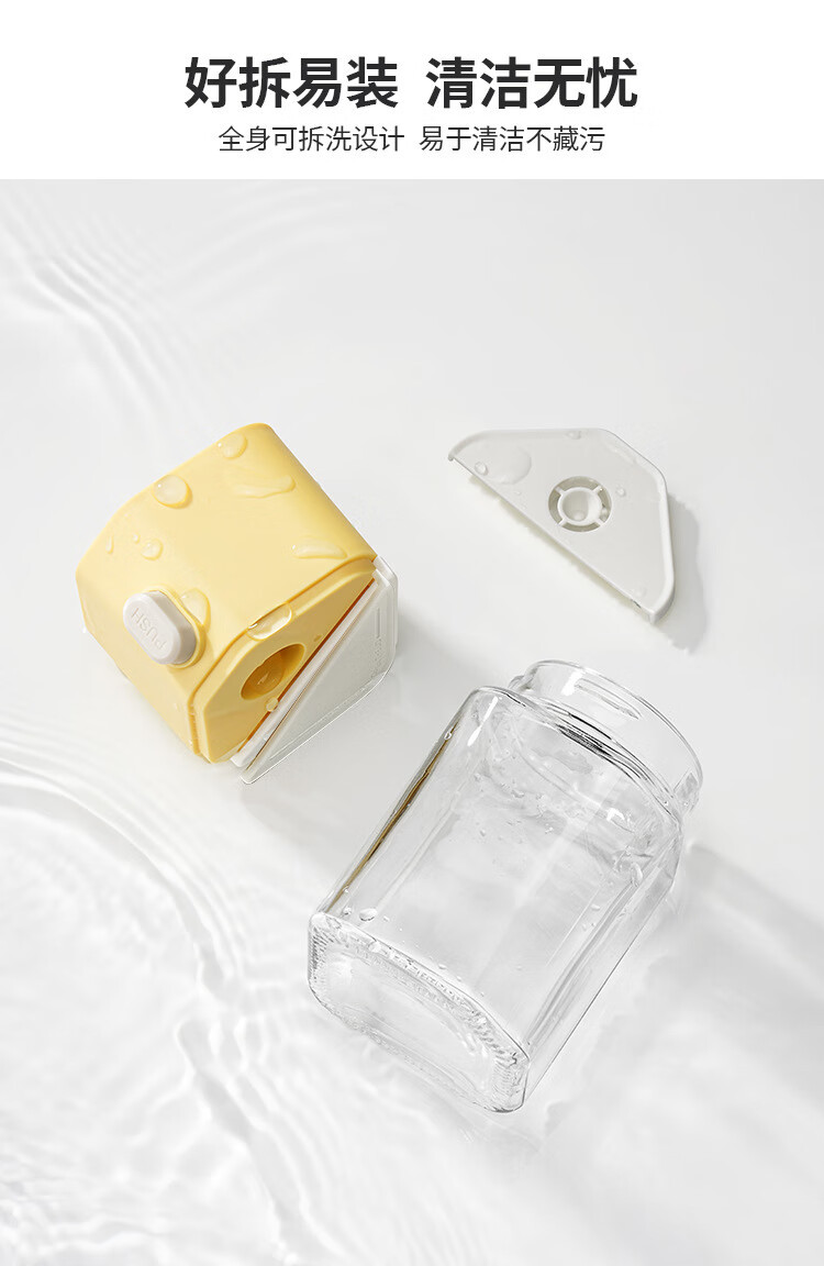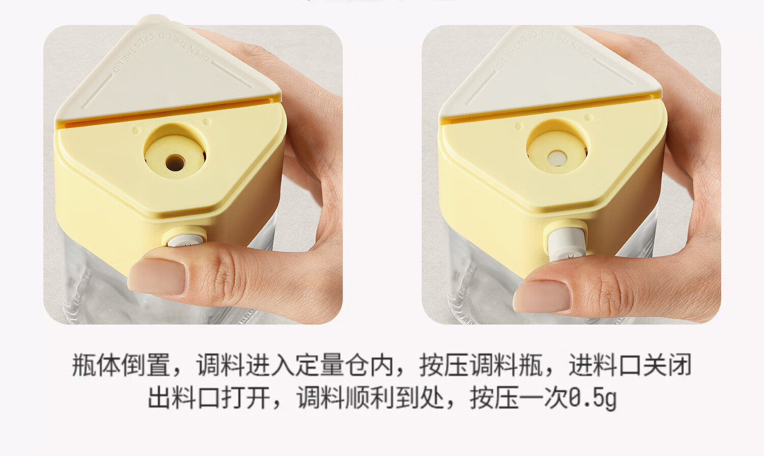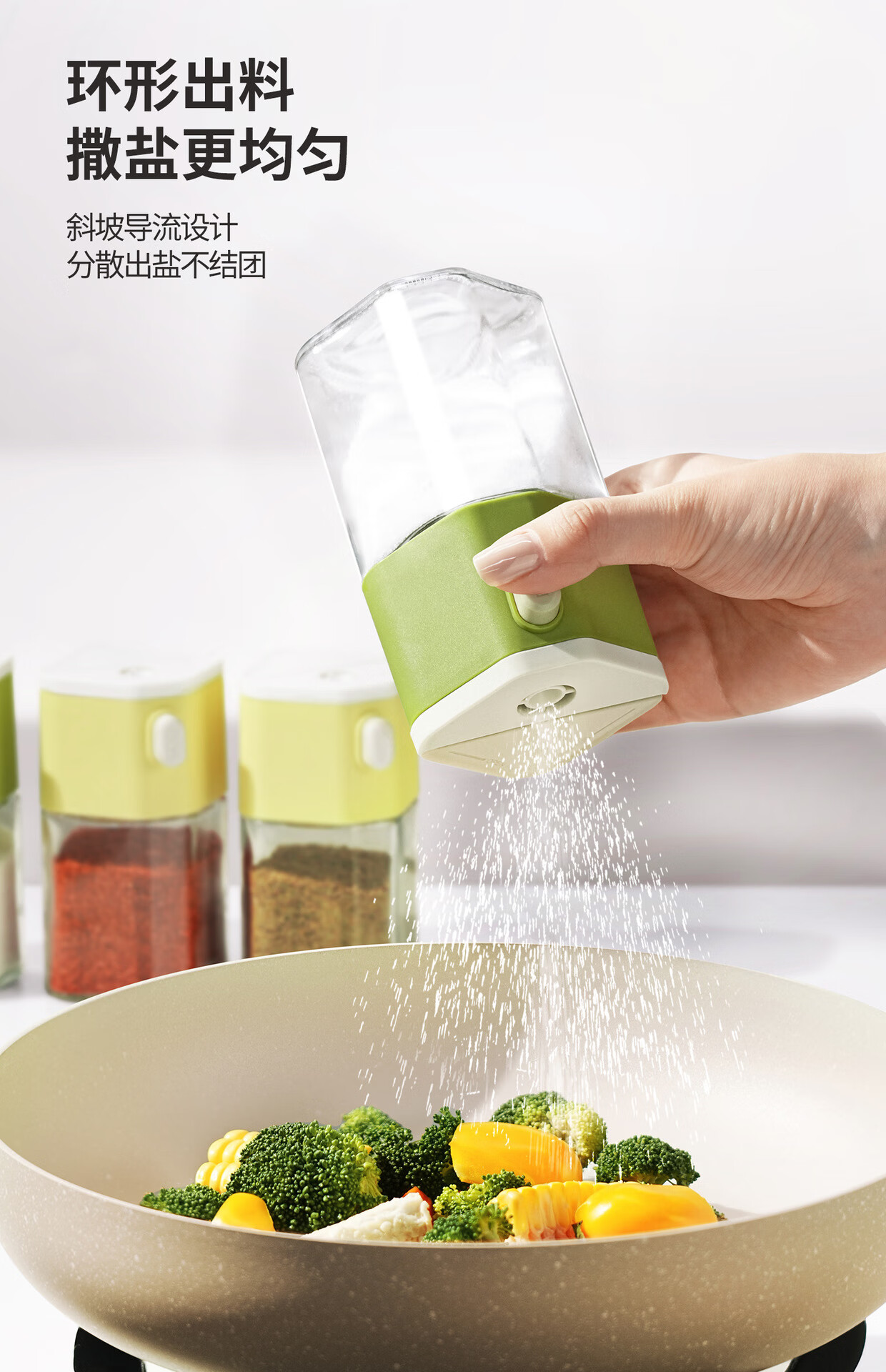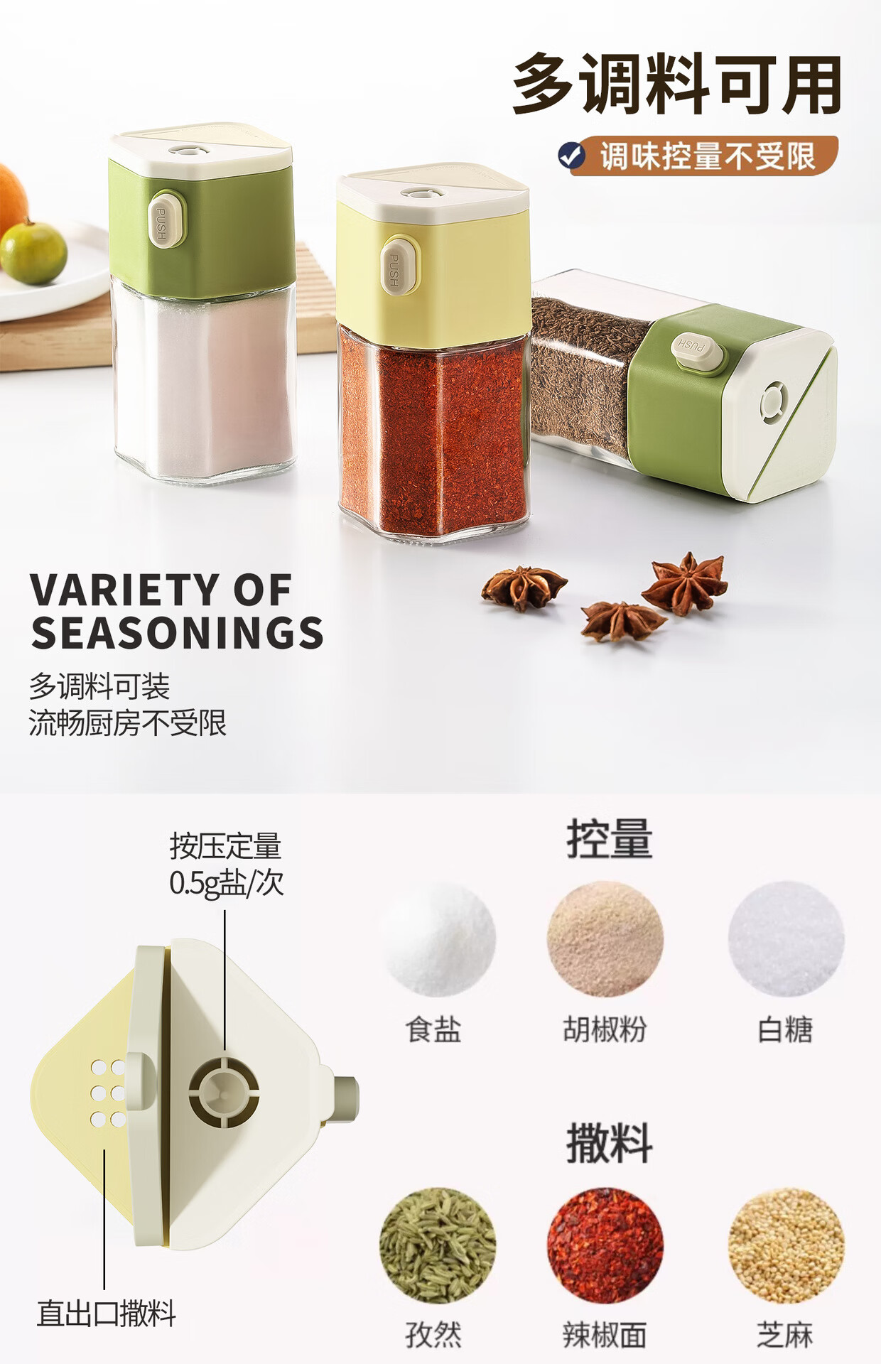【精选】两用撒盐调料罐瓶厨房家用调料瓶盐罐孜然调味瓶玻璃辣椒 黄色 单件装 味满两用定量调味罐