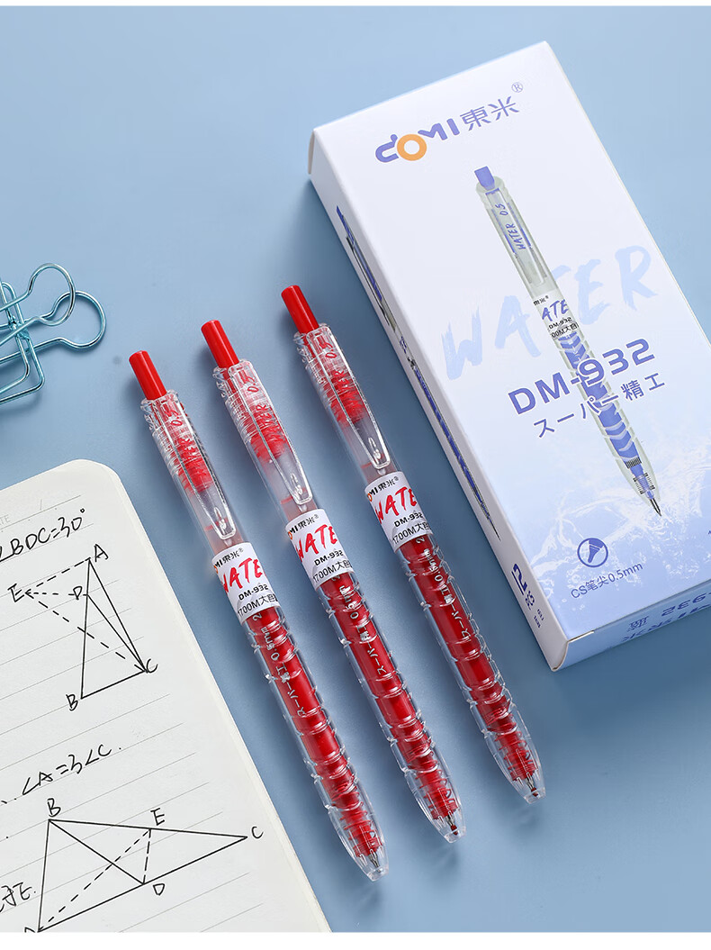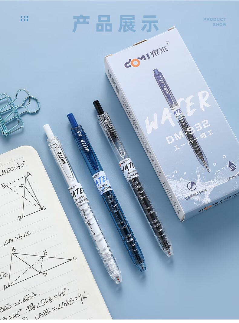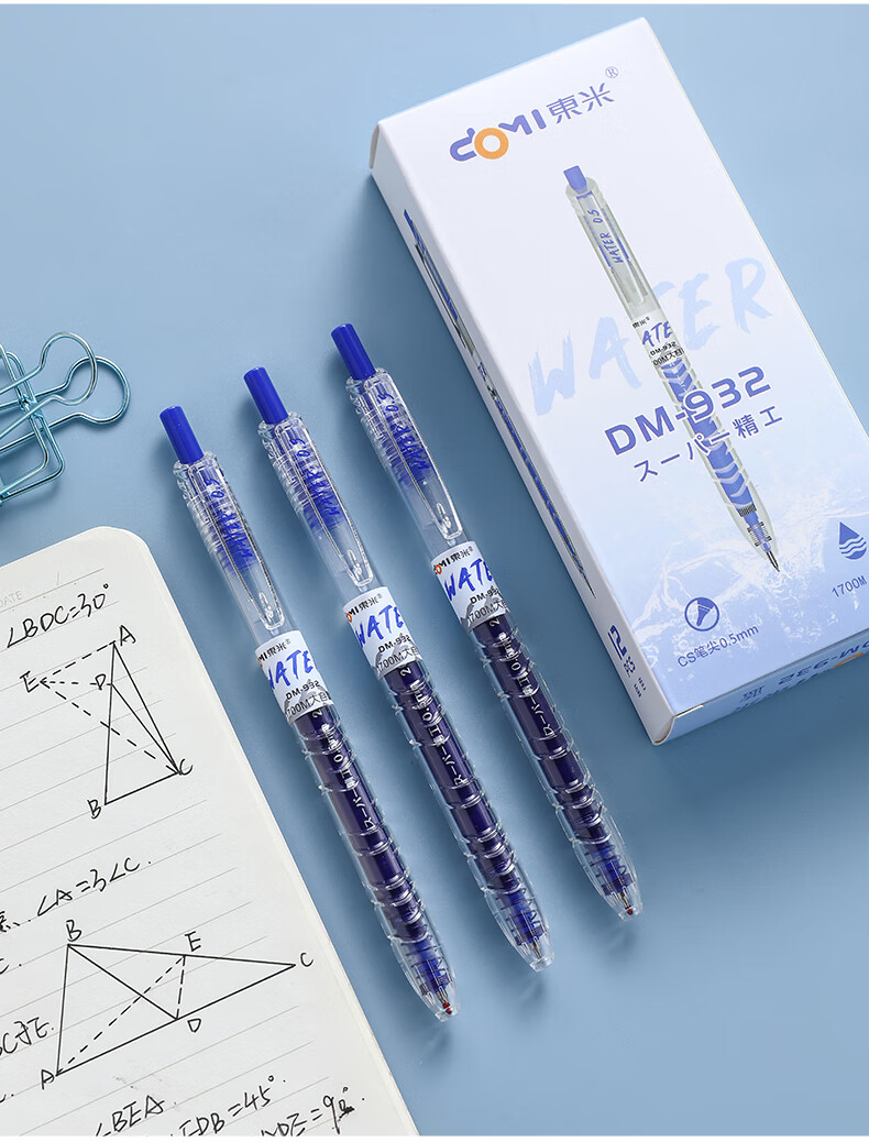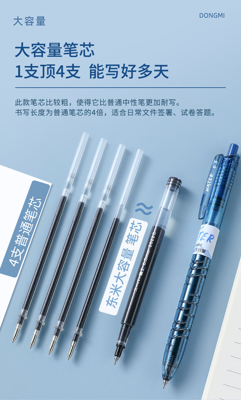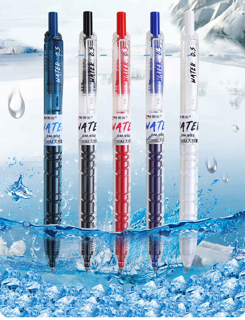 東米中性笔文具0.5mm按动签字笔办公大容量小初中高学生开学必备刷题笔宝特瓶东米白杆黑色3支DM932