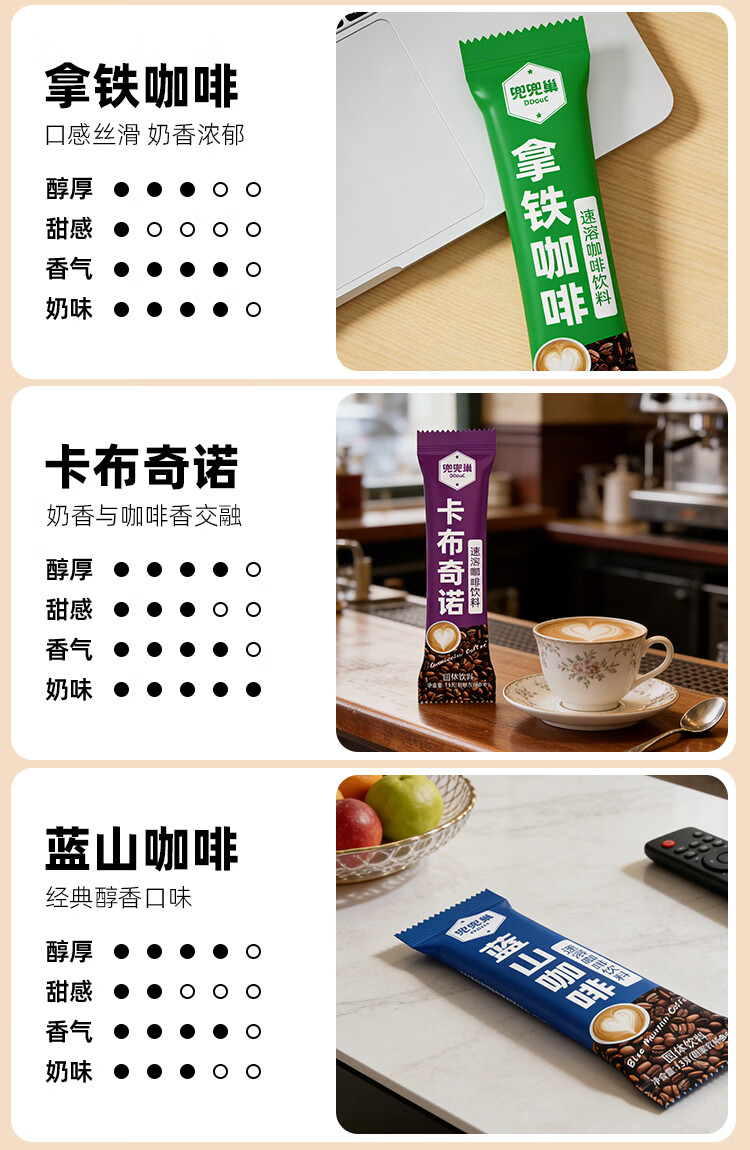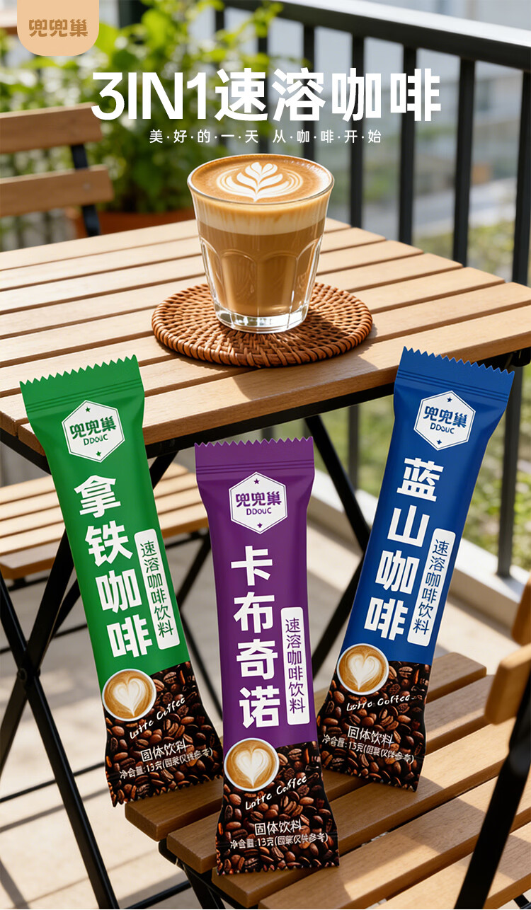 兜兜巢小粒咖啡三合一速溶咖啡粉条装拿铁蓝山卡布奇诺整箱批发 拿铁口味 20条