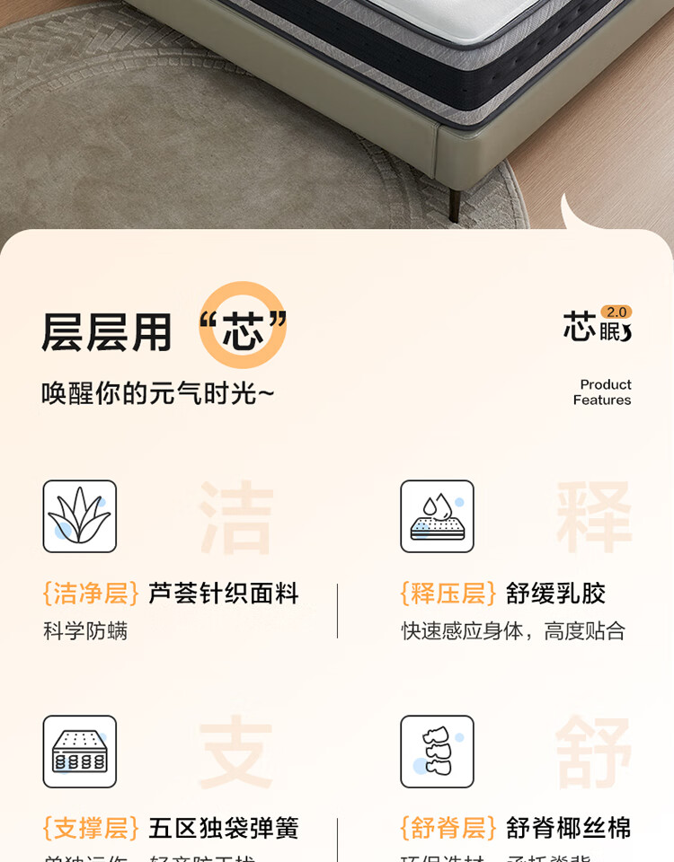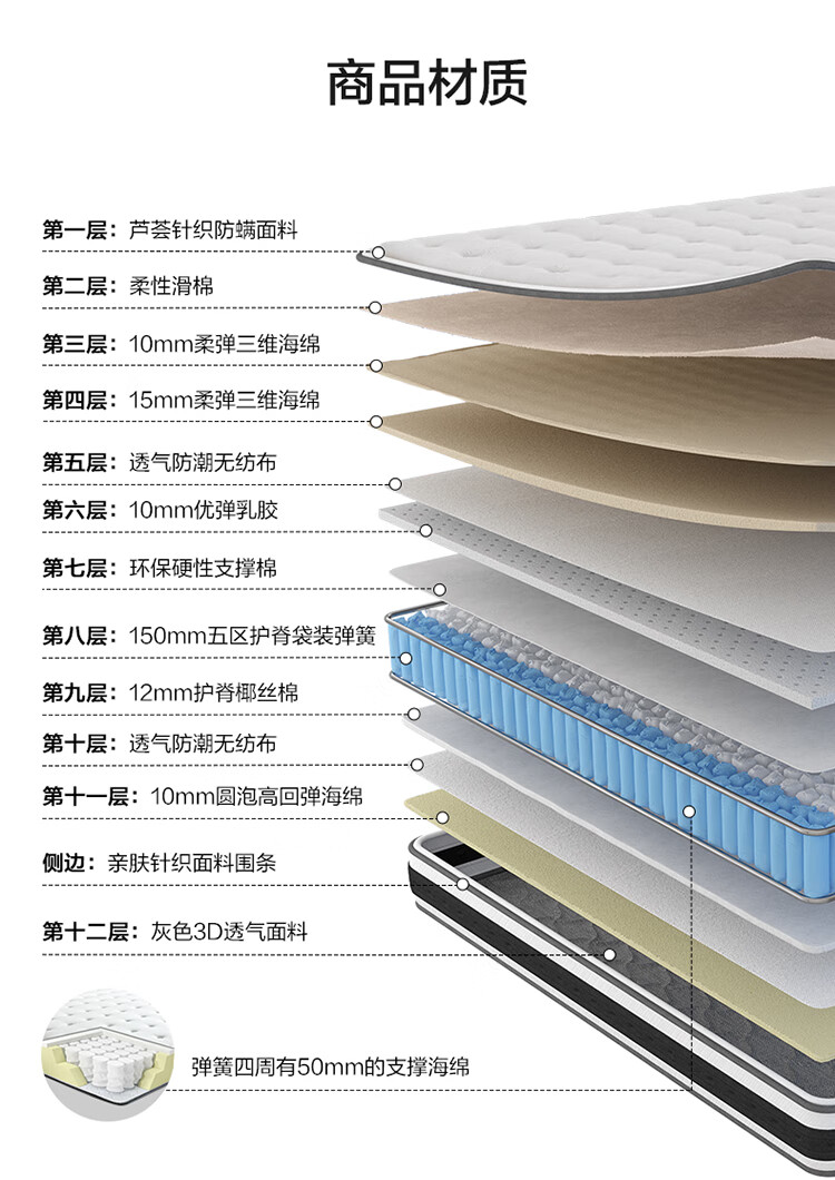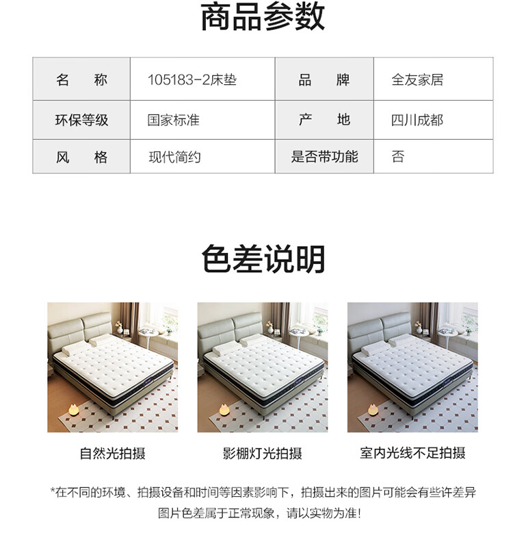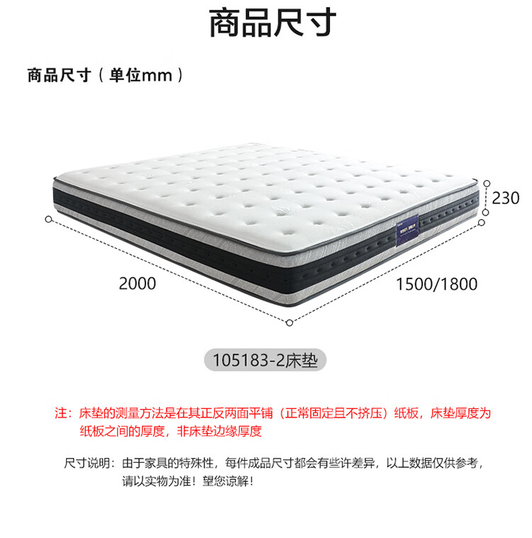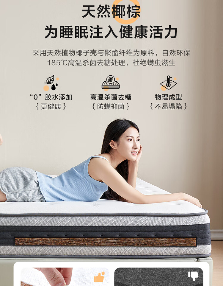 全友家居 独立袋装弹簧乳胶椰棕床垫1.8米x2米席梦思酒店床垫偏硬护脊