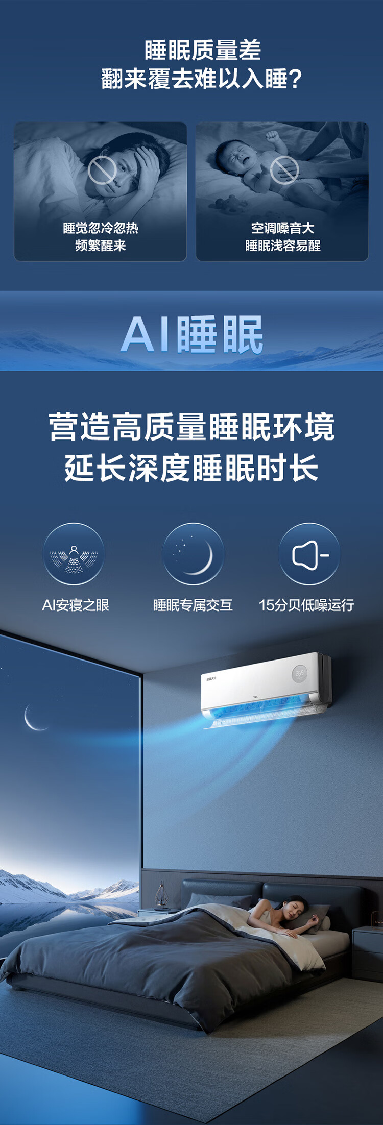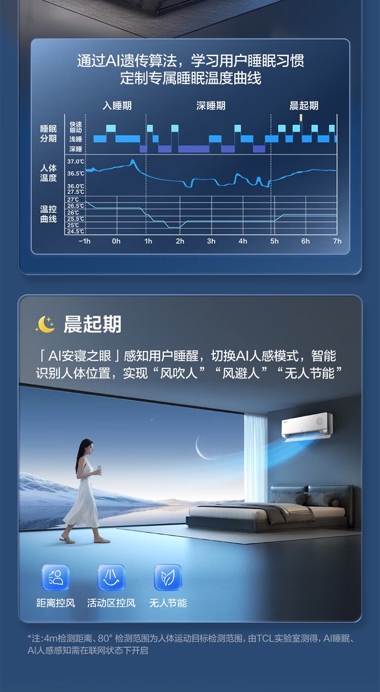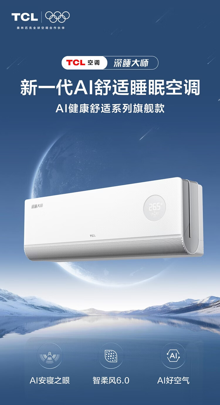 TCL【一价全包】深睡大师·新一代AI舒适睡眠空调旗舰款 京东联名1.5匹一级能效挂机KFR-35GW/CP11+B1