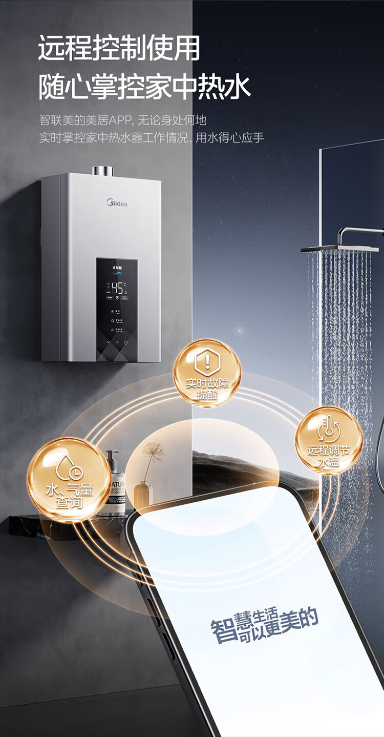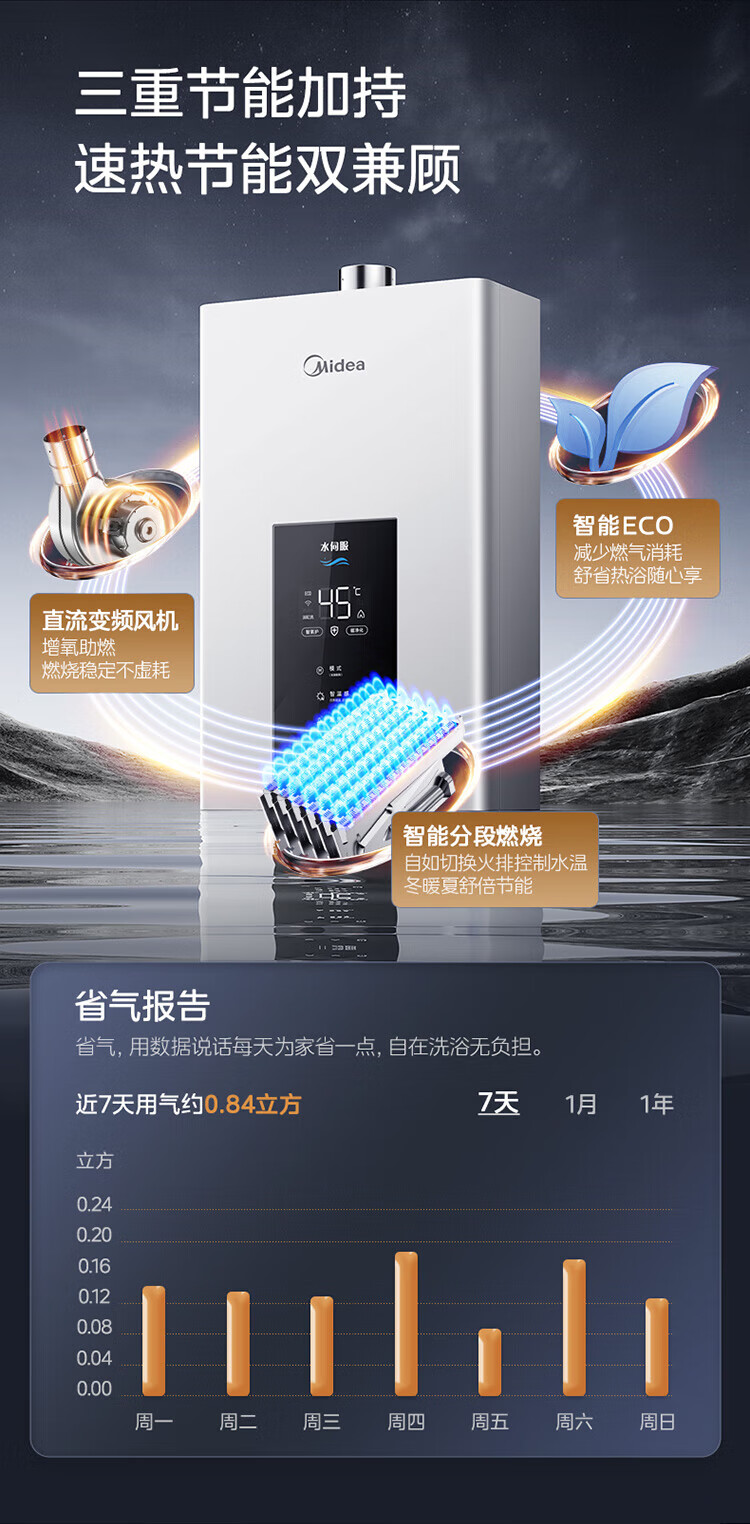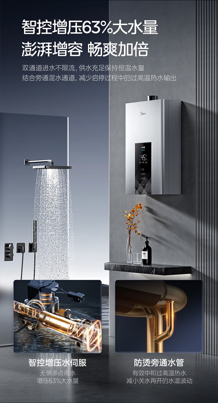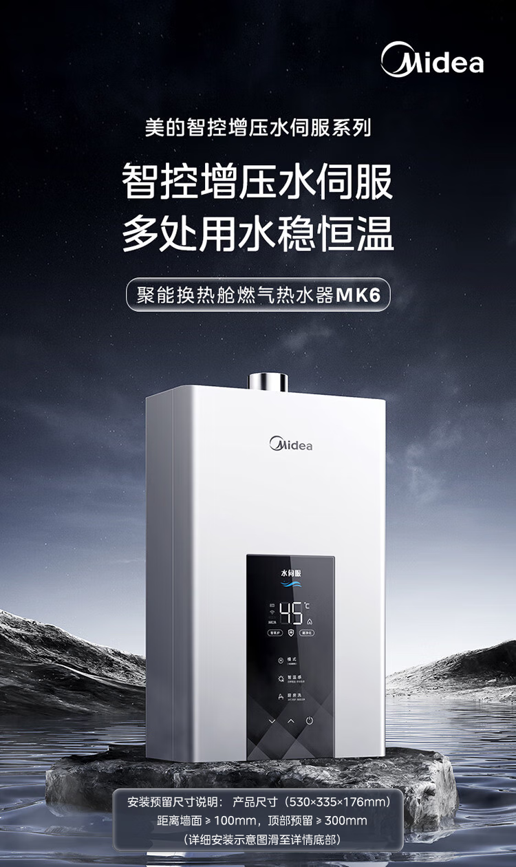 美的【水伺服MK6 16L】行业爆款 智控增压水伺服 恒温节能 一厨两卫 低水压启动 燃气热水器 上门安装