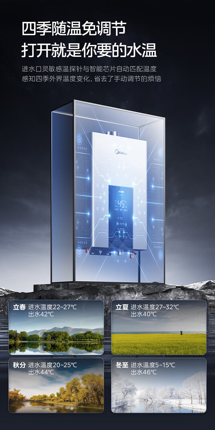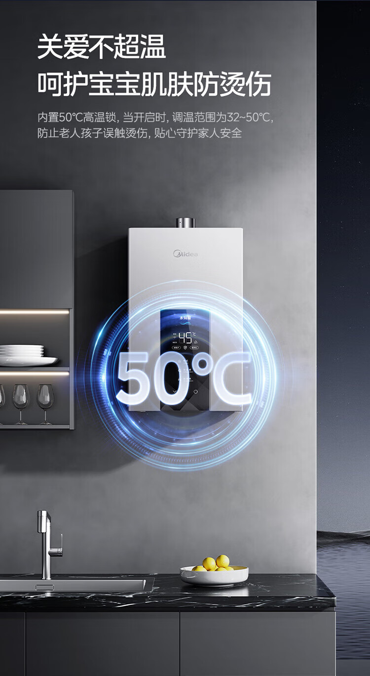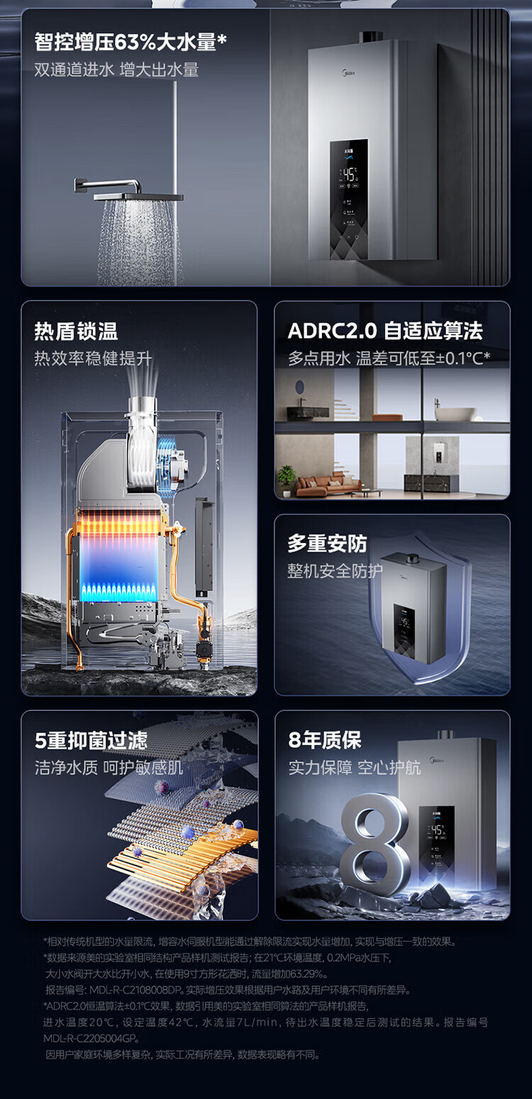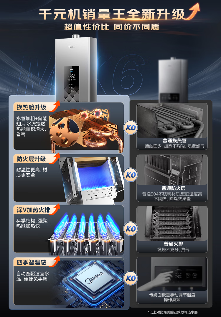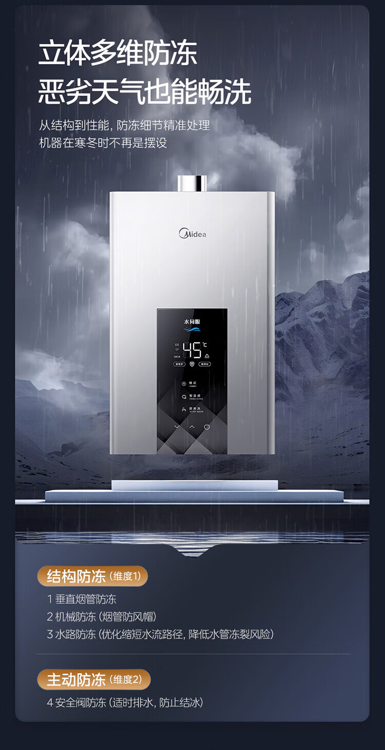 美的【水伺服MK6 16L】行业爆款 智控增压水伺服 恒温节能 一厨两卫 低水压启动 燃气热水器 上门安装