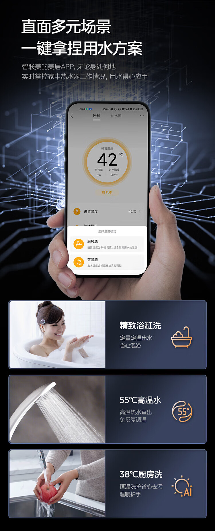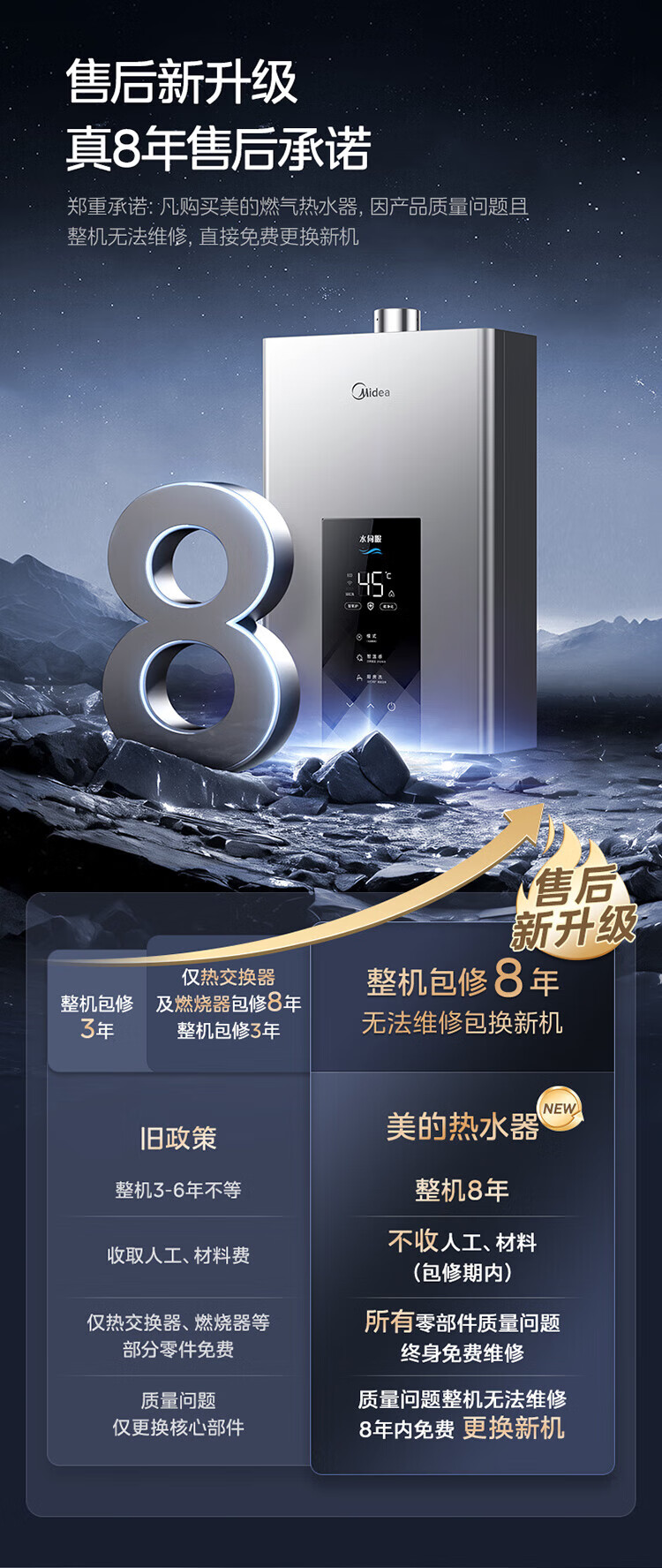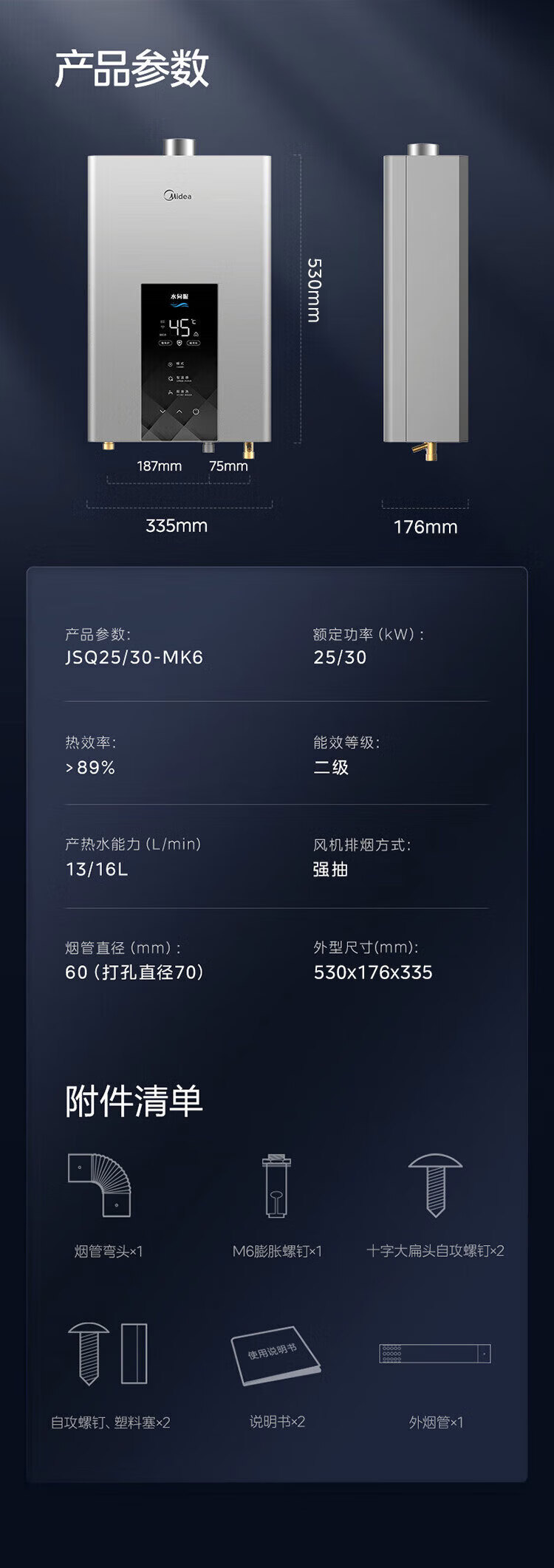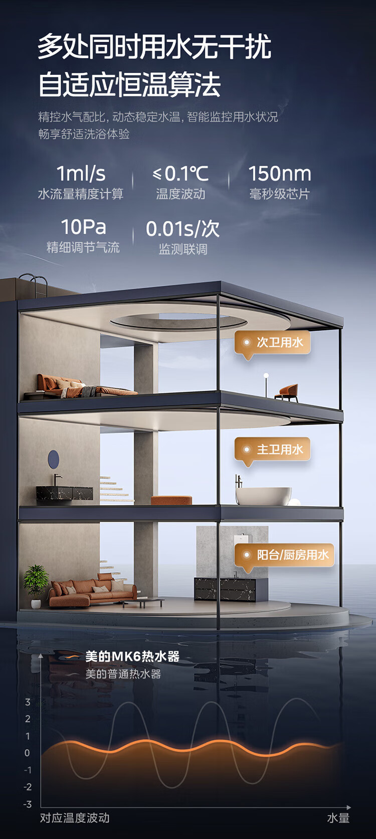 美的【水伺服MK6 16L】行业爆款 智控增压水伺服 恒温节能 一厨两卫 低水压启动 燃气热水器 上门安装