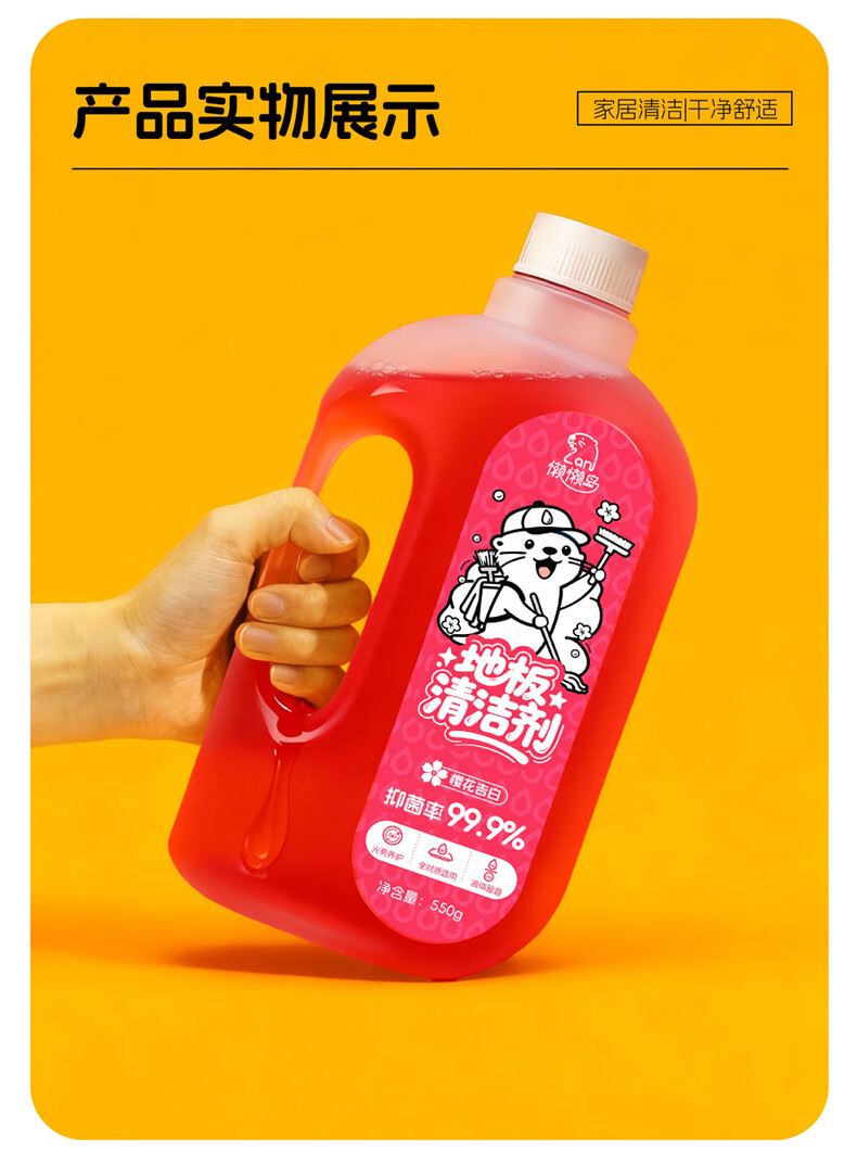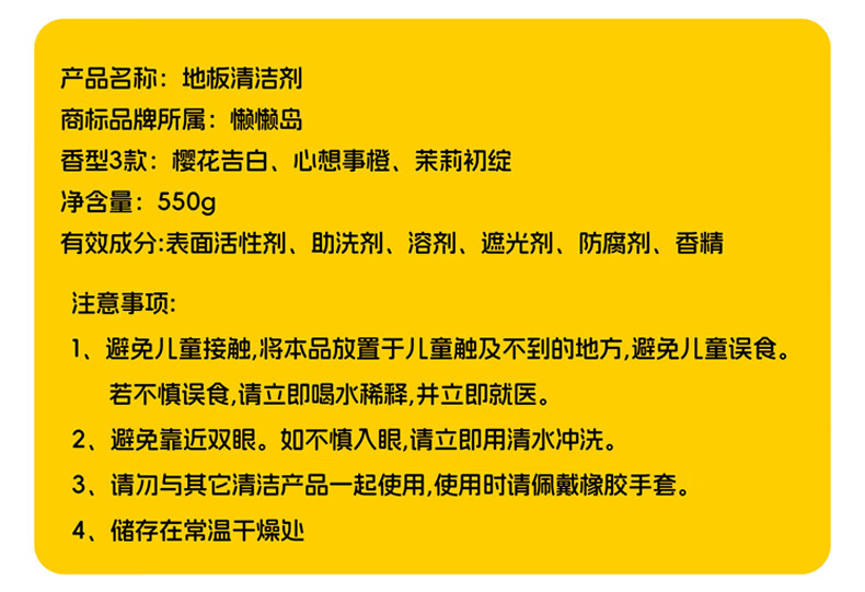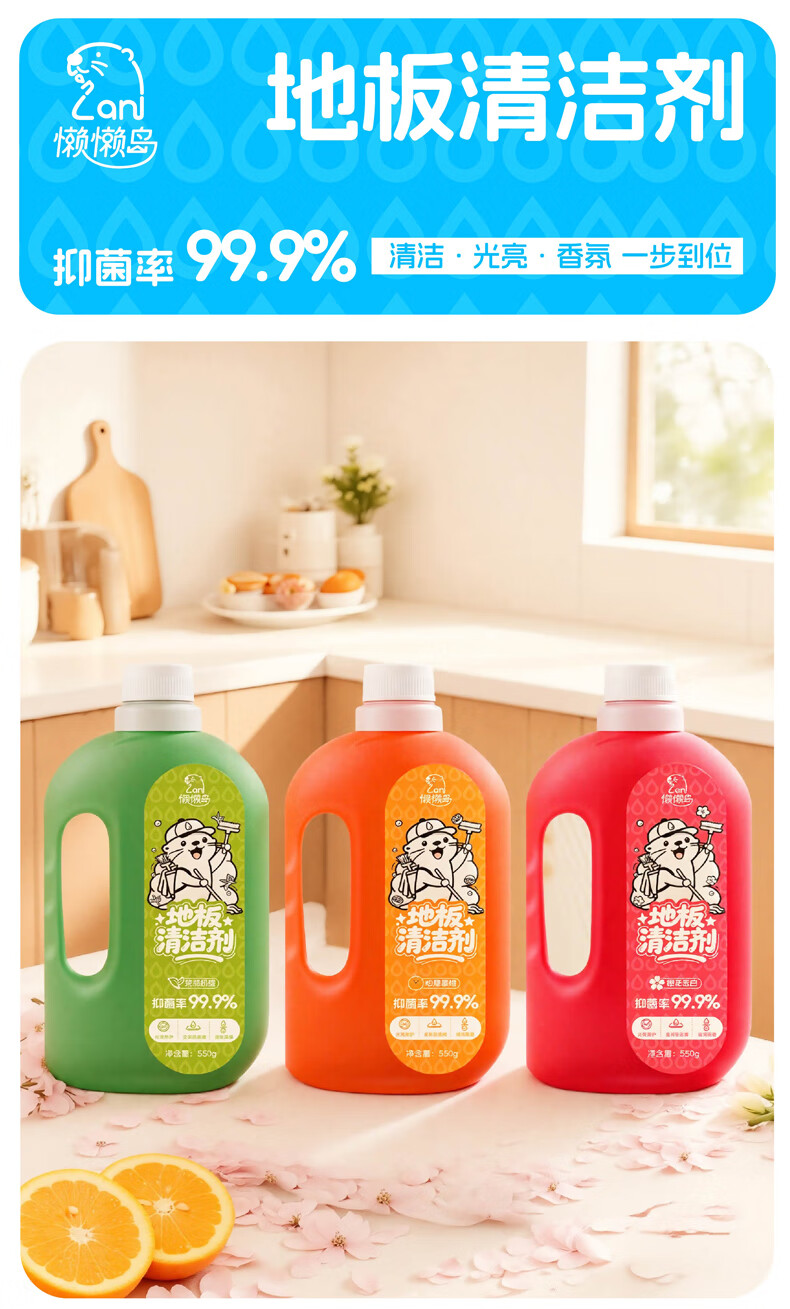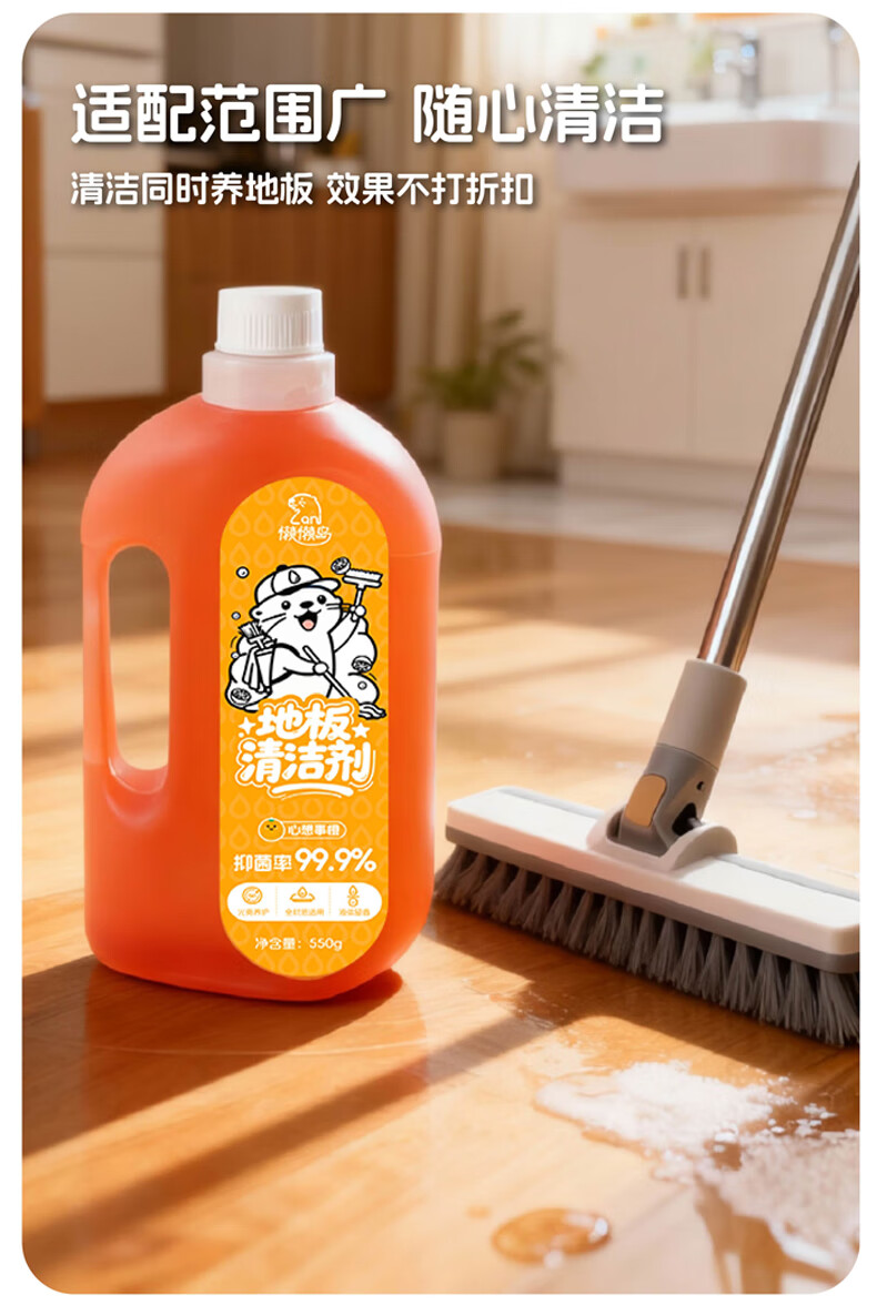 懒懒岛地板清洁剂拖地瓷砖木地板地砖扫地机器人洗地机去污杀菌 心想事橙子550g*1瓶