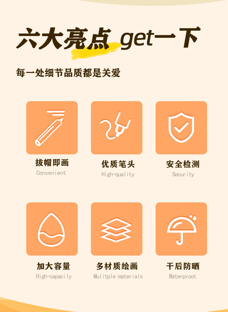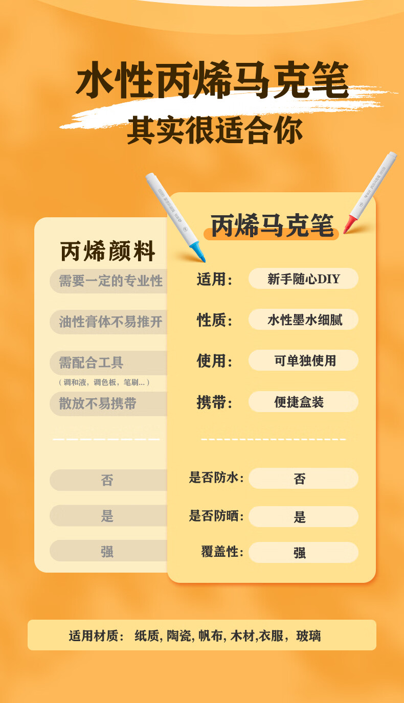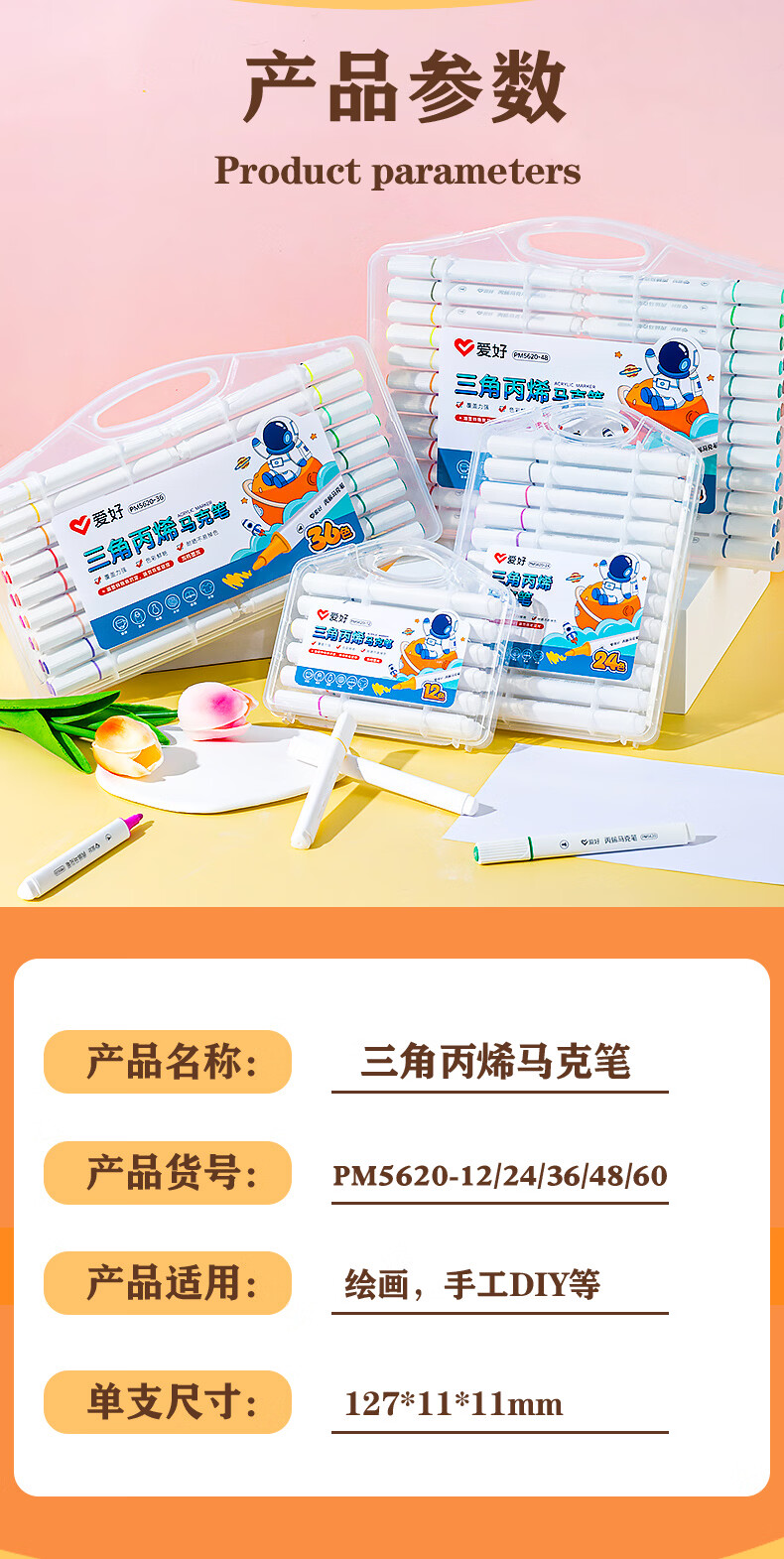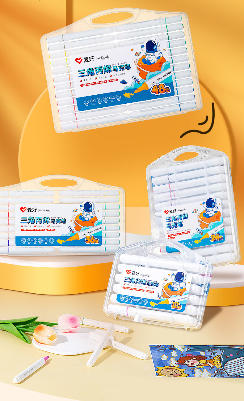 爱好(AIHAO)儿童丙烯马克笔48色可水洗学生彩笔手绘画笔学生大容量双头马克笔套装 【丙烯马克笔】12色