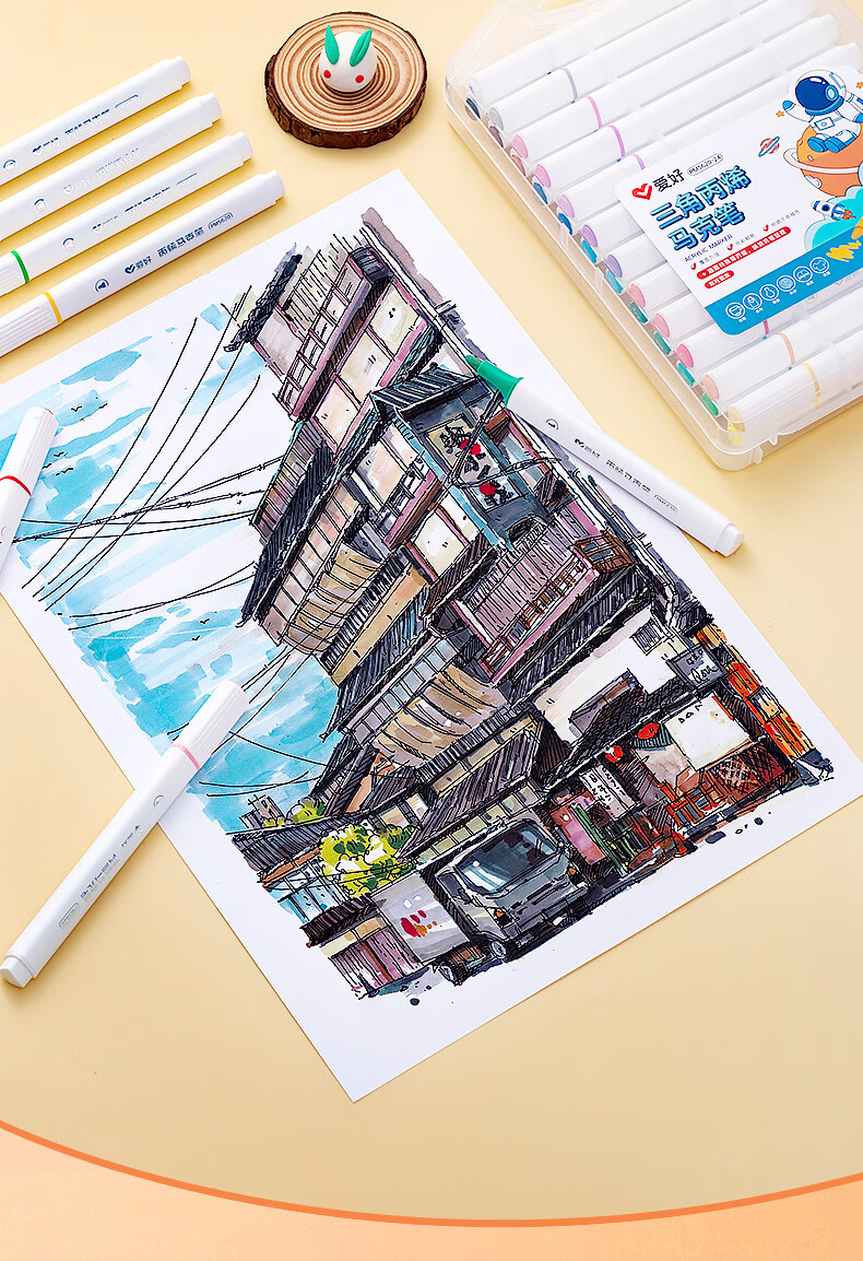 宝克(BAOKE)丙烯马克笔 水性画笔 美术生专用手绘画笔 DIY、涂鸦、手账、笔记、贺卡多功能填色 MP2945A-24色 丙烯水性马克笔 彩绘套装
