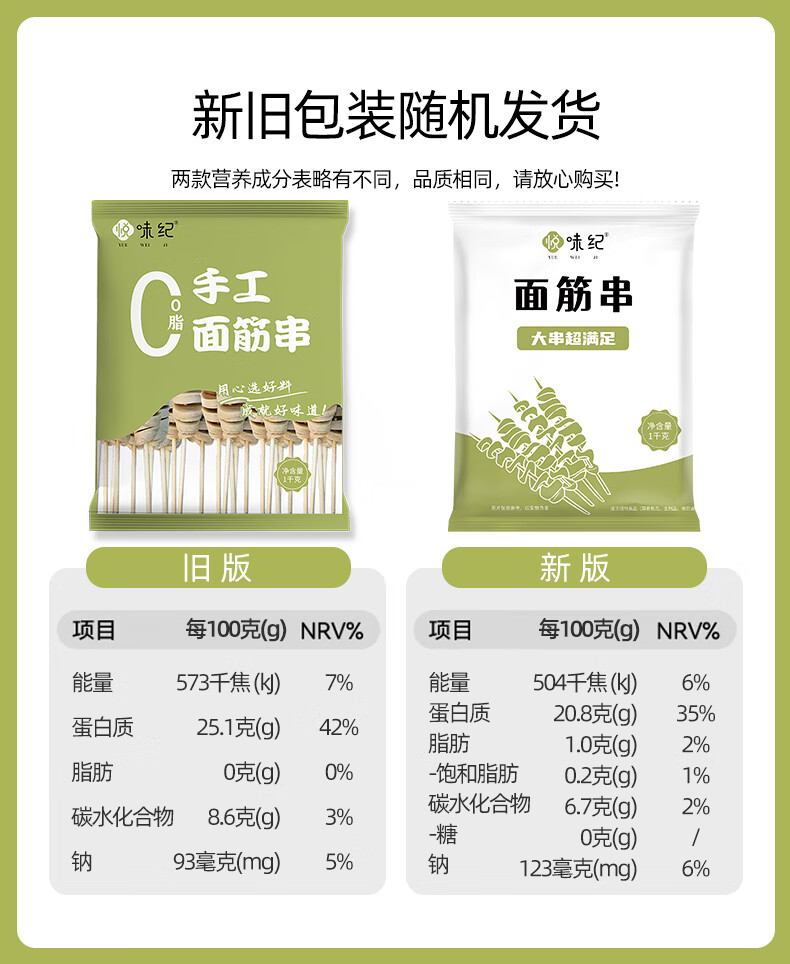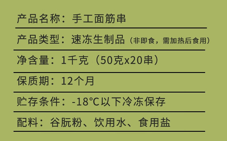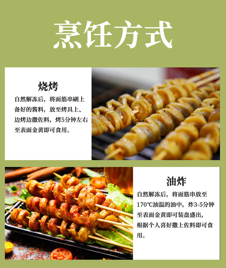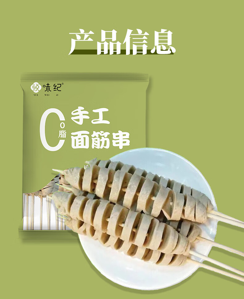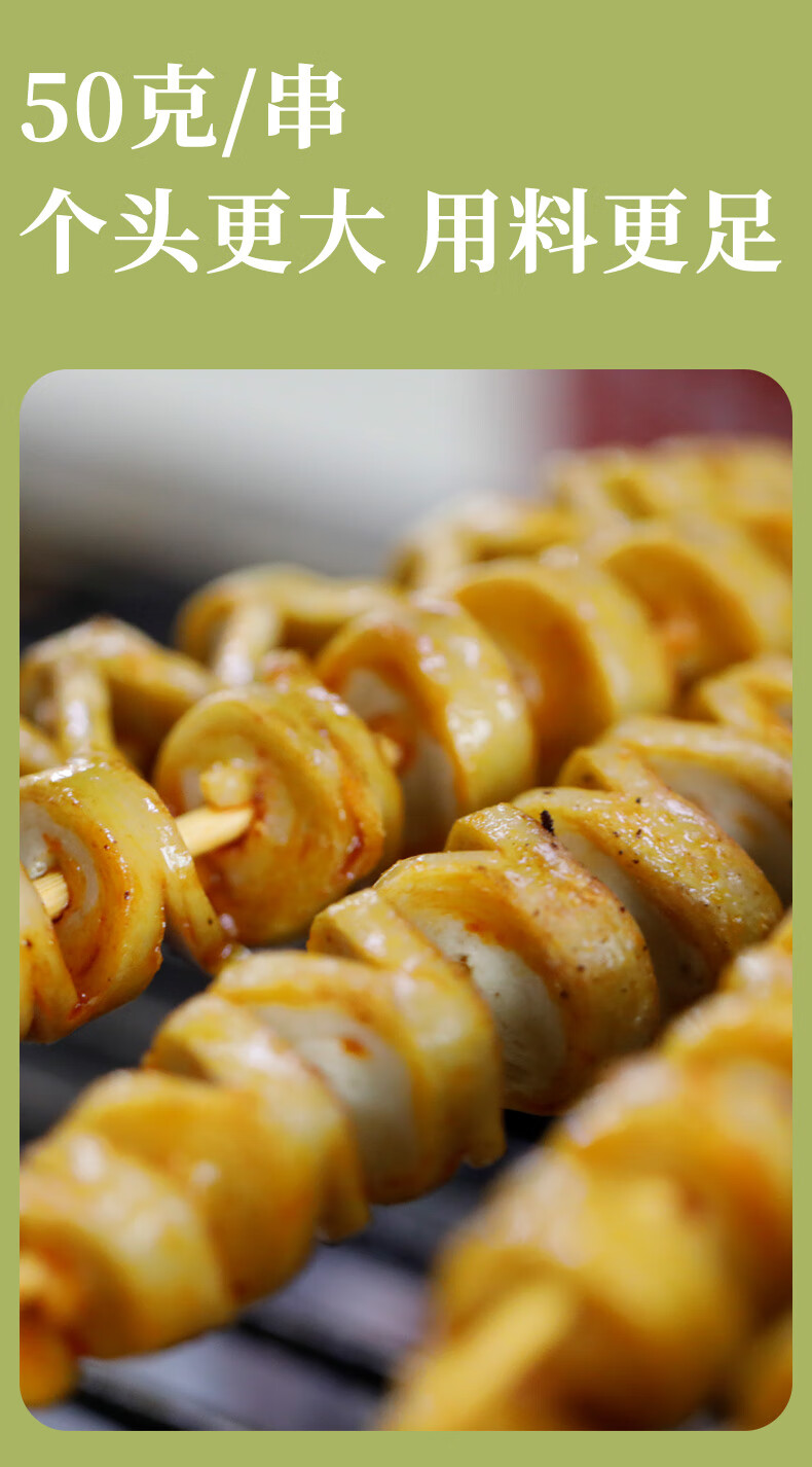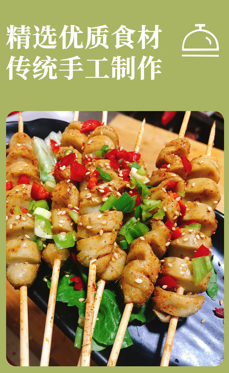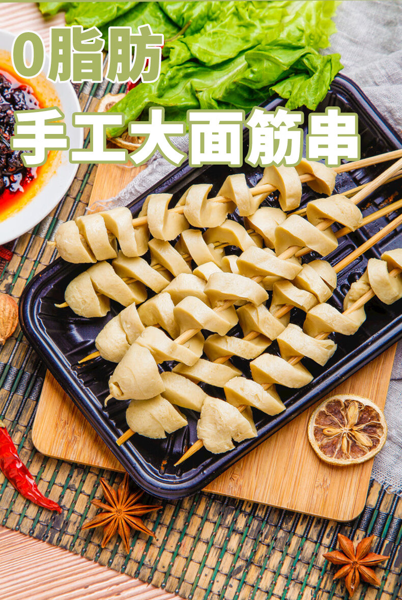 悦味纪 手工大面筋串1kg共20支 低脂竹签烤串 露营烧烤食材 半成品速食