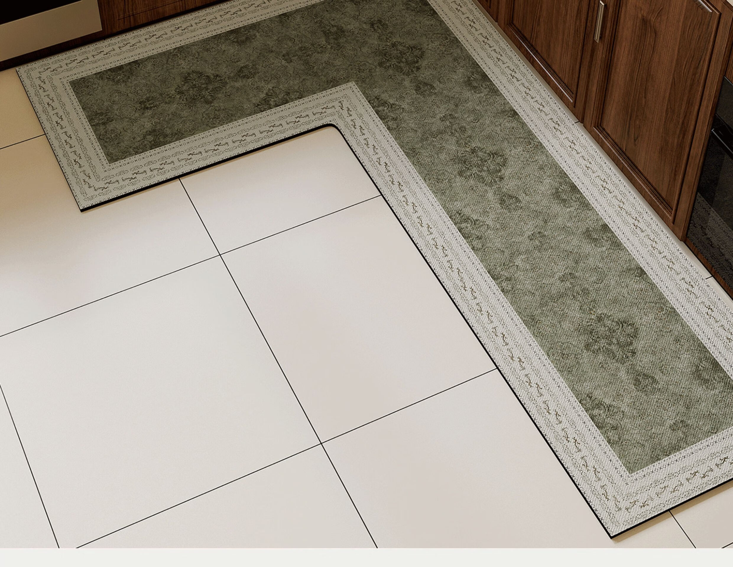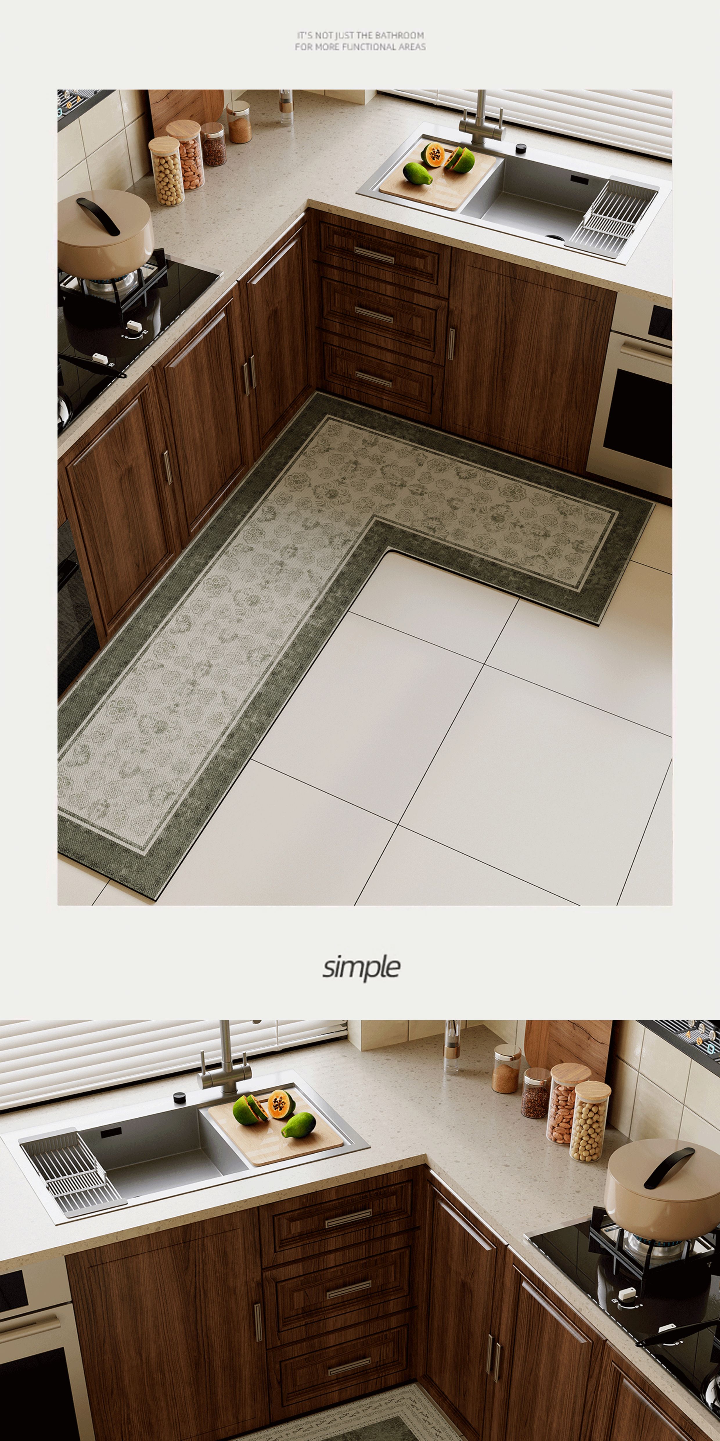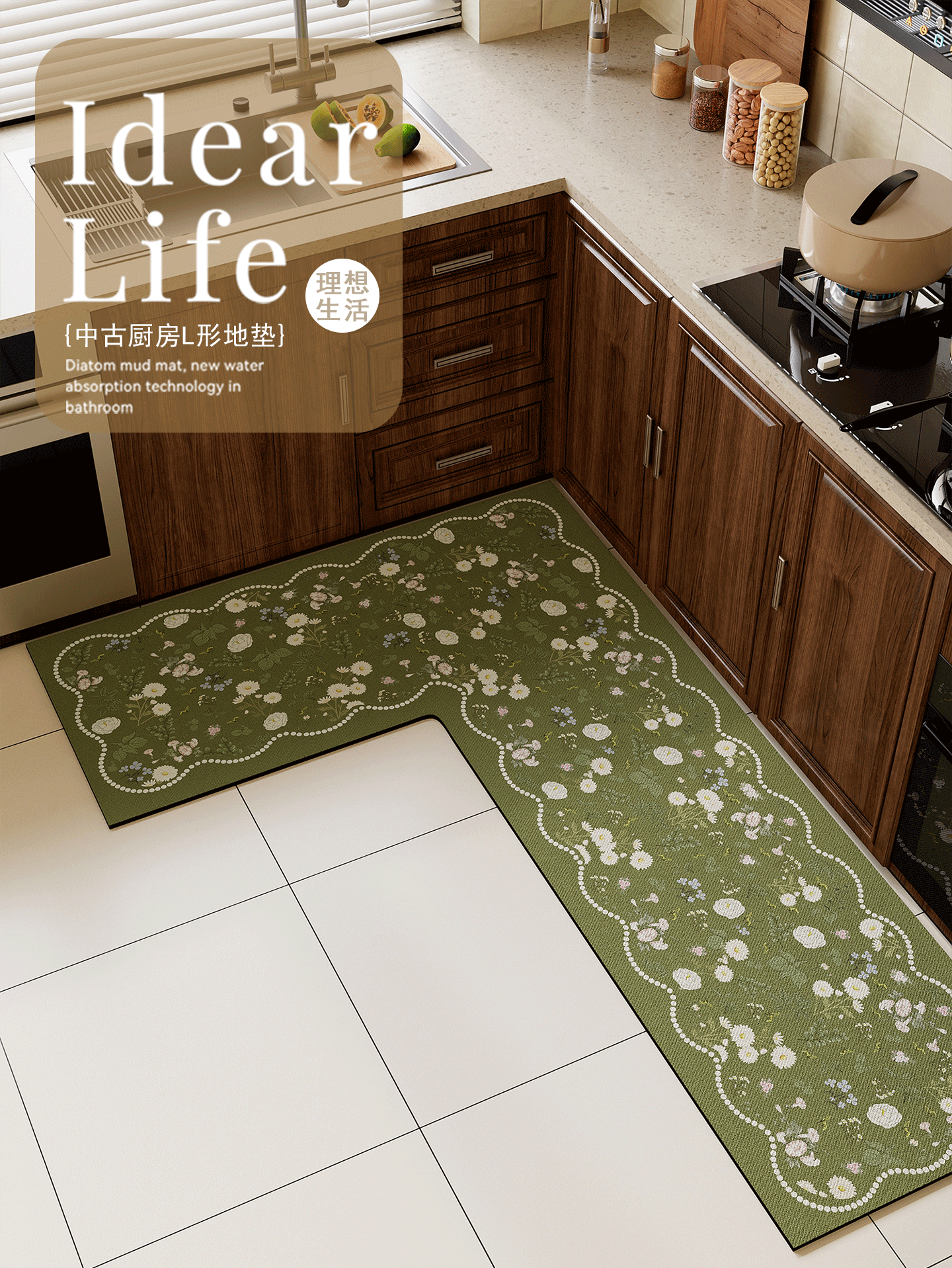情更浓L型一体高端厨房专用地垫防滑防油中古风硅藻泥地毯灶台吸水脚垫 N亚亚右L 80*120*45CM