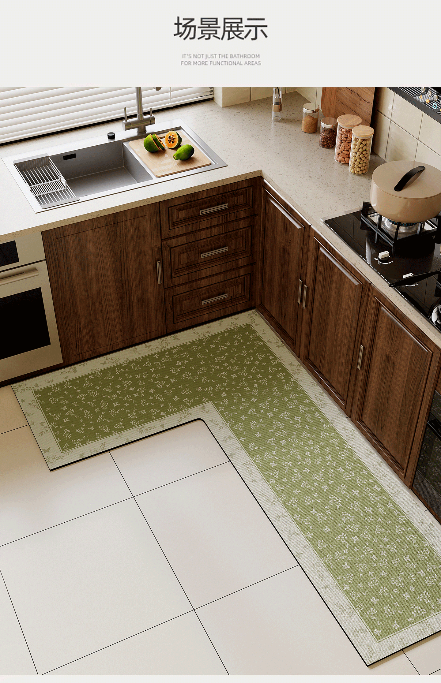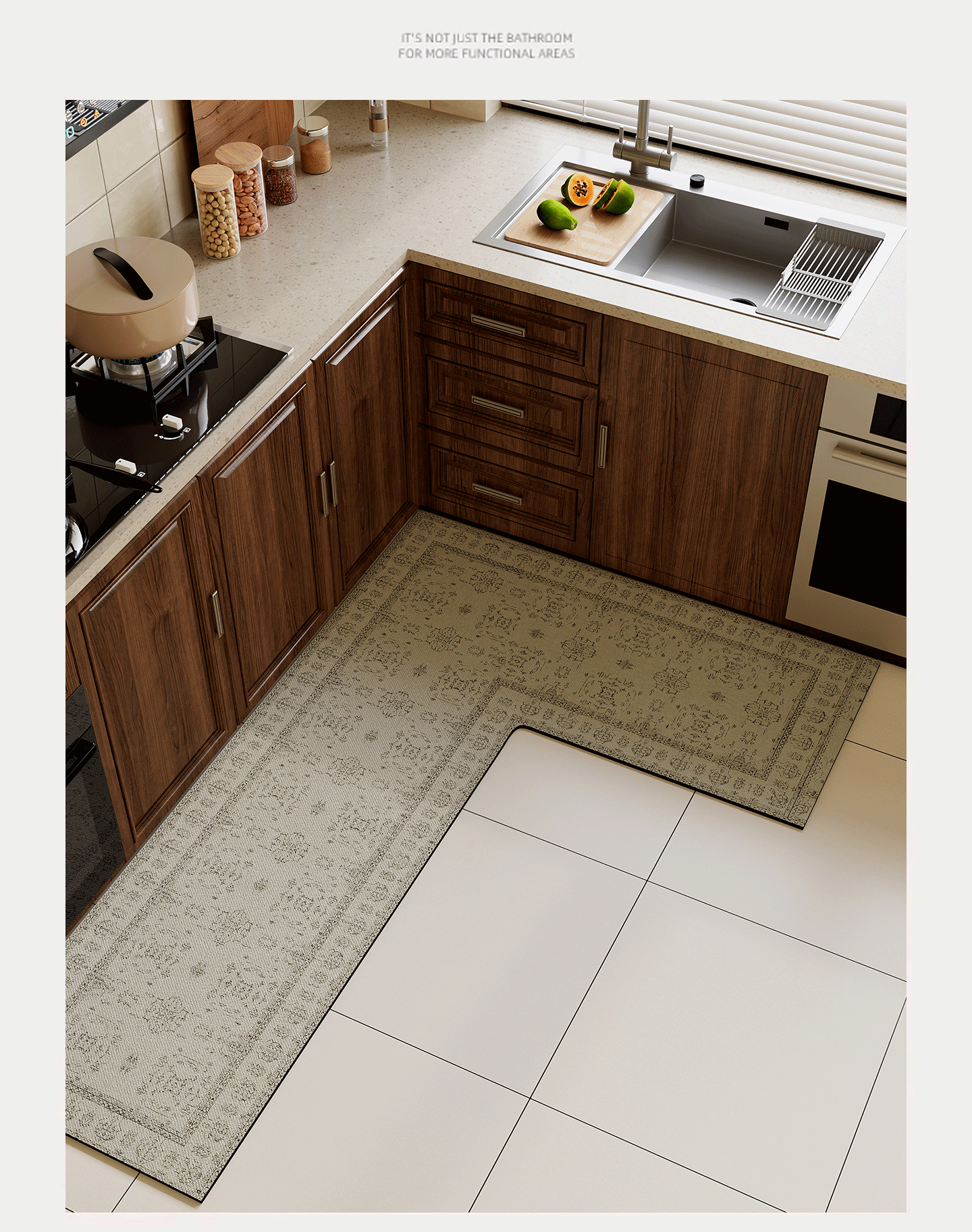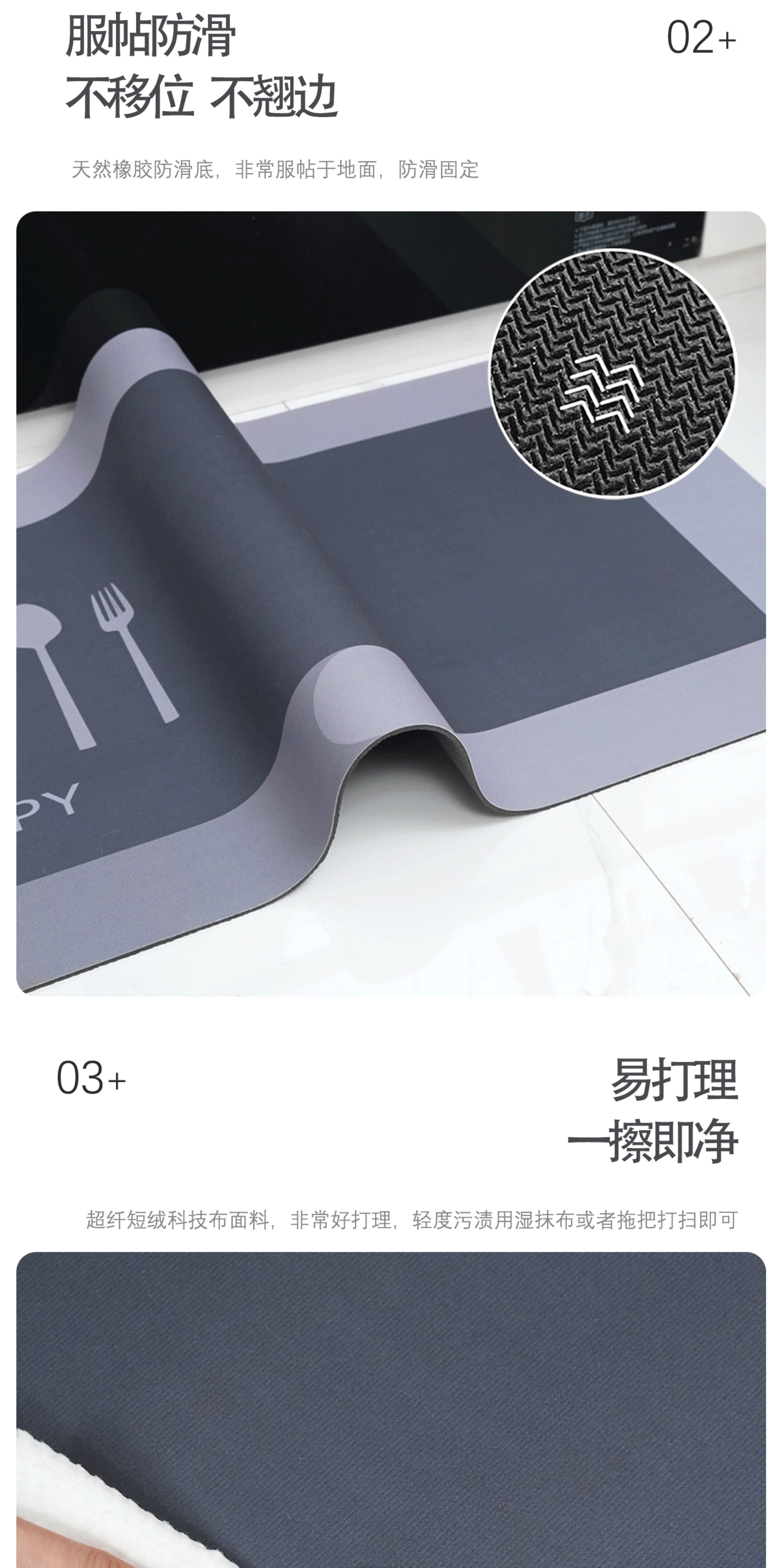 情更浓L型一体高端厨房专用地垫防滑防油中古风硅藻泥地毯灶台吸水脚垫 N亚亚右L 80*120*45CM
