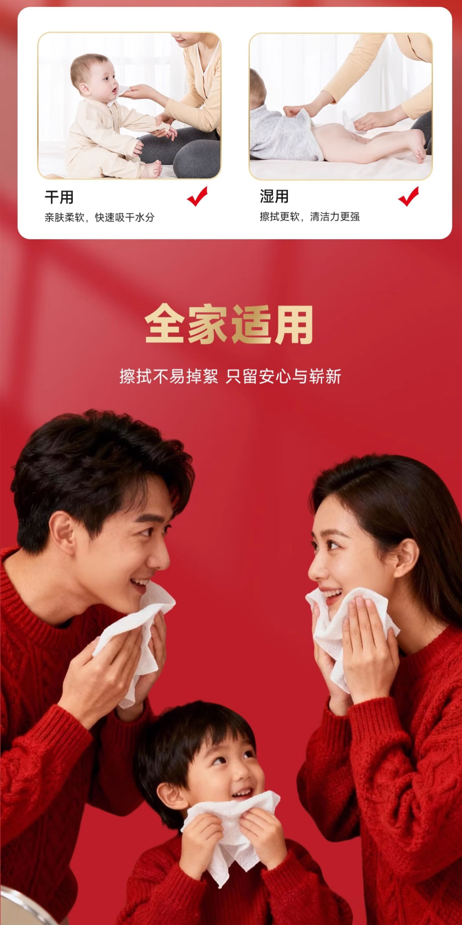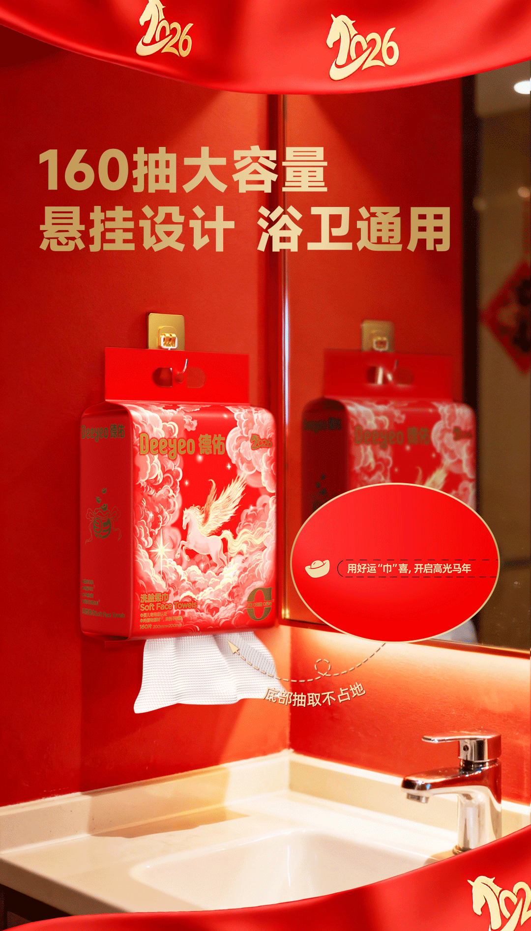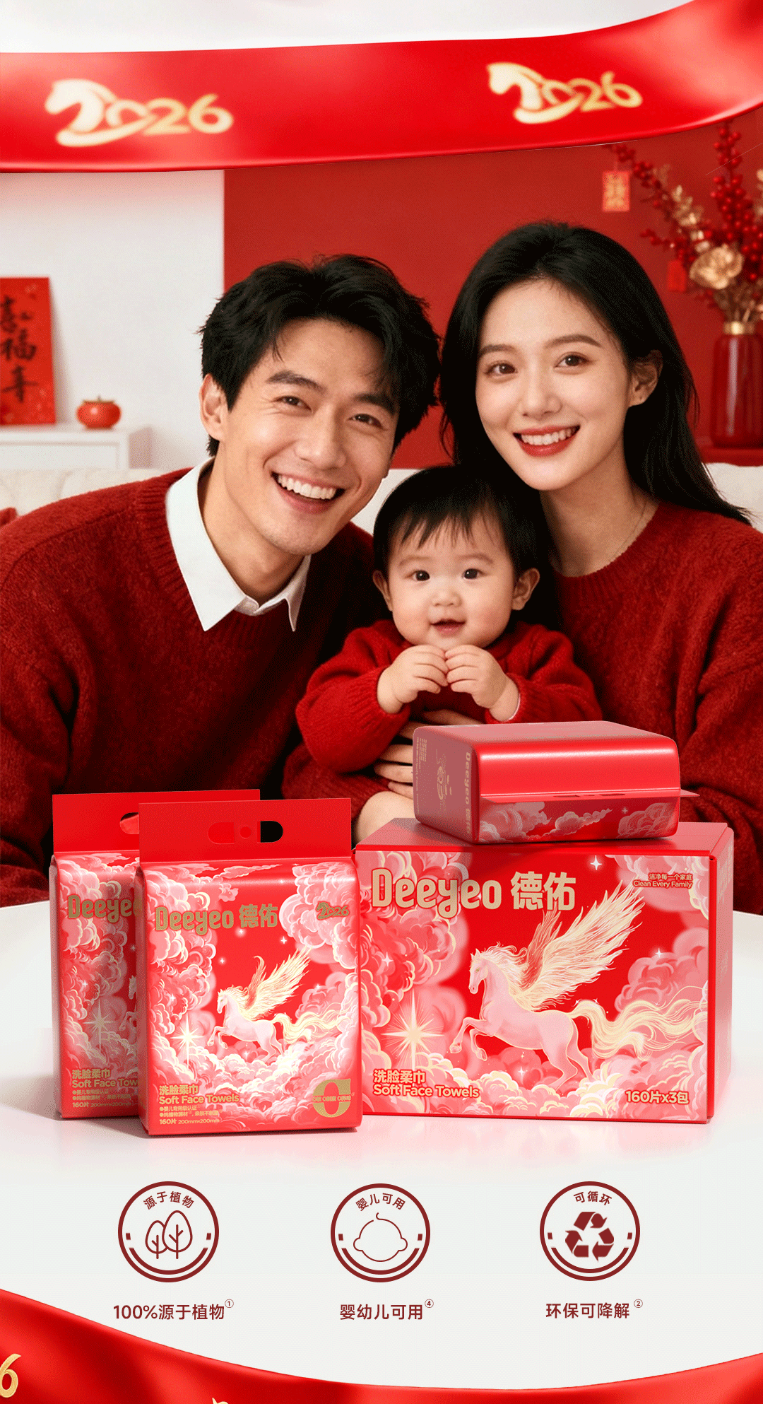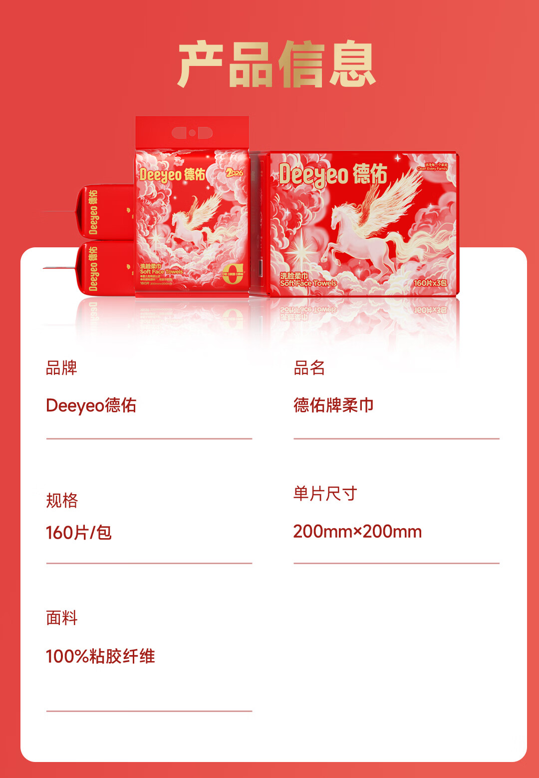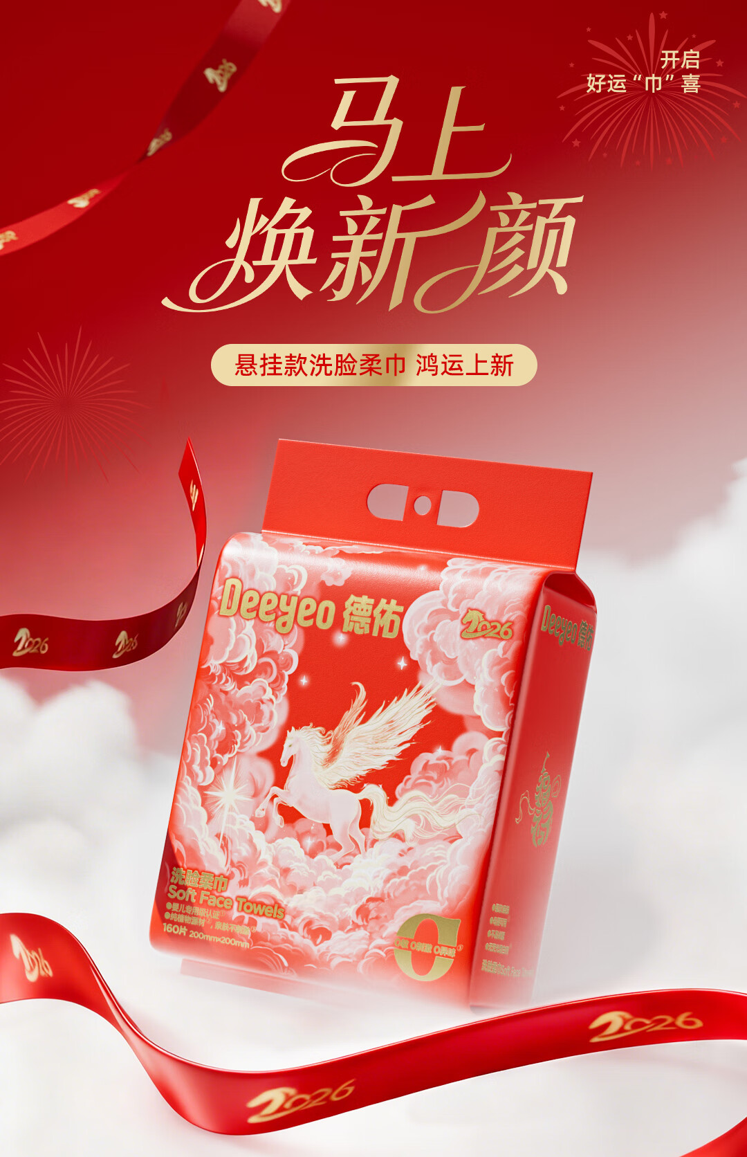 德佑洗脸巾悬挂加大加厚一次性棉柔洁面绵柔巾新年限定款160抽*3提