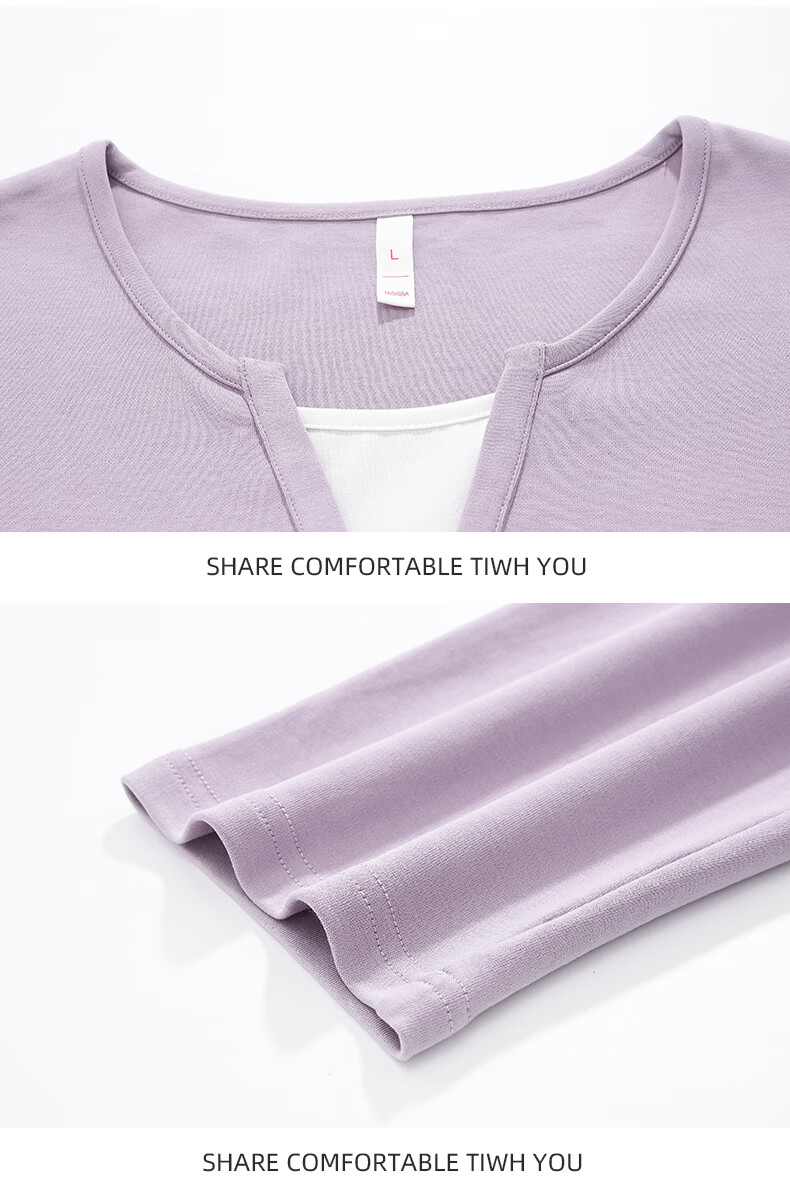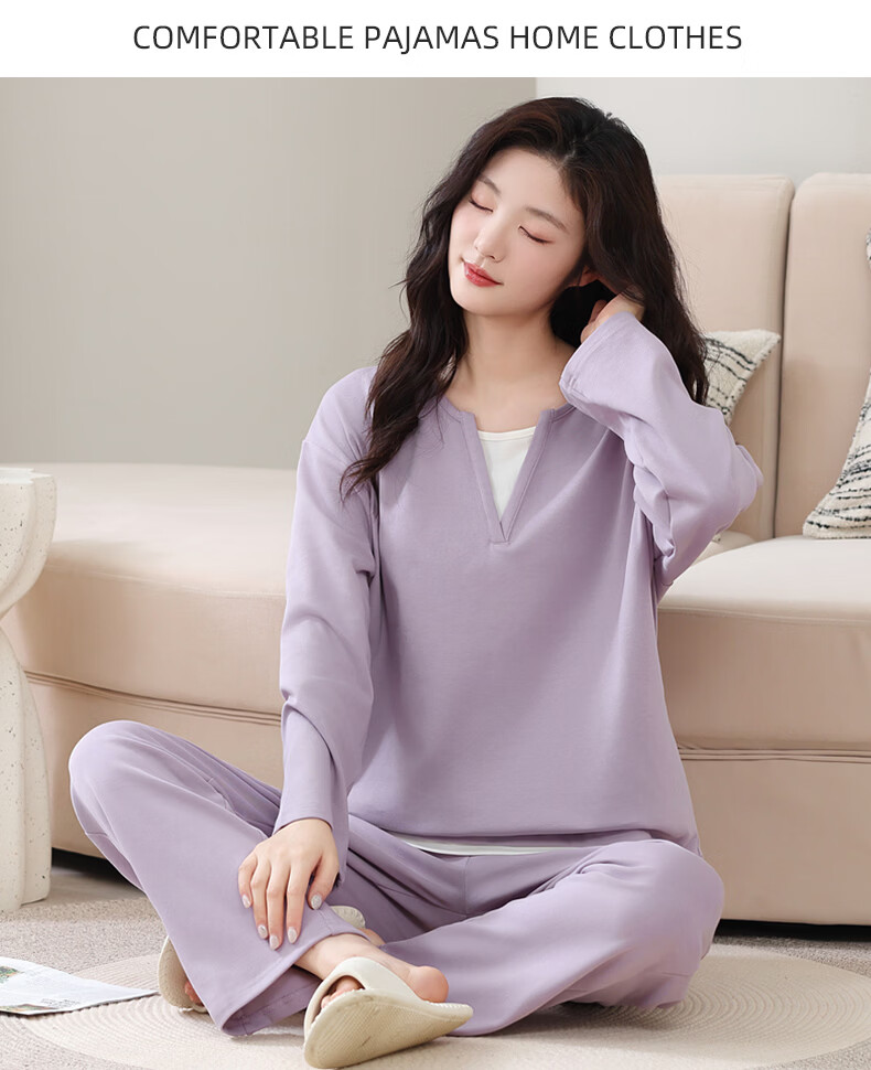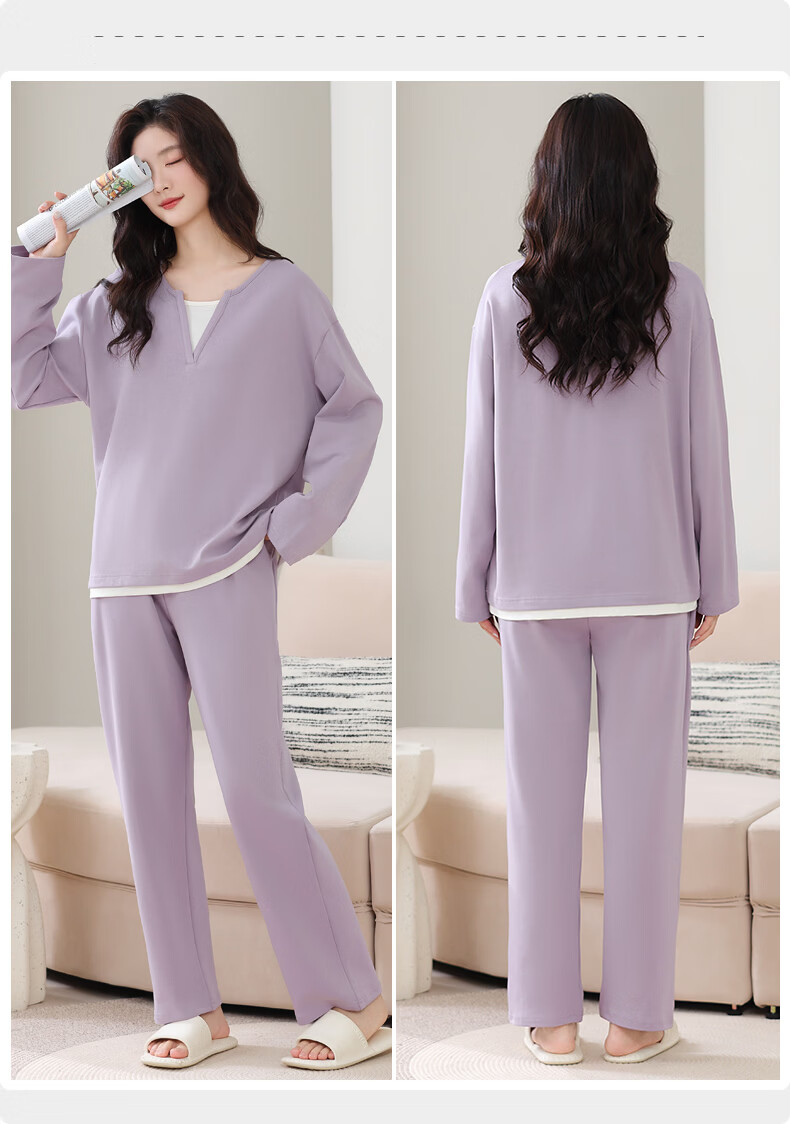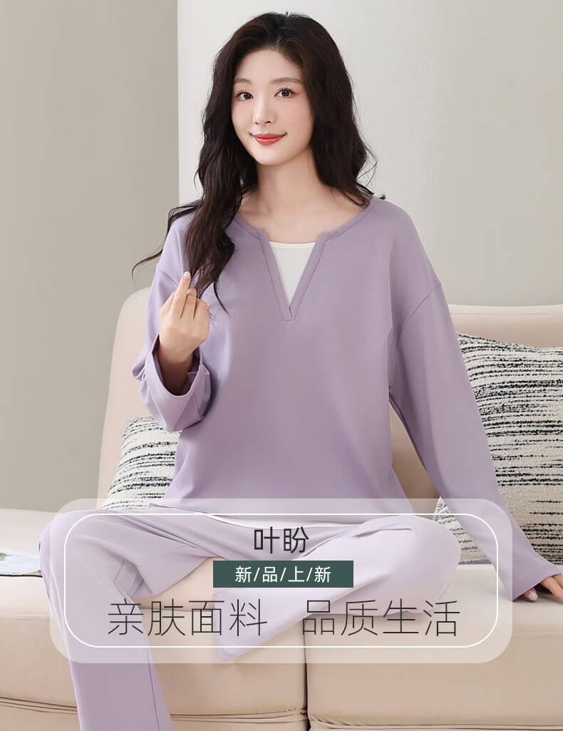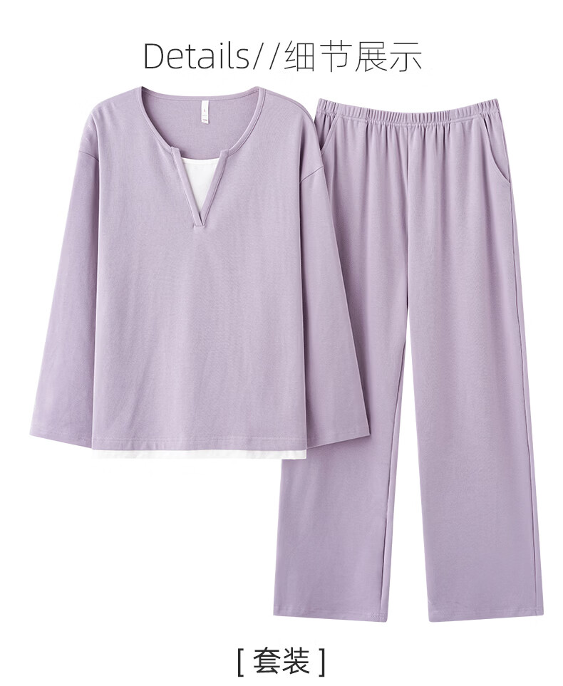 叶盼(yepan)【柔软】莱卡纯棉睡衣女士春秋季假两件宽松大码高级感家居服套装 7605-芋紫 M (160) :建议80-100斤穿着
