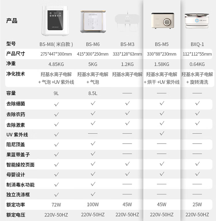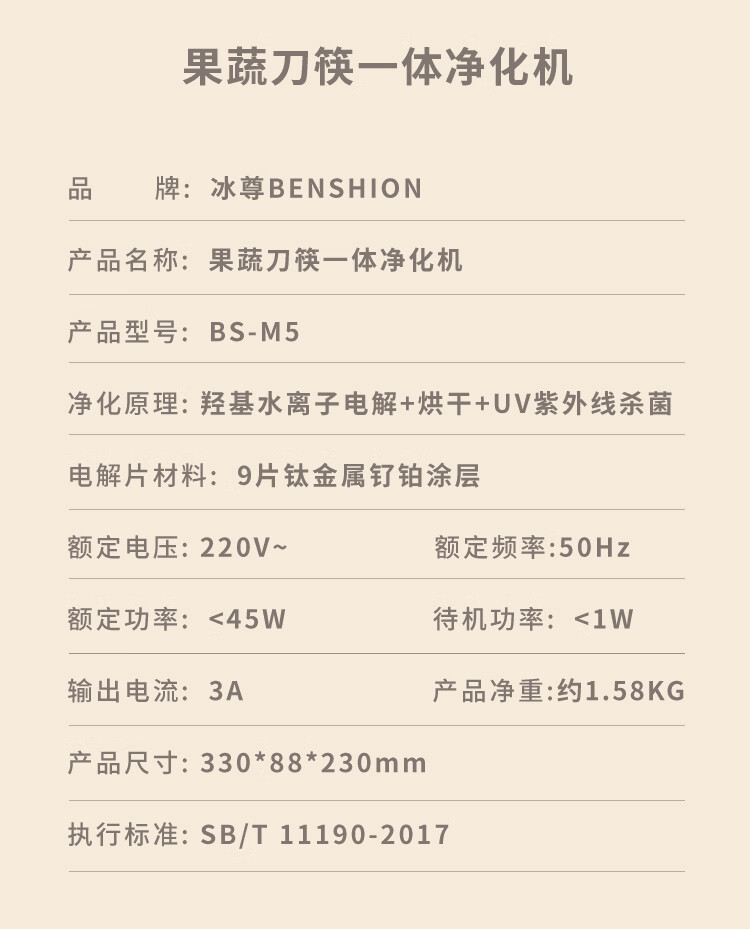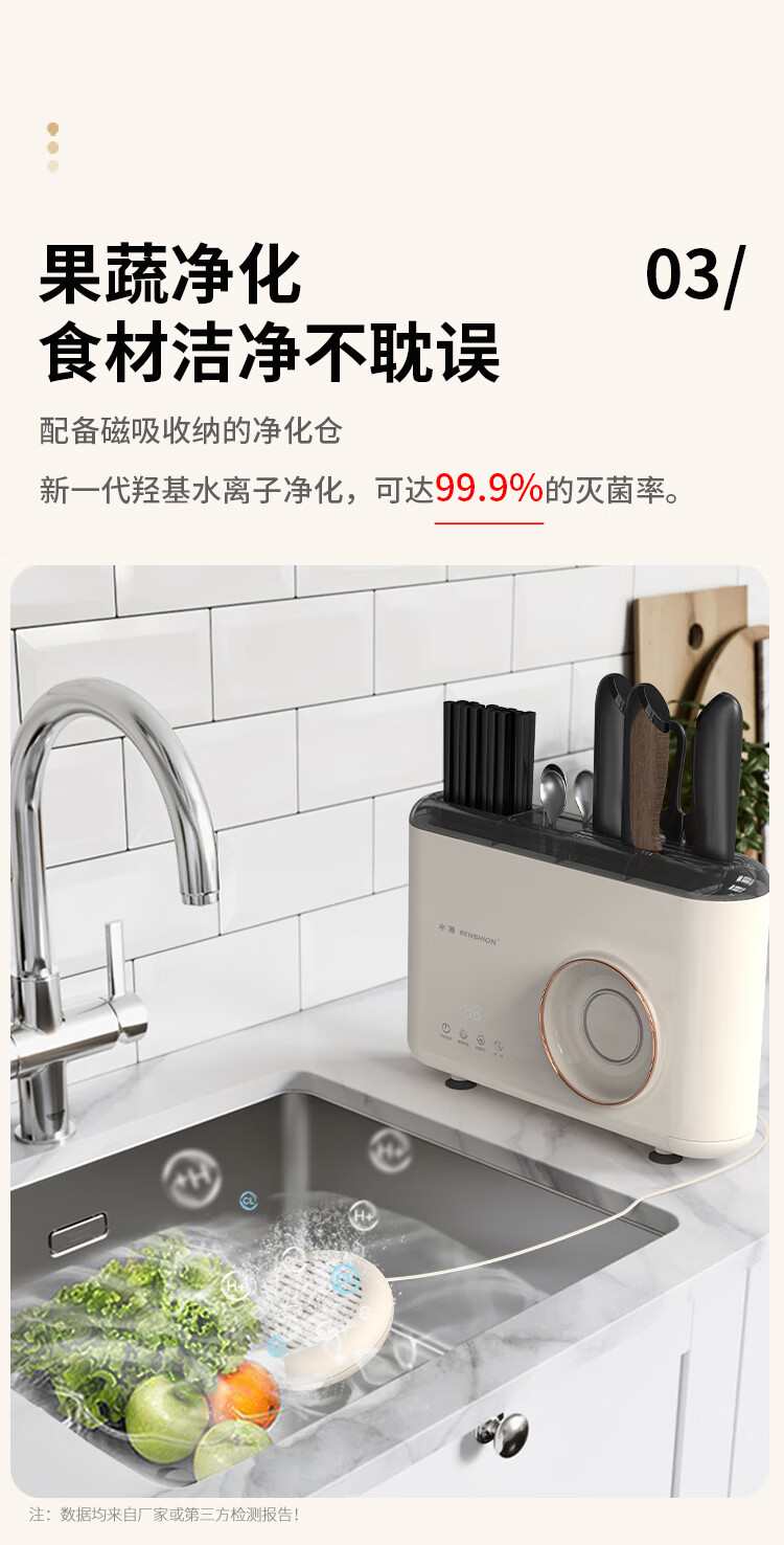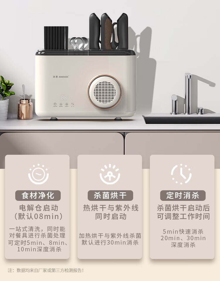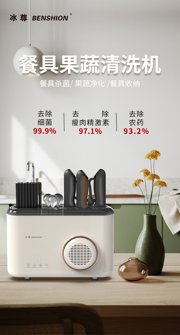 冰尊(BENSHION)果蔬清洗机家用洗菜机刀筷餐具烘干UV紫外线除菌99%果蔬解毒机食材净化器M5 机器标配