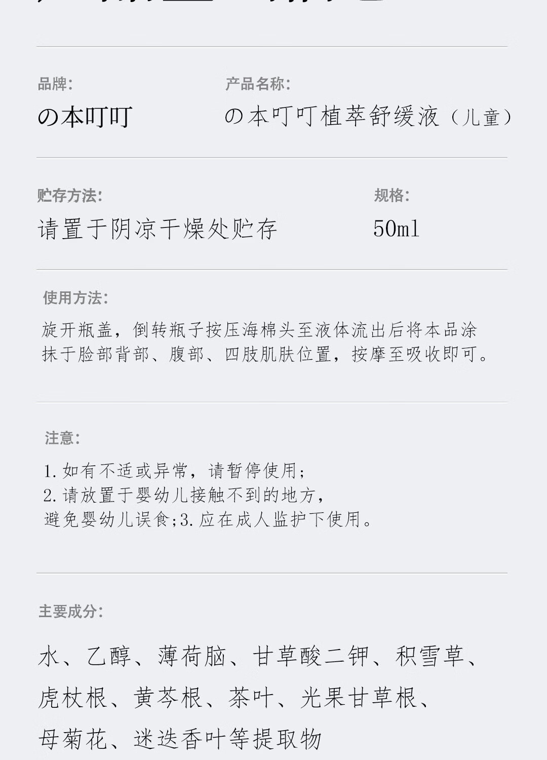 本叮叮儿童清凉植萃舒缓液叮咬舒缓消红液儿童宝宝舒缓 儿童装植萃舒缓液