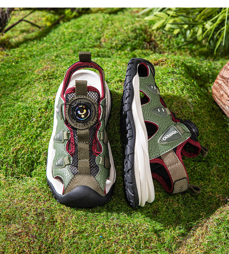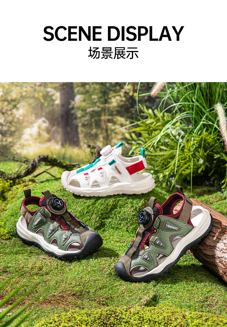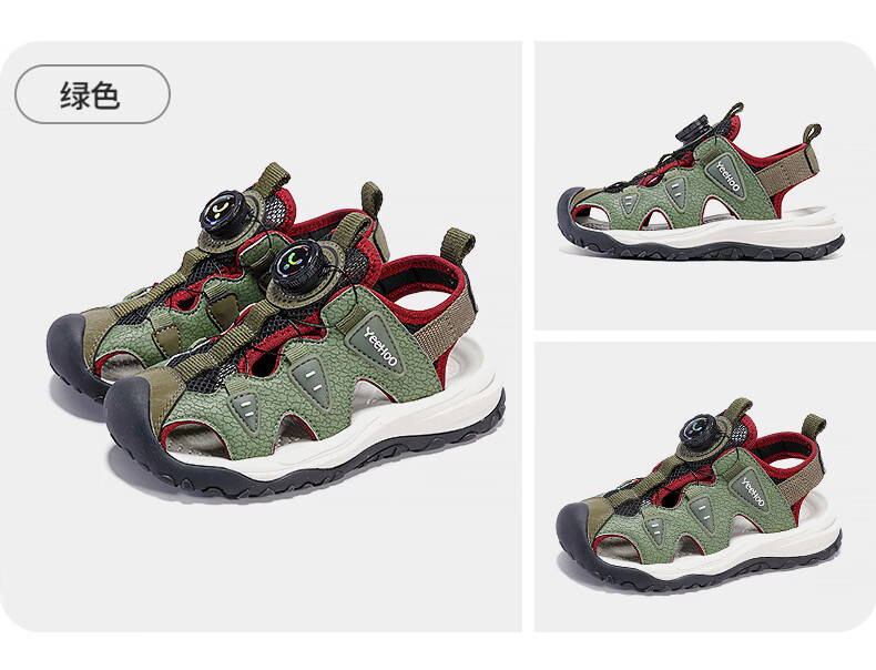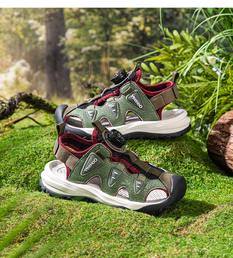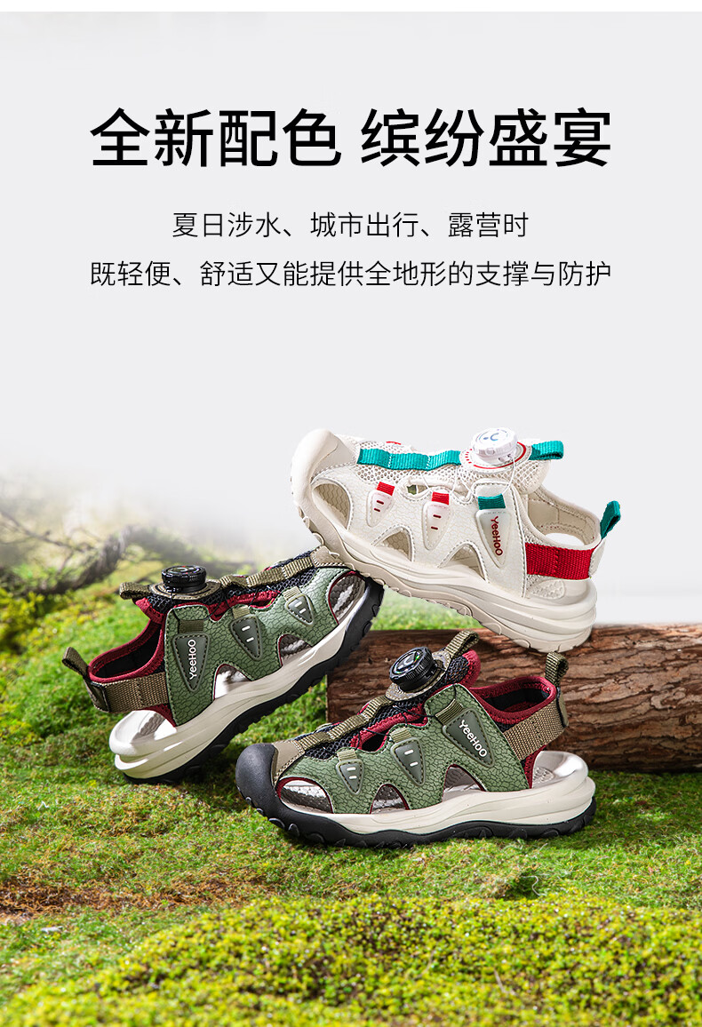 YEEHOO英氏儿童运动凉鞋包头夏款2026新款防滑女童朔溪鞋涉水男童沙滩鞋 绿色 31