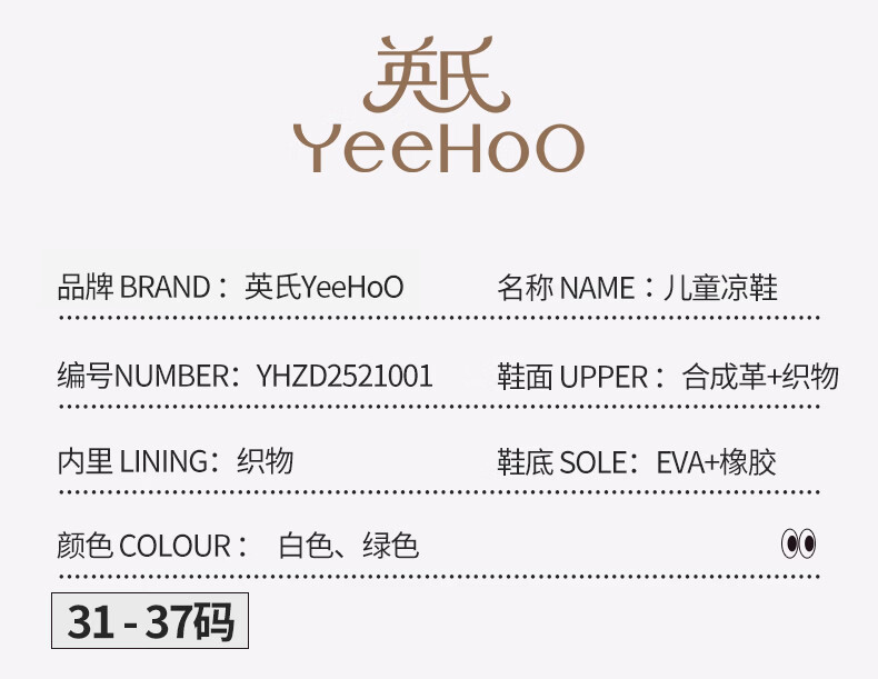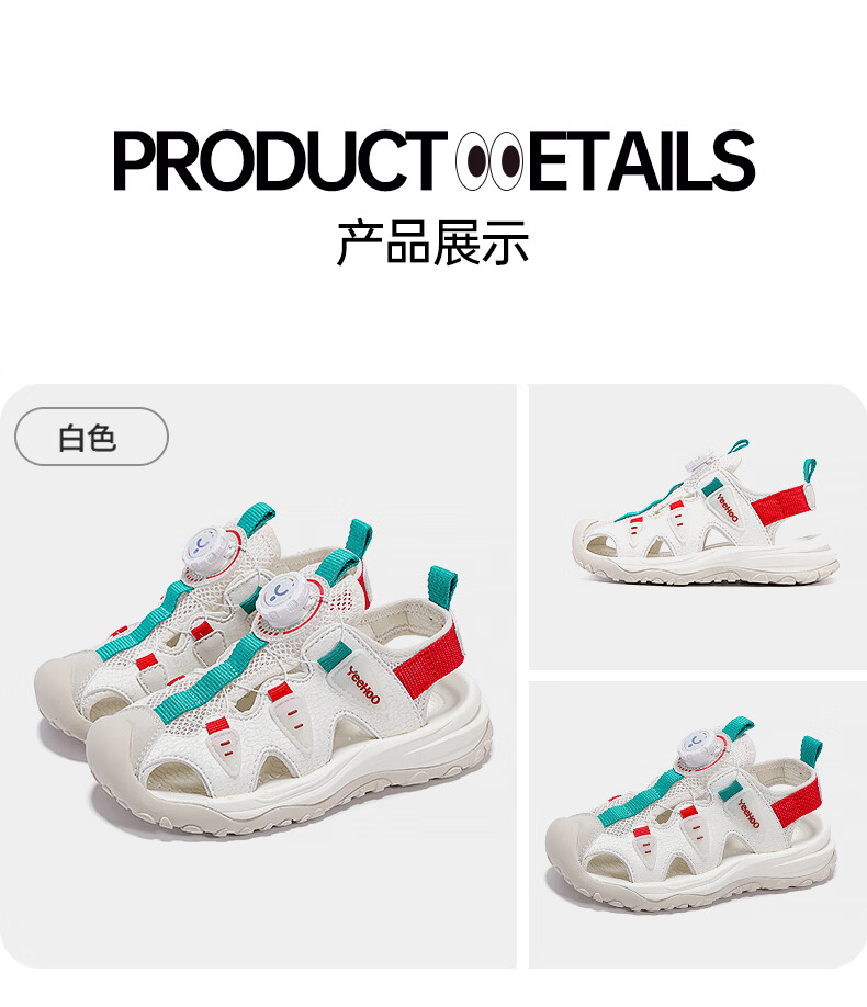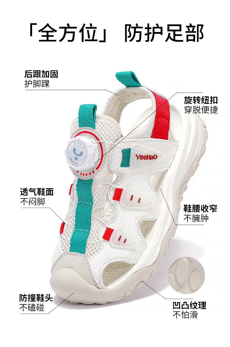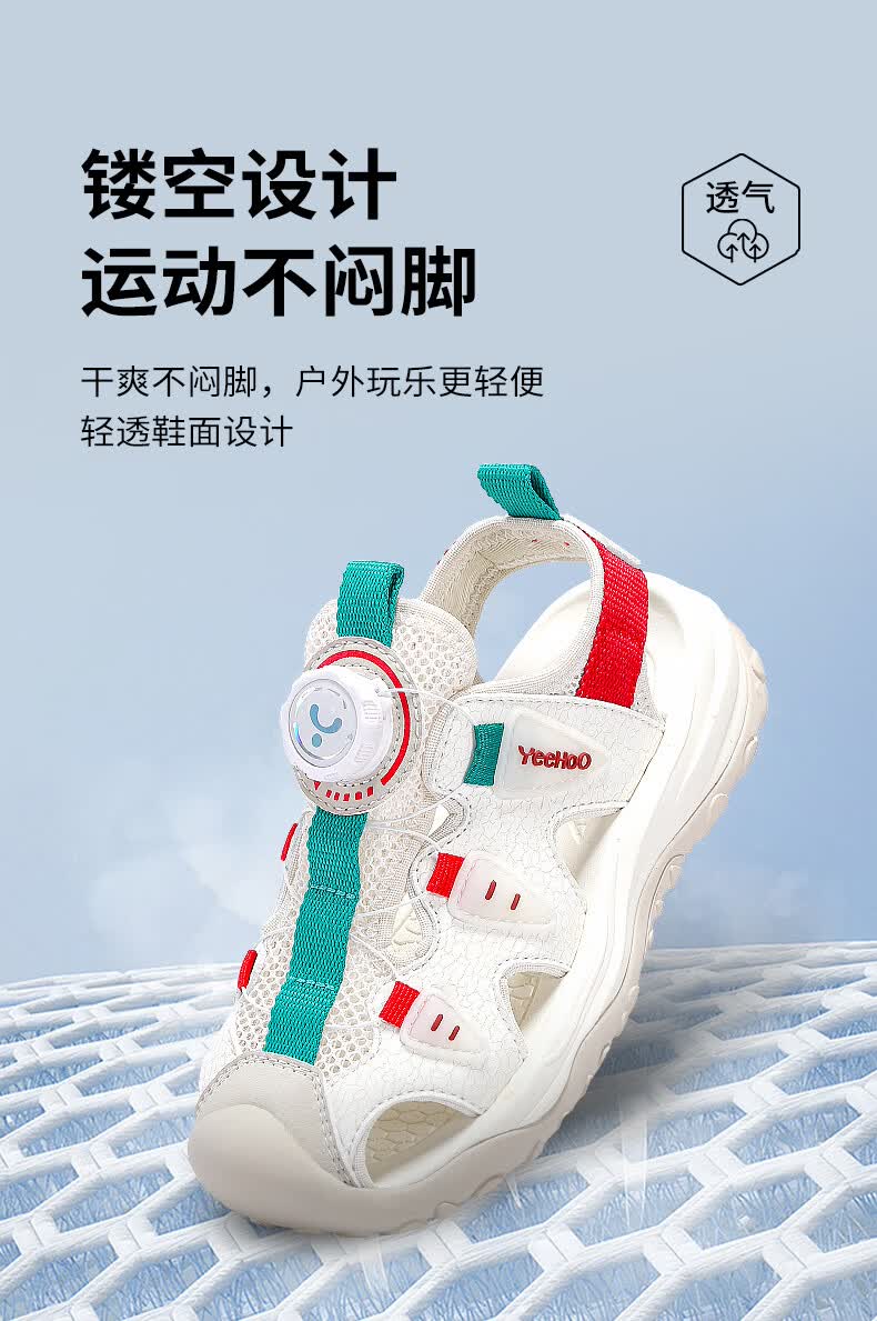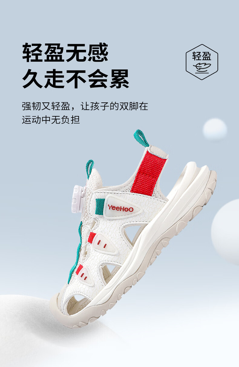 YEEHOO英氏儿童运动凉鞋包头夏款2026新款防滑女童朔溪鞋涉水男童沙滩鞋 绿色 31