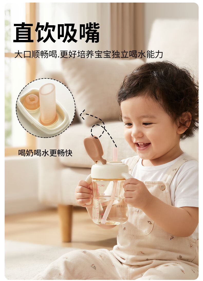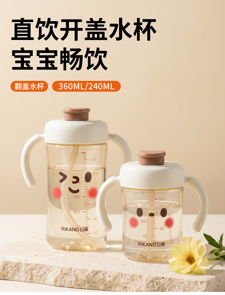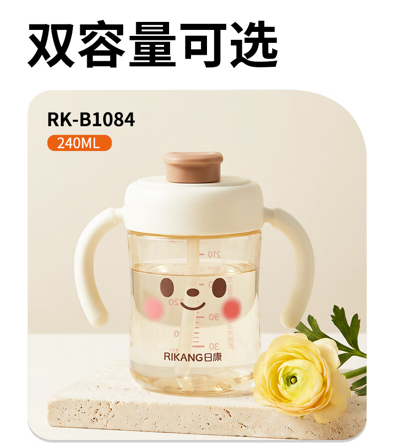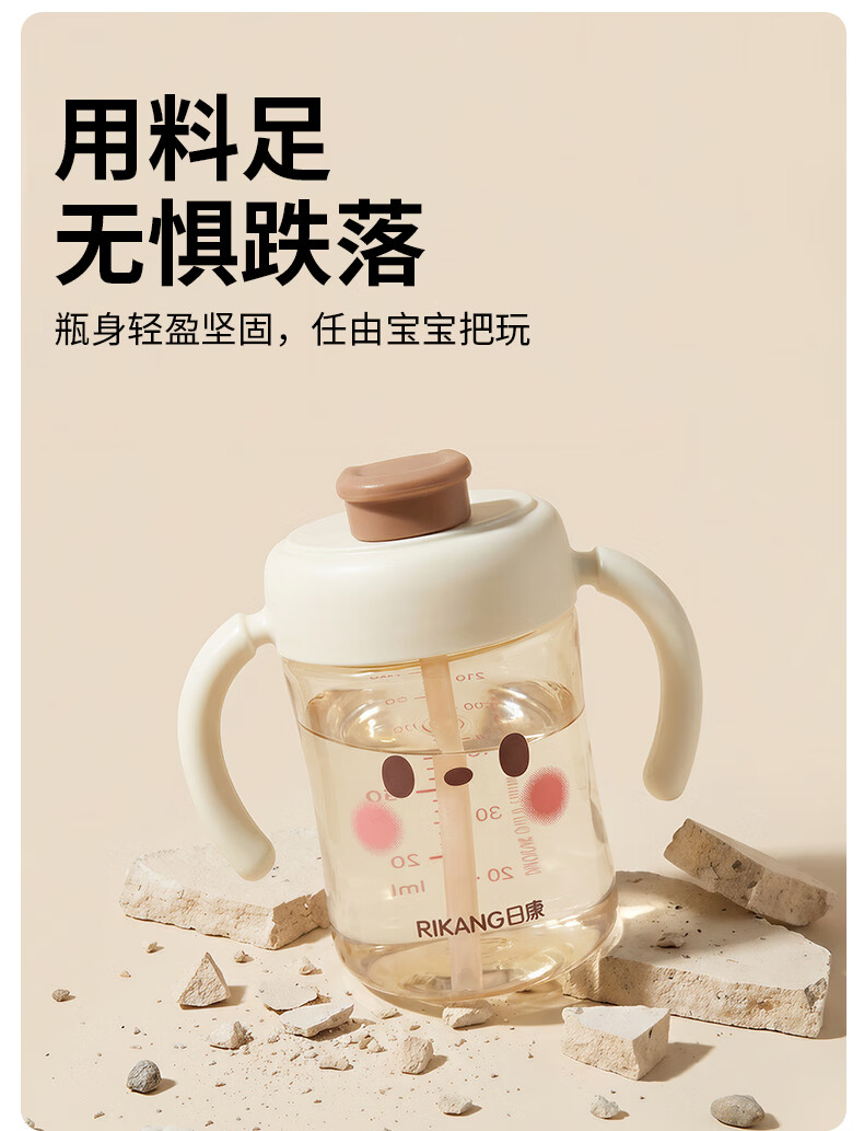 日康(rikang)直饮杯 PPSU奶瓶1岁+以上儿童水杯牛奶杯 【240ML】B1084白色直饮杯