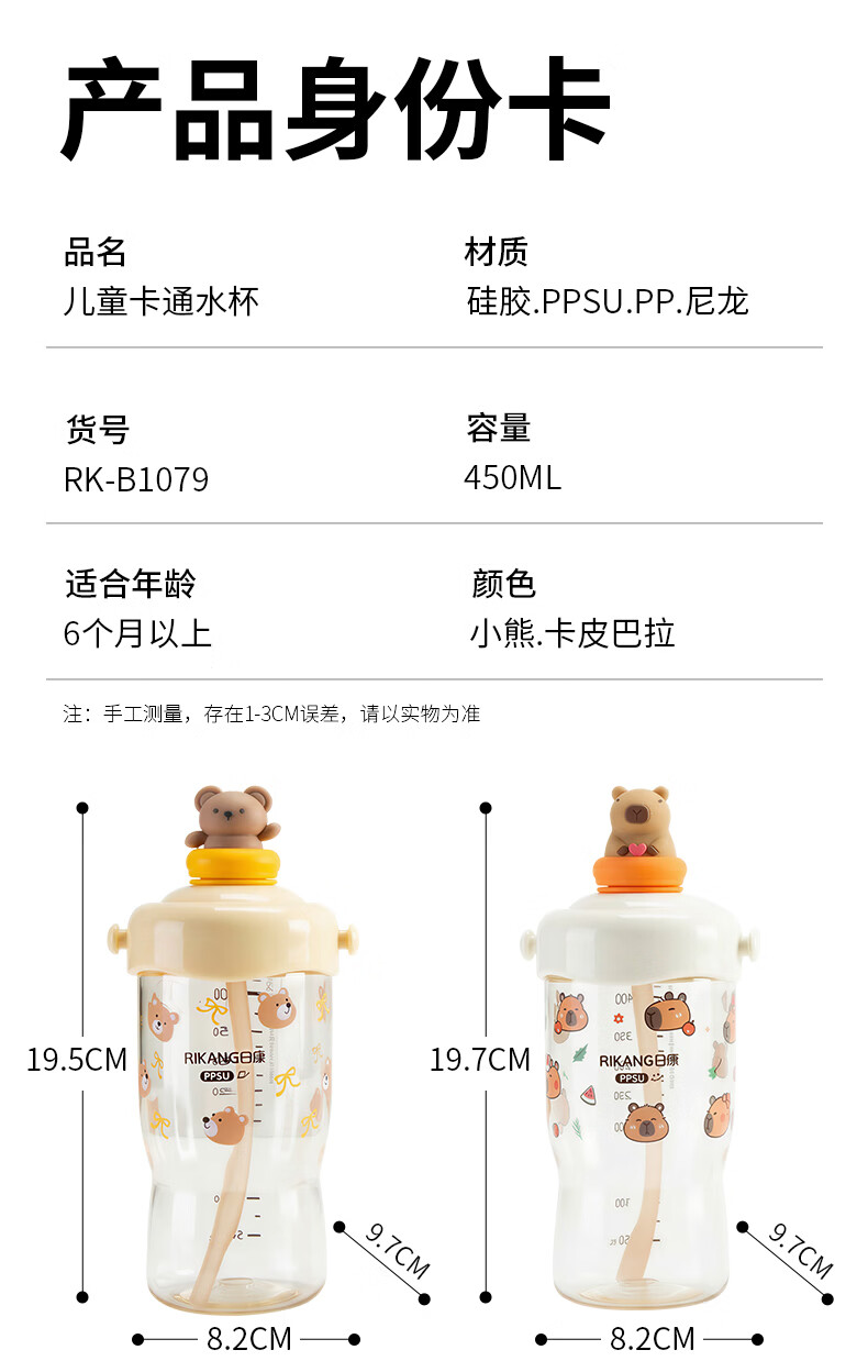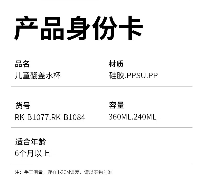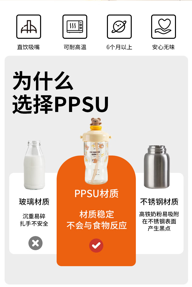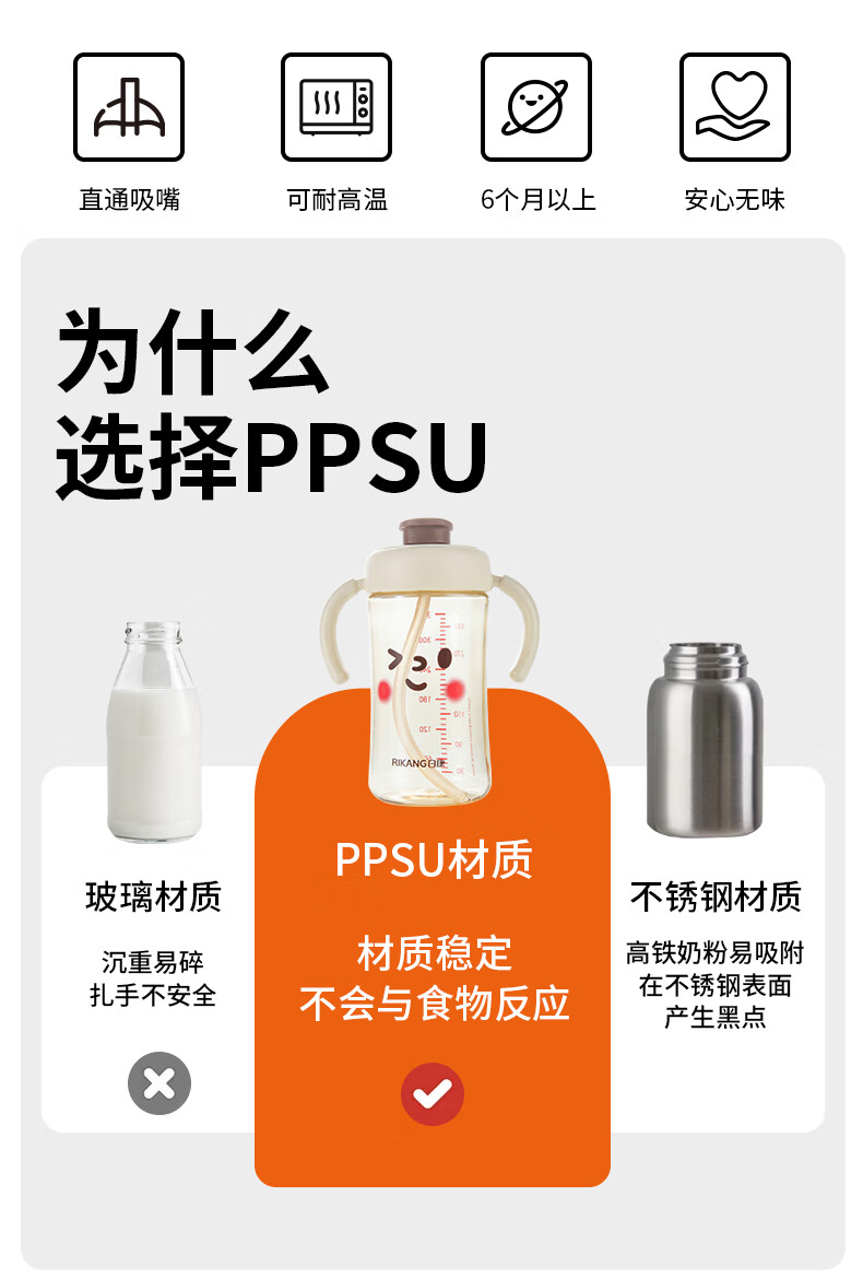 日康(rikang)直饮杯 PPSU奶瓶1岁+以上儿童水杯牛奶杯 【240ML】B1084白色直饮杯