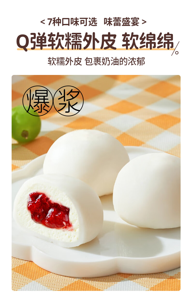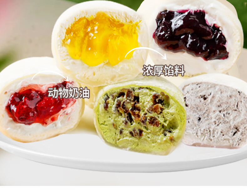 盛京天禄雪媚娘爆浆大福冰皮糯米糍动物奶油抹茶草莓蓝莓风味夹心蛋糕甜品 芒果2+草莓2+奥Li奥2+抹茶2+蓝莓2 80g 10盒