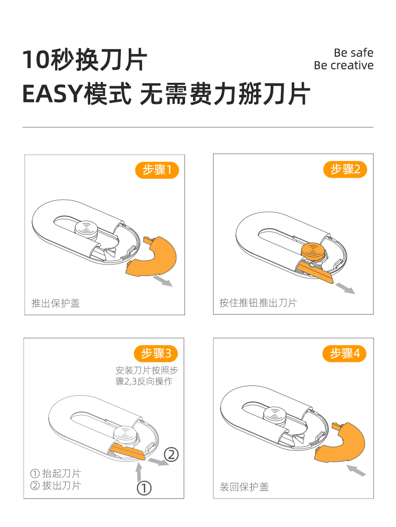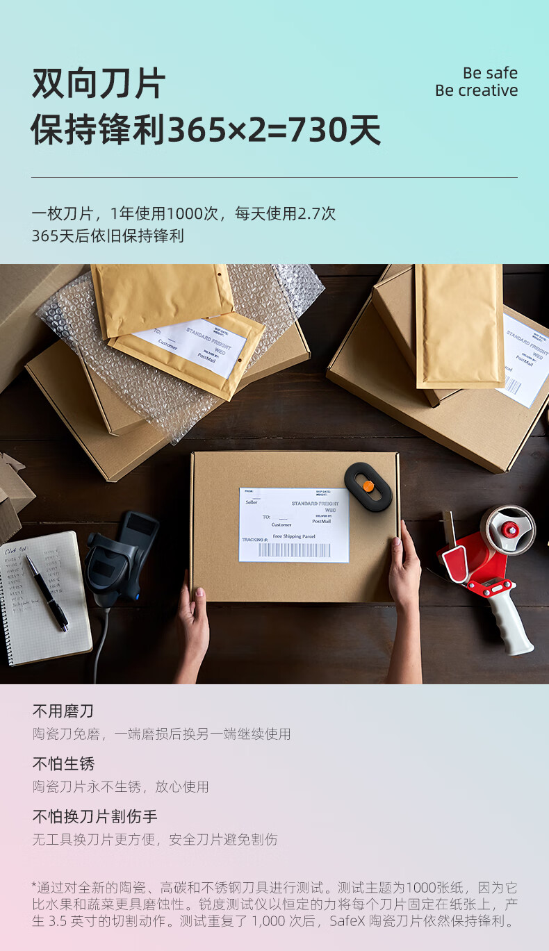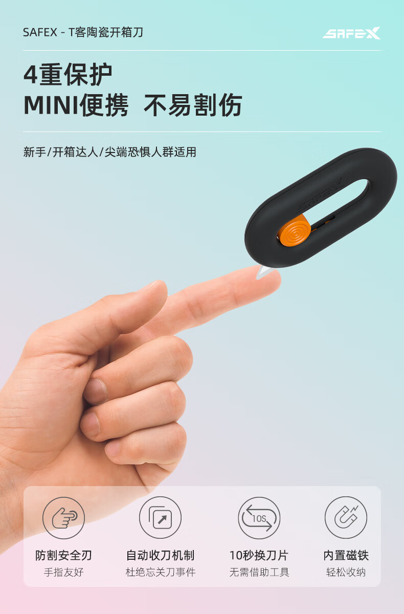 SAFEX快递刀美工刀拆快递神器小刀陶瓷刀片迷你便携磁吸开快递开箱刀安全随身开箱神器 T210-巴黎灰