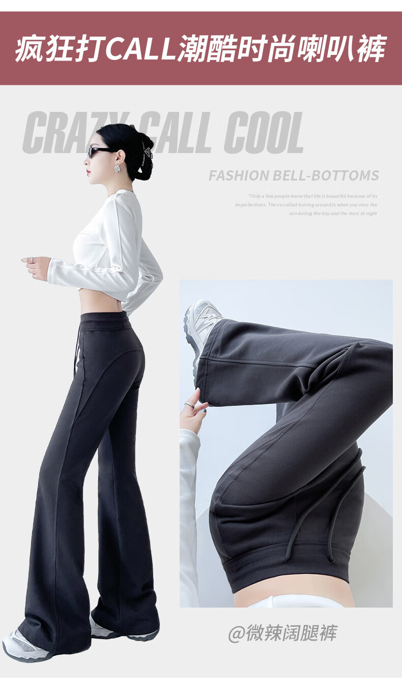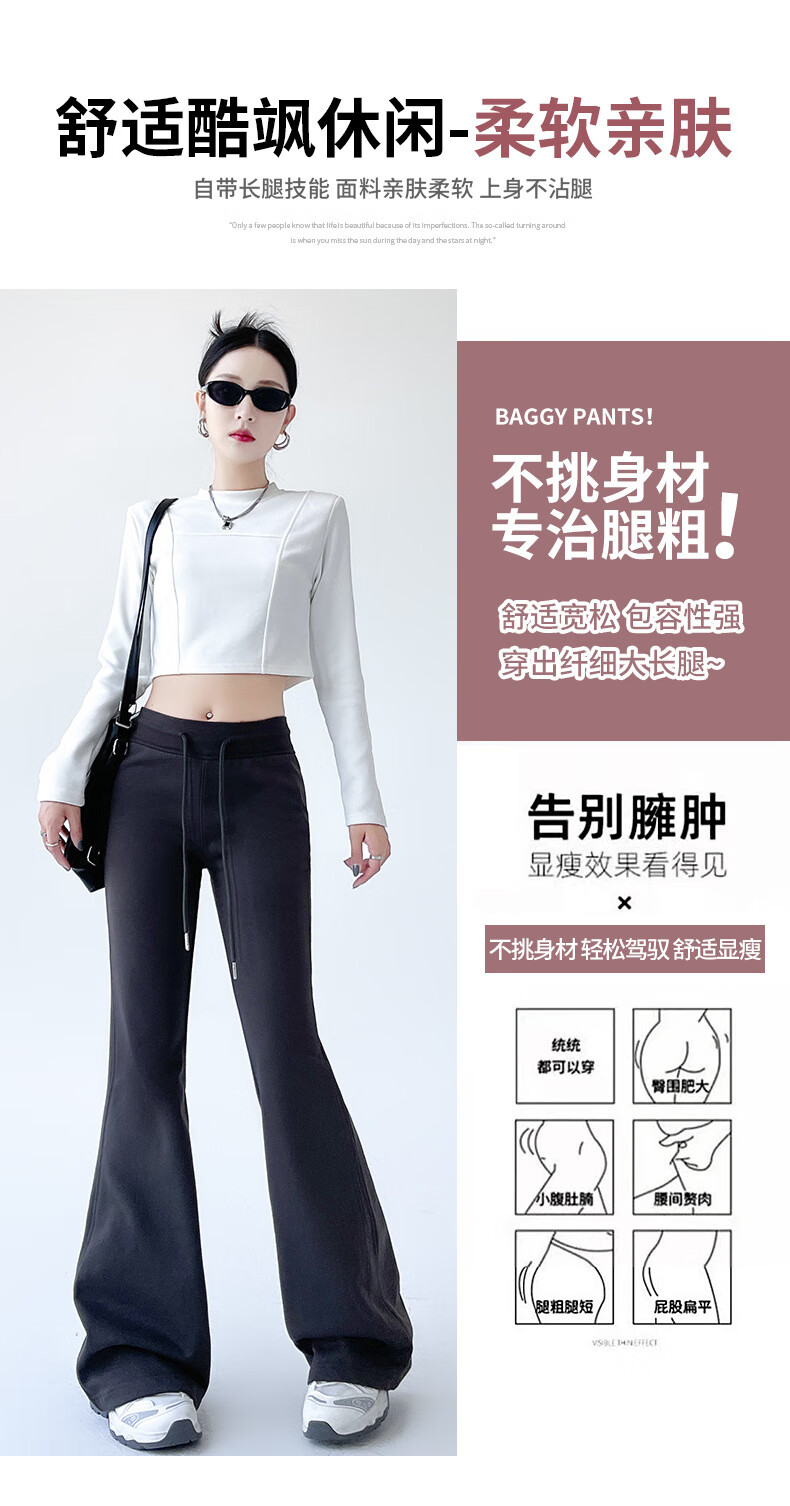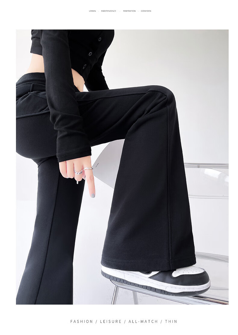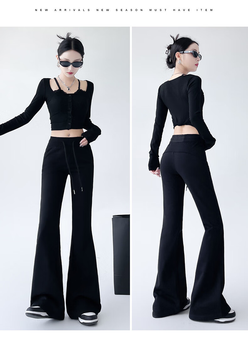猫人美式高腰微喇显瘦辣妹裤女2025新款 黑色【加长】 XL