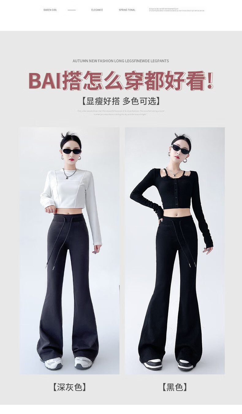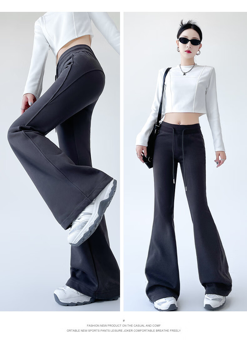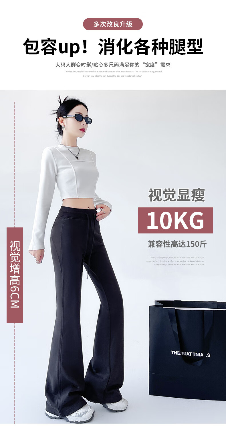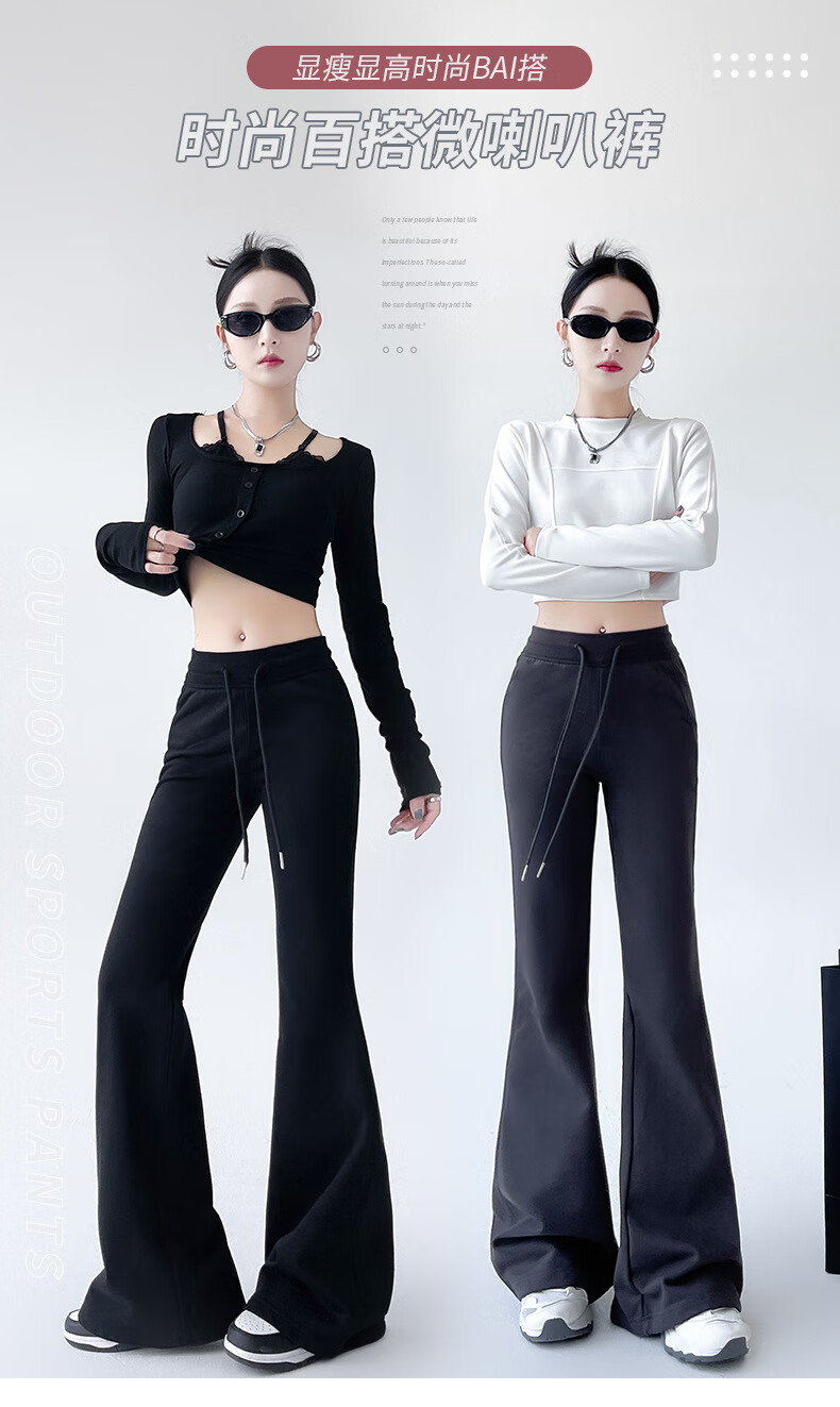猫人美式高腰微喇显瘦辣妹裤女2025新款 黑色【加长】 XL