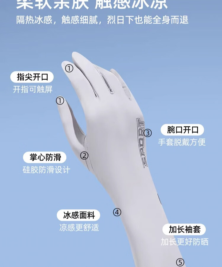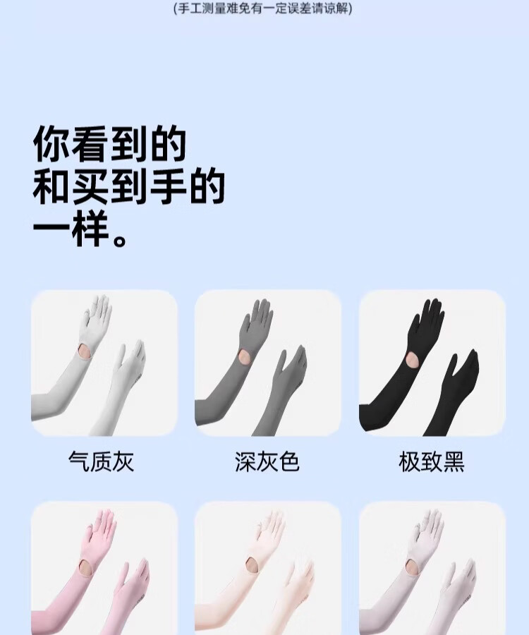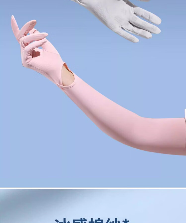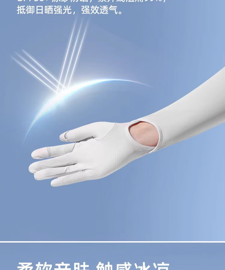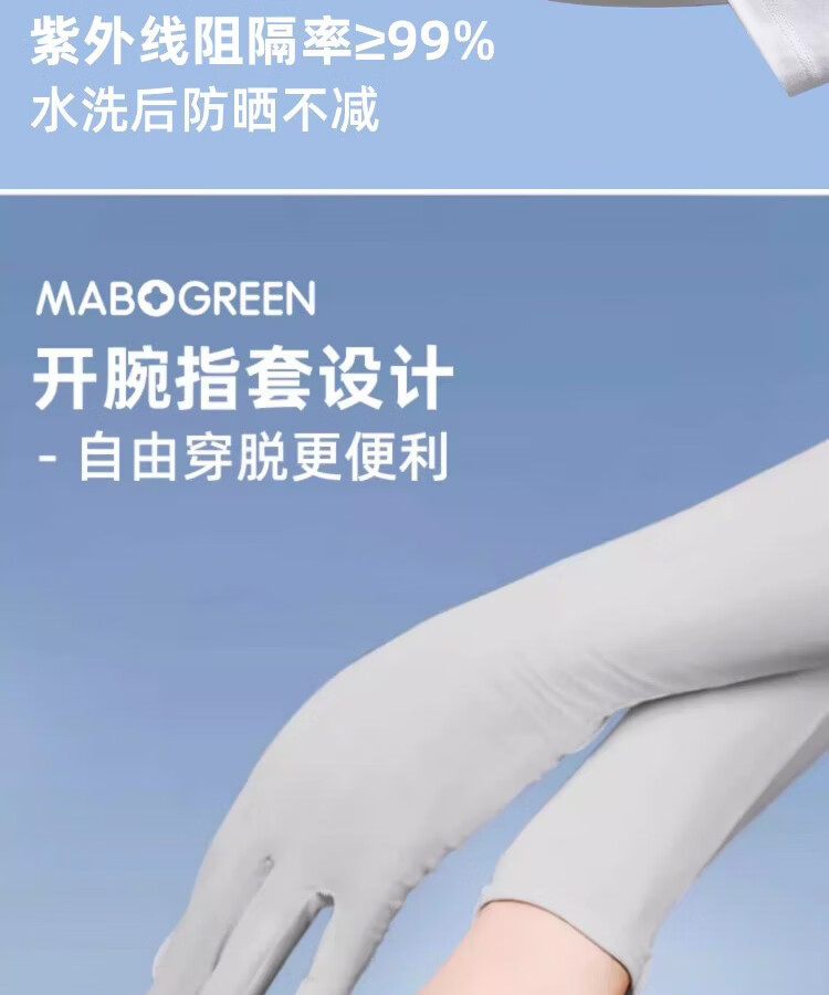 万宝绿防晒手套女夏天2026新款骑行护手臂冰袖开车防紫外线冰丝袖套薄款 UPF50+真冰丝/凉感科技【手腕开口款】气质灰1双