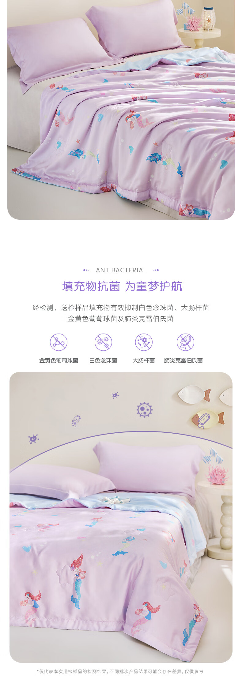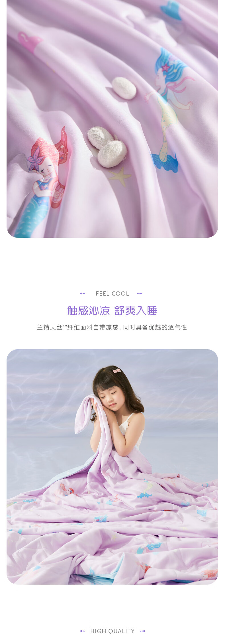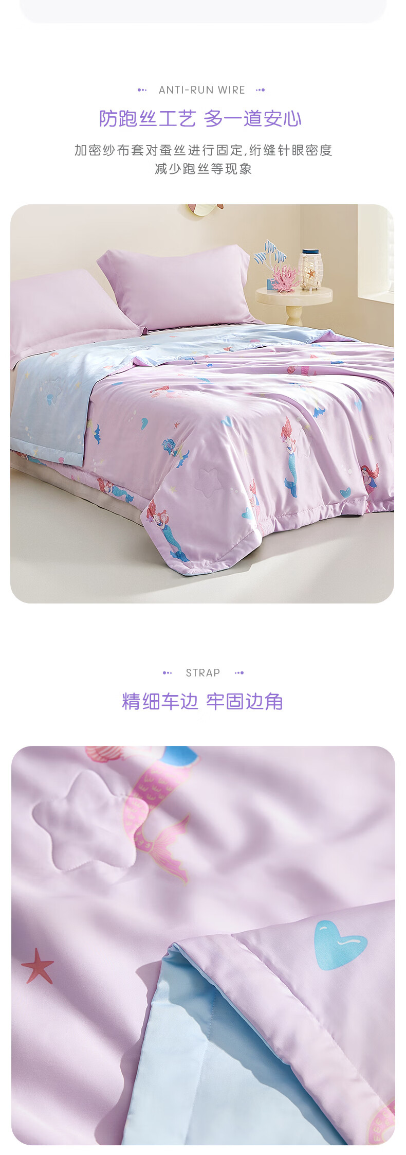 罗莱儿童 母婴A类100%蚕丝可水洗夏被60支兰精天丝面料 美人鱼的欢乐时光 120cm*150cm