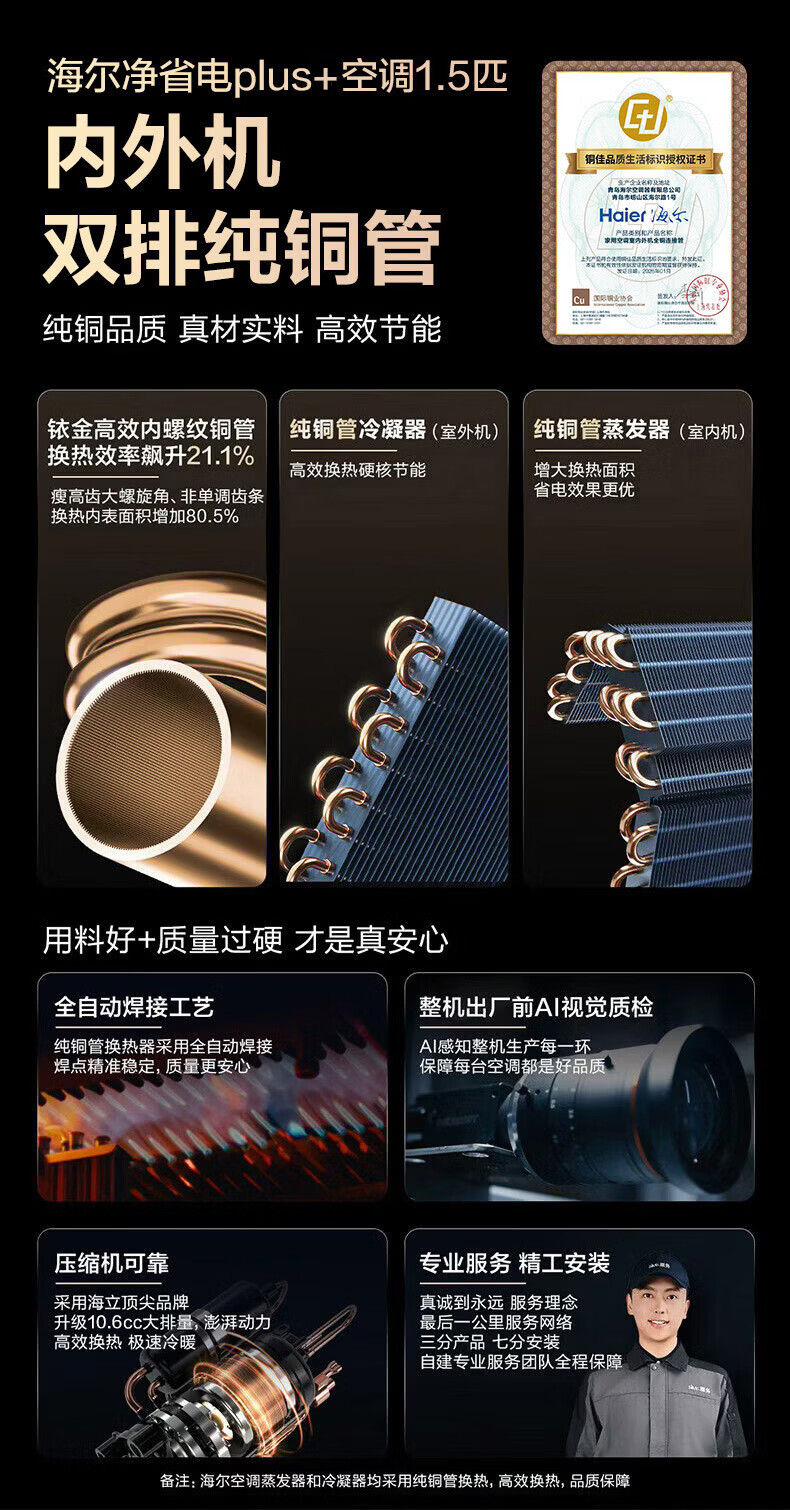 海尔空调 净省电plus+大1.5匹挂机 新一级能效挂式 双排纯铜管省电神机 国家补贴KFR-35GW/E1-1Plus