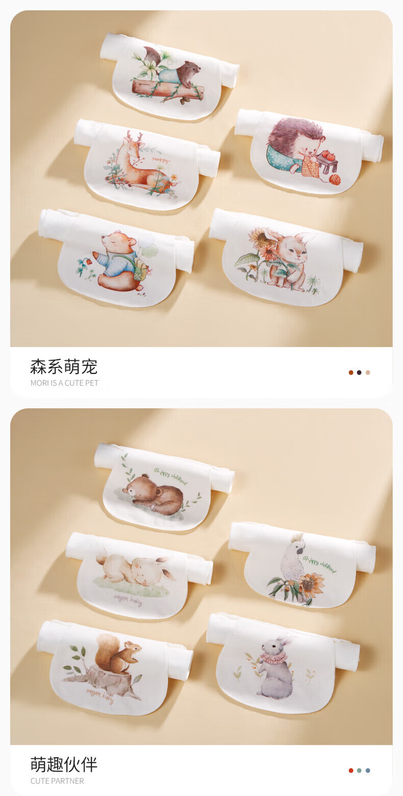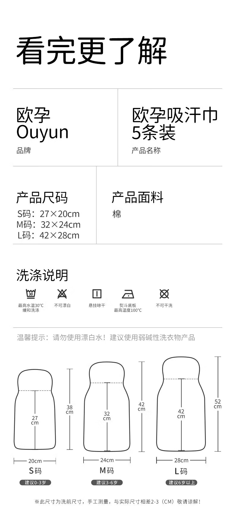欧孕(OUYUN)汗巾儿童纯棉幼儿园隔汗巾男童女童宝宝吸汗巾婴儿垫背止汗巾秋冬 【4层纱布】 萌趣伙伴 5条装 S码 (五条装)
