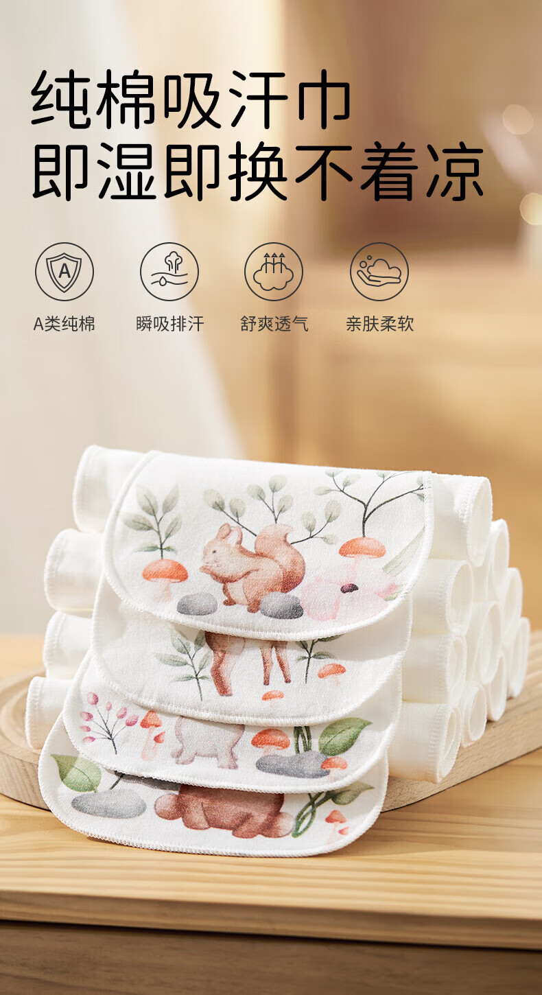 贝肽斯【胎脂皮】隔汗巾儿童3-6岁幼儿园A类宝宝大号透气垫背吸汗巾 竹棉×胎脂皮-熊熊乐园 3条装 【轻薄4层-10A抗菌】 S码【28*19cm】建议0-1岁