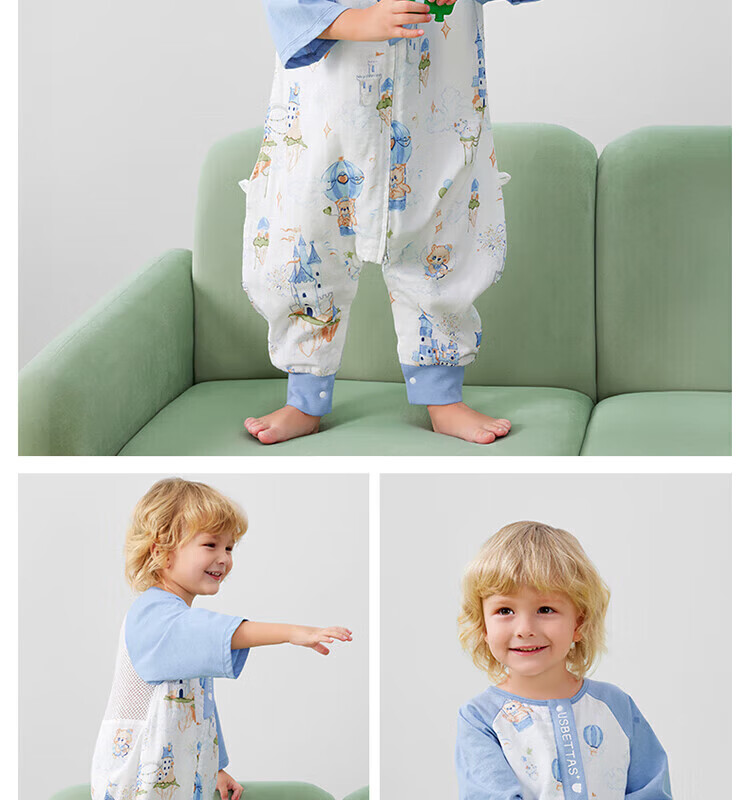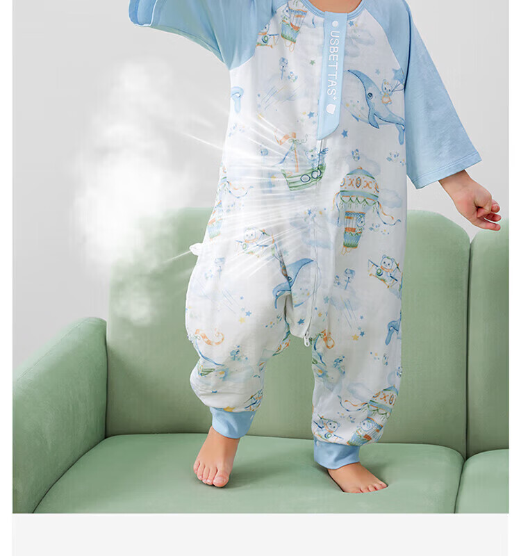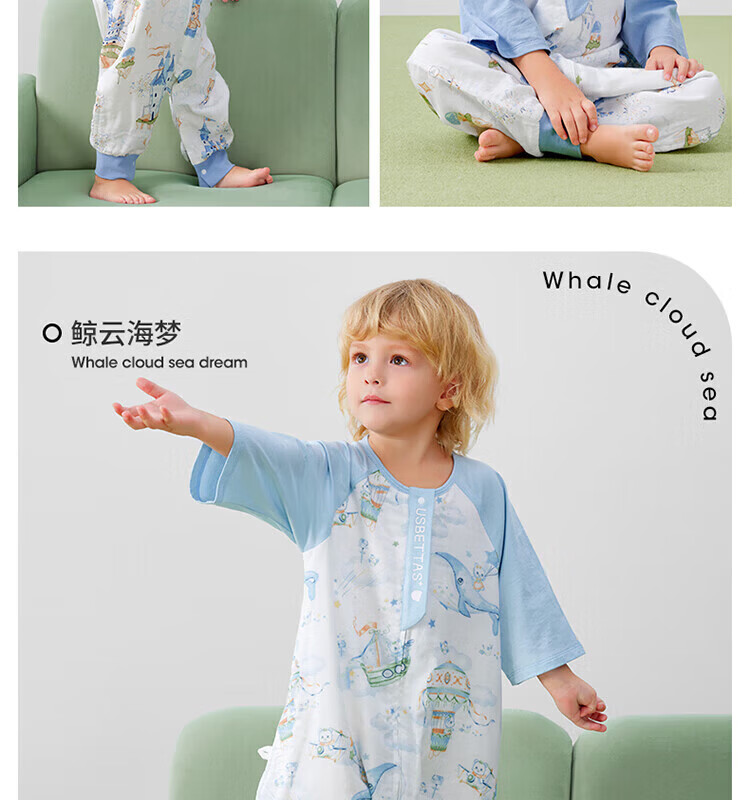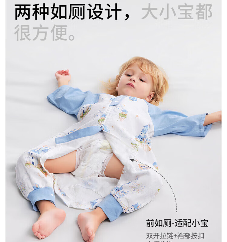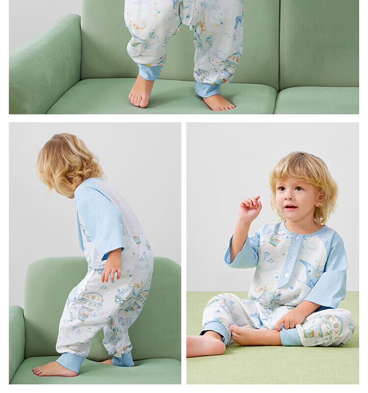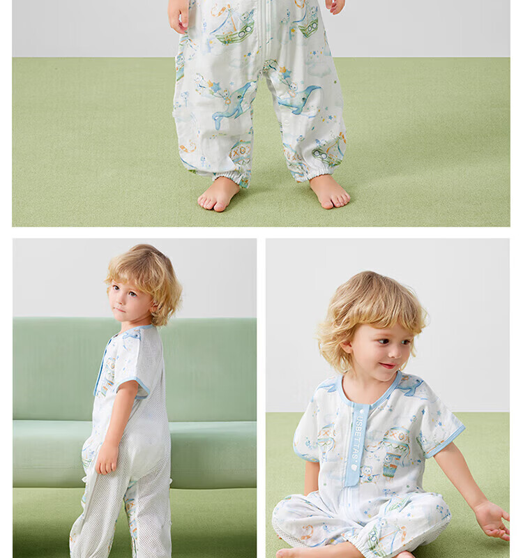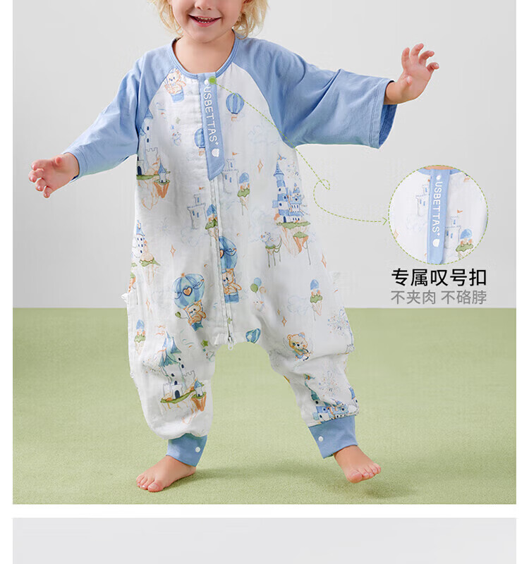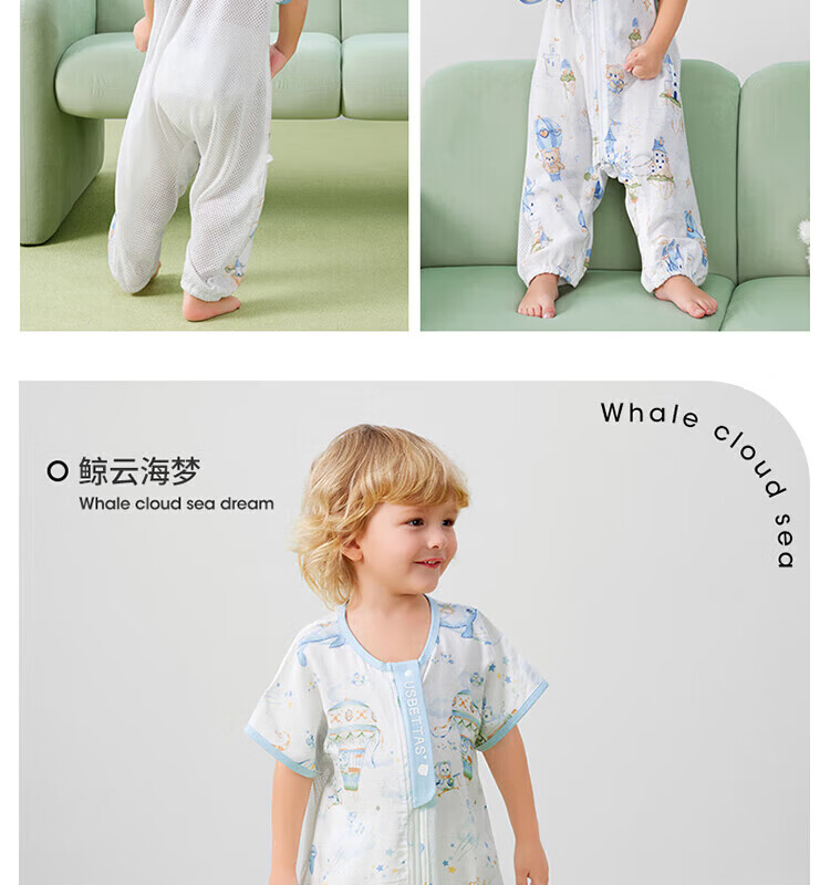 贝肽斯【自呼吸】婴儿睡袋春夏季纱布网眼宝宝分腿防踢被四季通用1-3岁 初夏x天竹【前4后2 室温26℃以上】鲸云海梦 M码【80-95cm】15个月-2.5岁