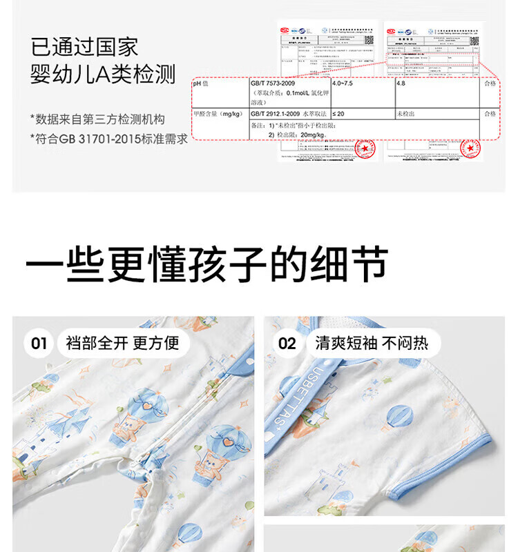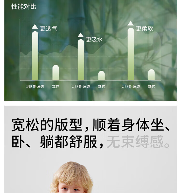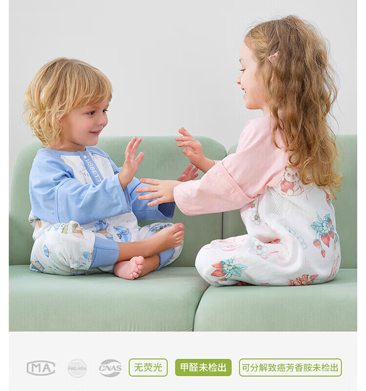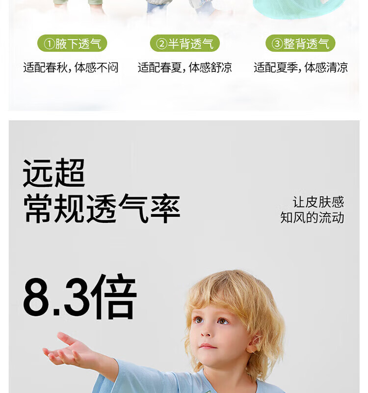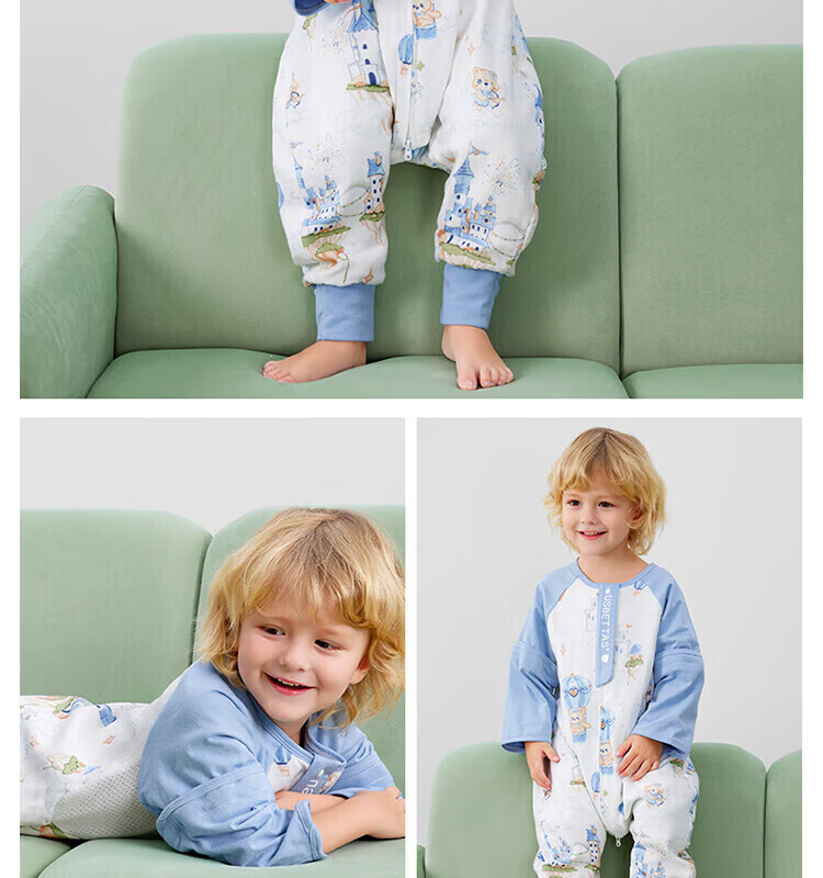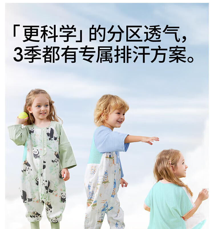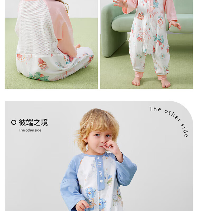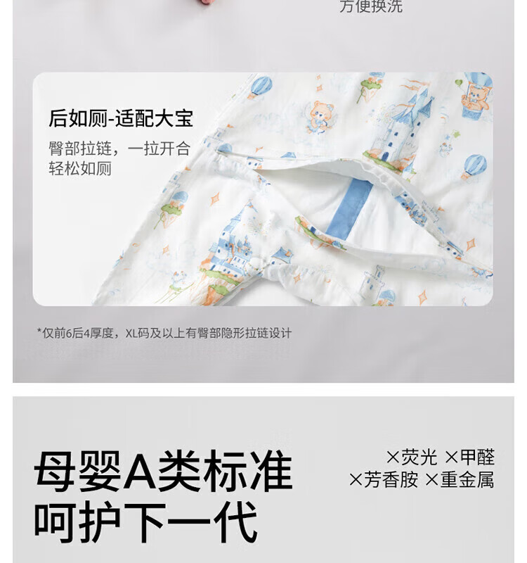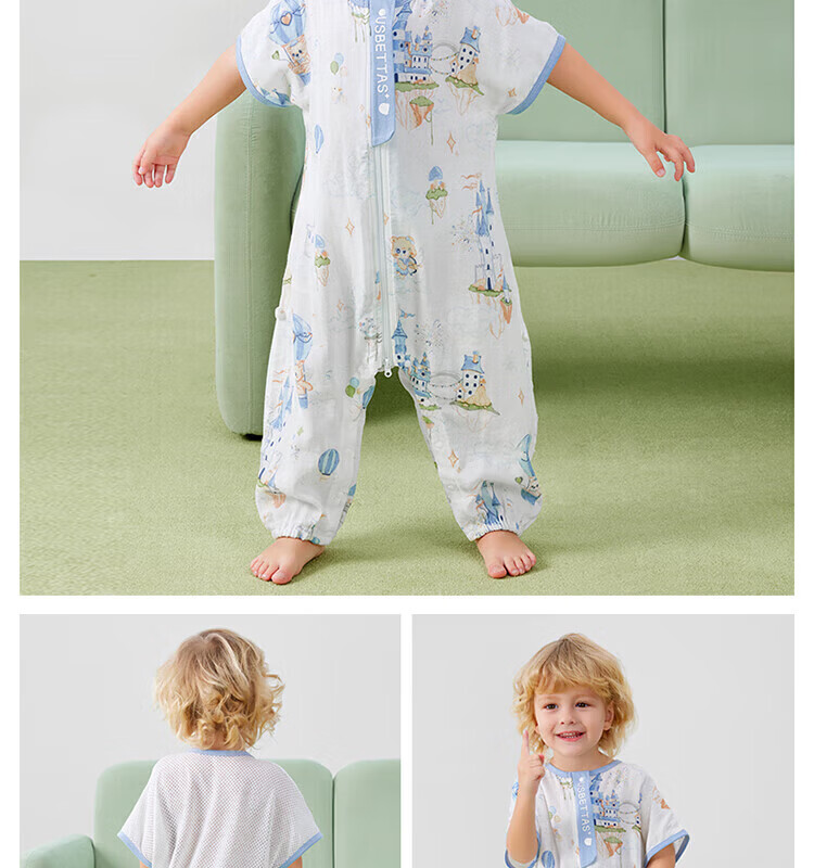 贝肽斯【自呼吸】婴儿睡袋春夏季纱布网眼宝宝分腿防踢被四季通用1-3岁 初夏x天竹【前4后2 室温26℃以上】鲸云海梦 M码【80-95cm】15个月-2.5岁