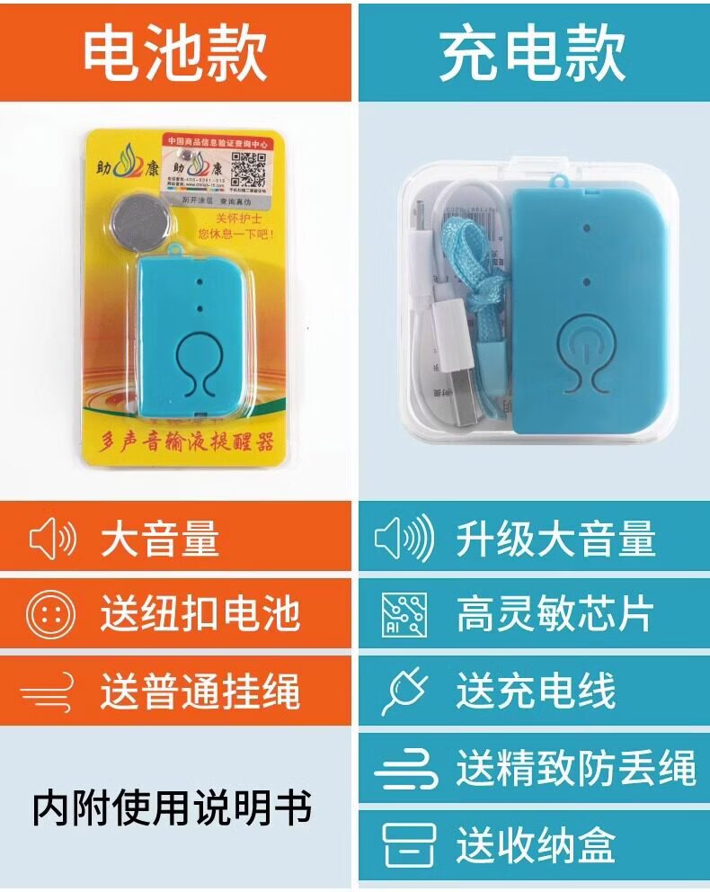 米波迪(Meebordi)输液报警器 智能自动提醒器吊瓶挂水医院陪护输液宝 蓝色电池款【5个装】