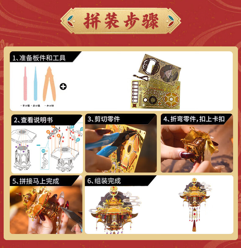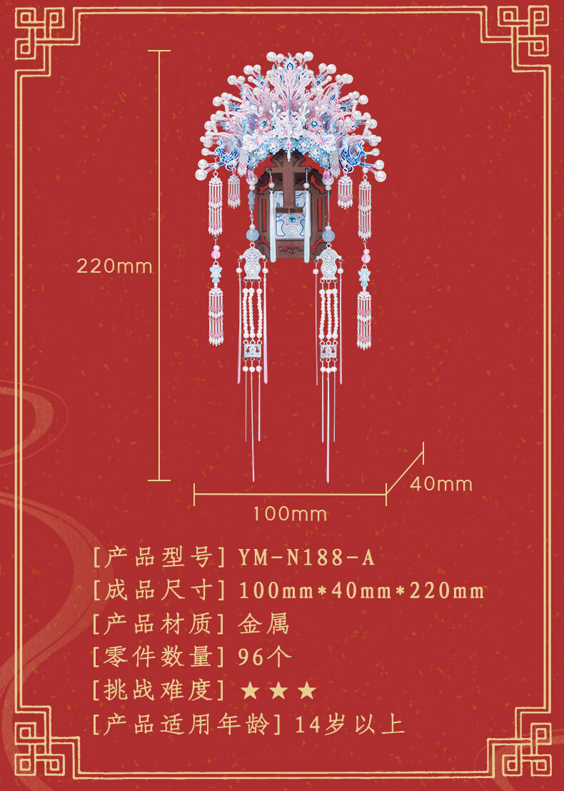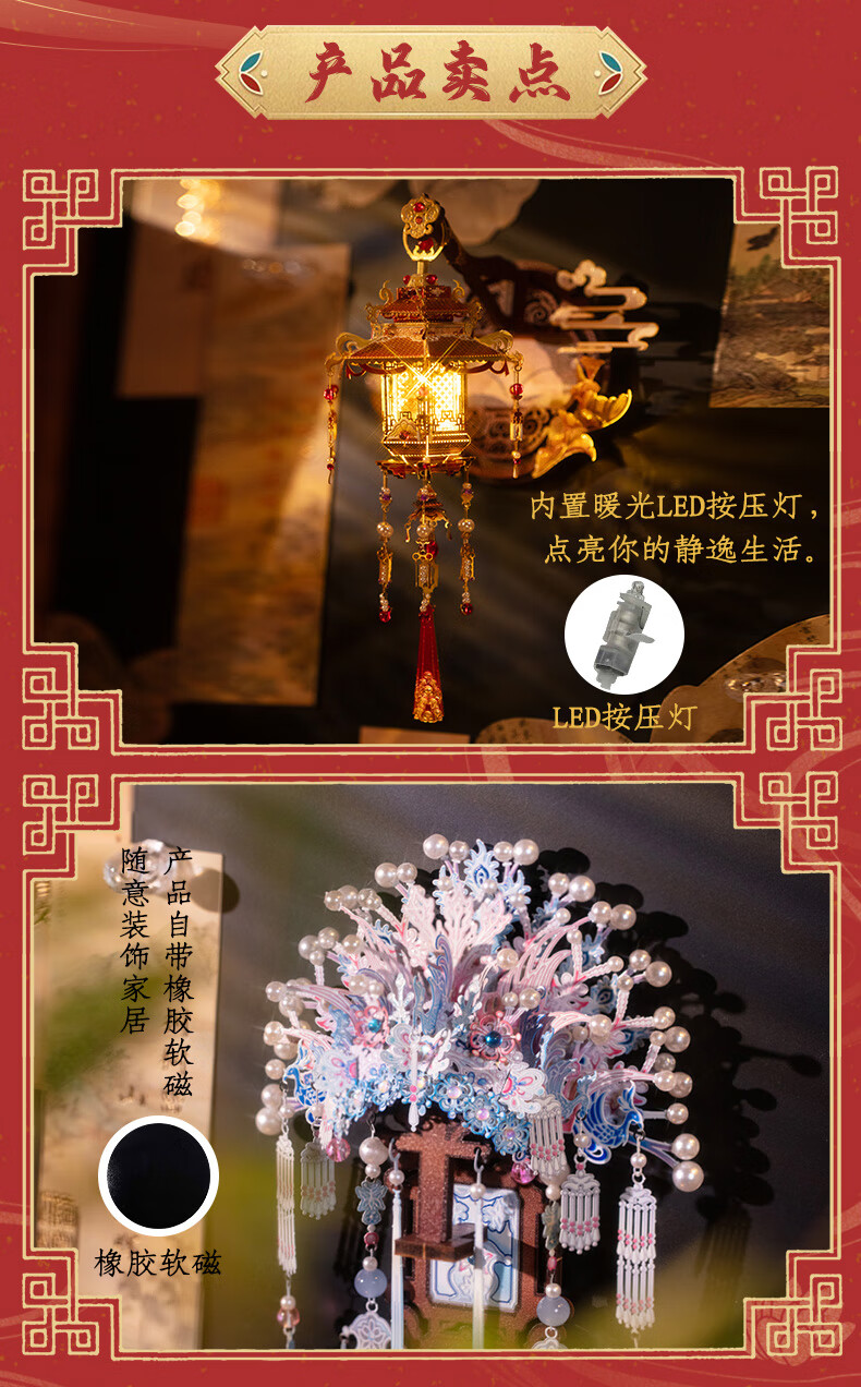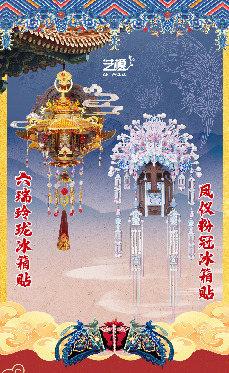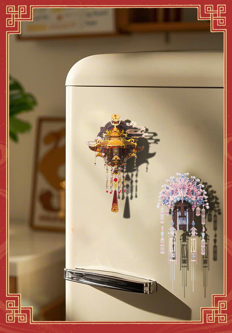 艺模凤冠国风立体冰箱贴3D立体拼图金属拼装模型玩具家居装饰